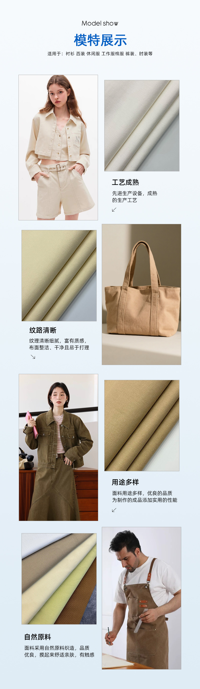 纯棉斜纹洗水棉 全棉纱卡水洗棉面料 275g超柔碳磨外套工装裤布料