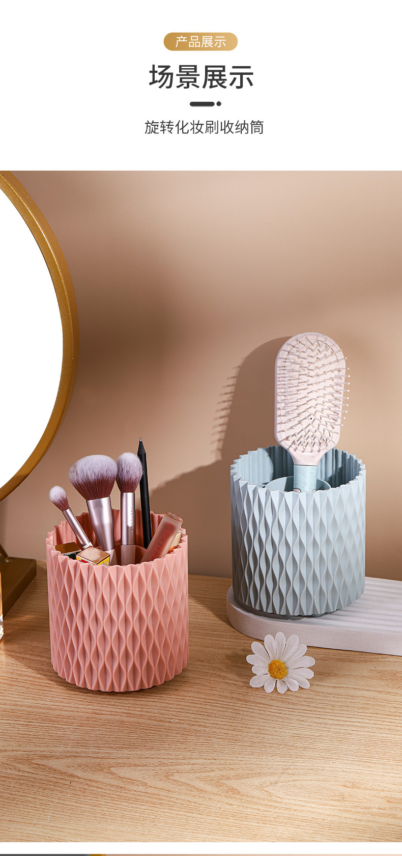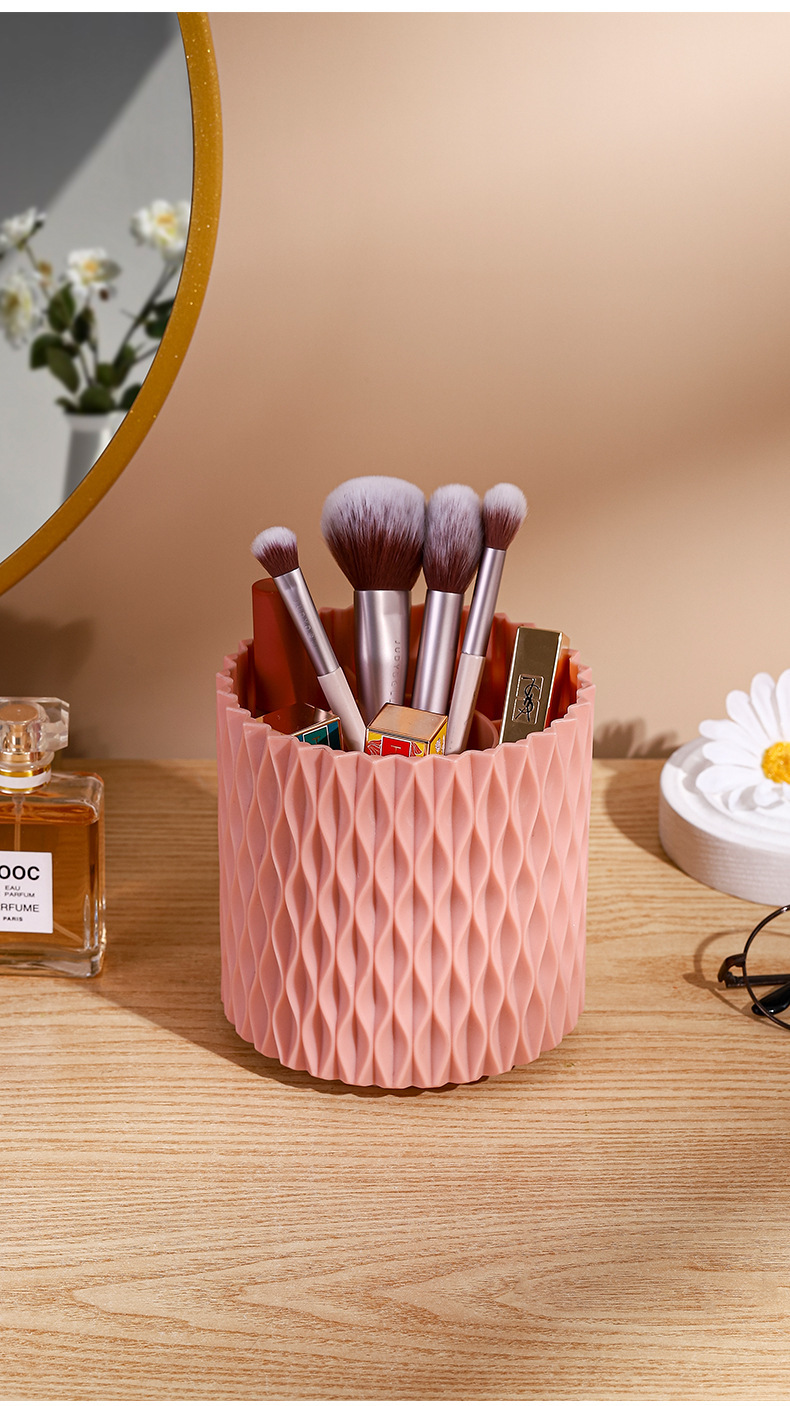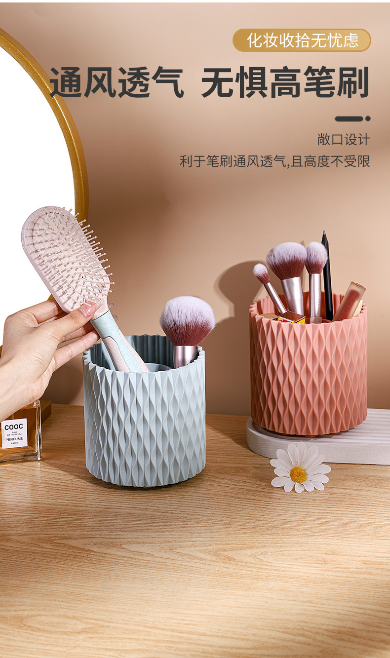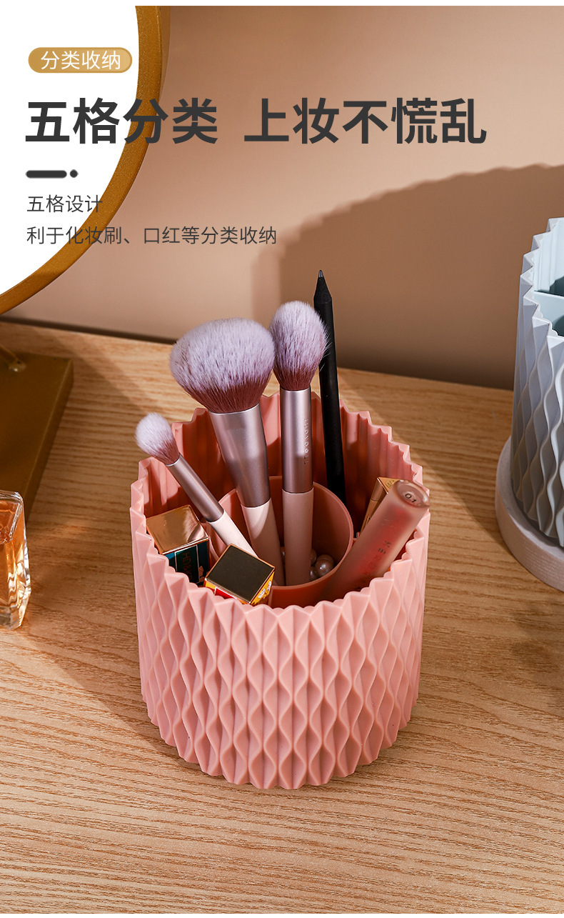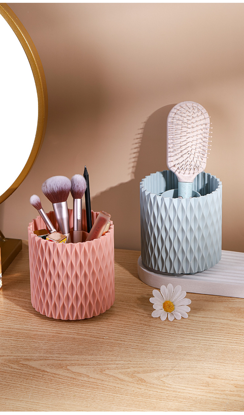 桌面旋转收纳筒梳子口红眼影收纳杯化妆物品收纳新款加厚文具笔筒