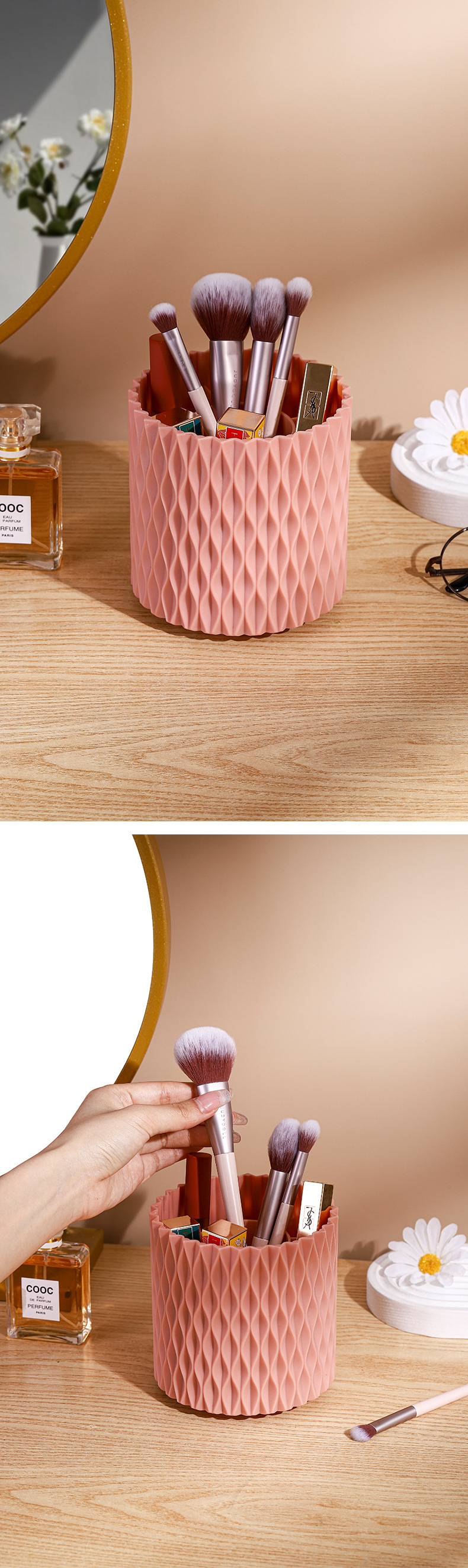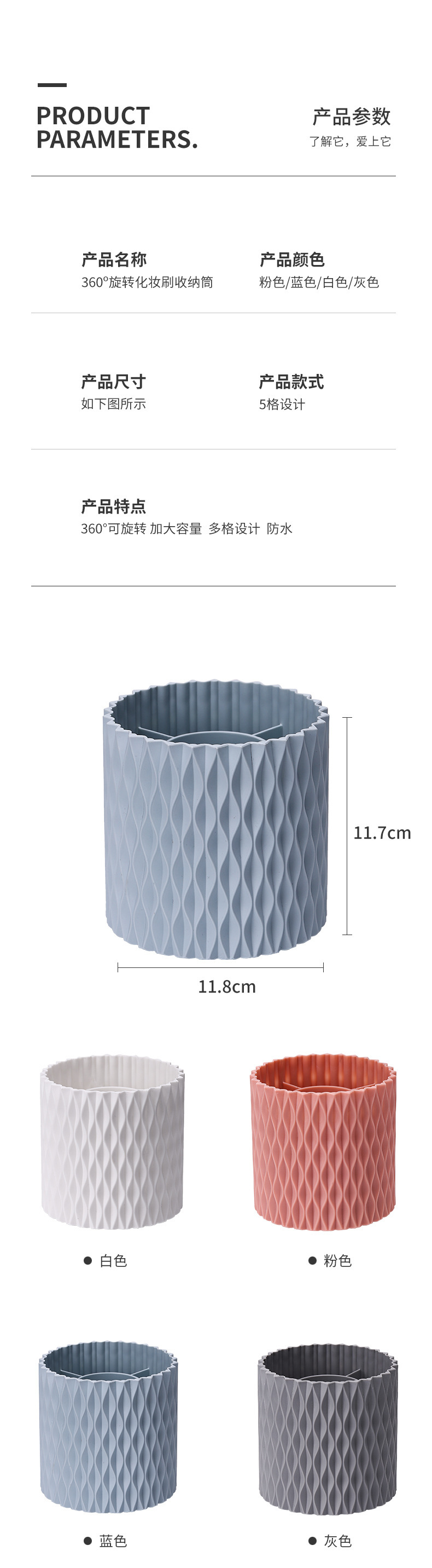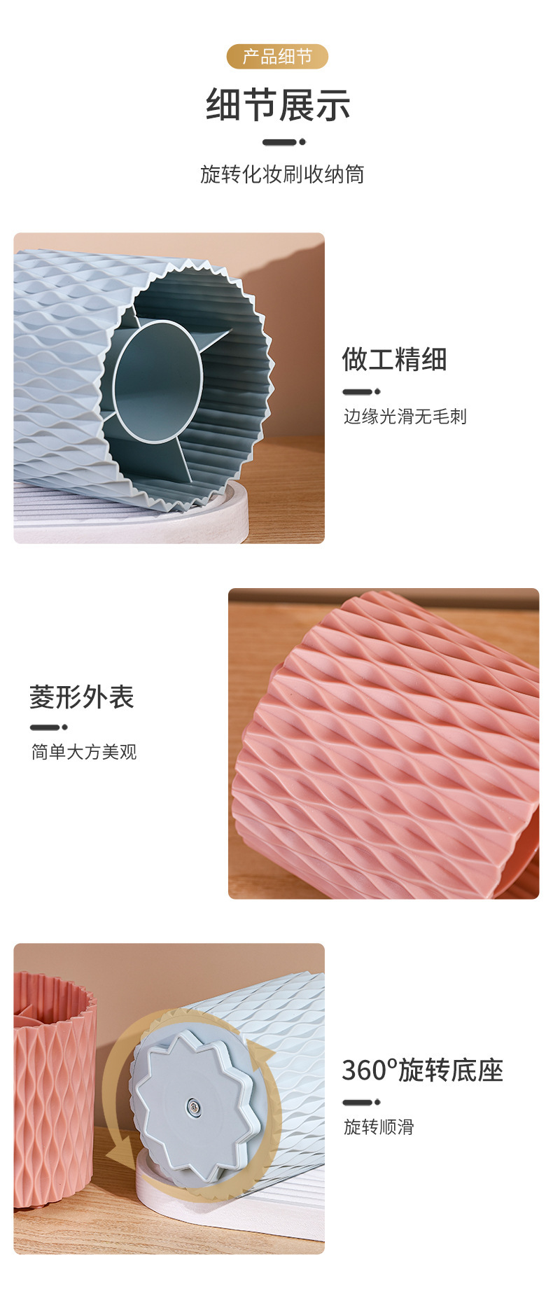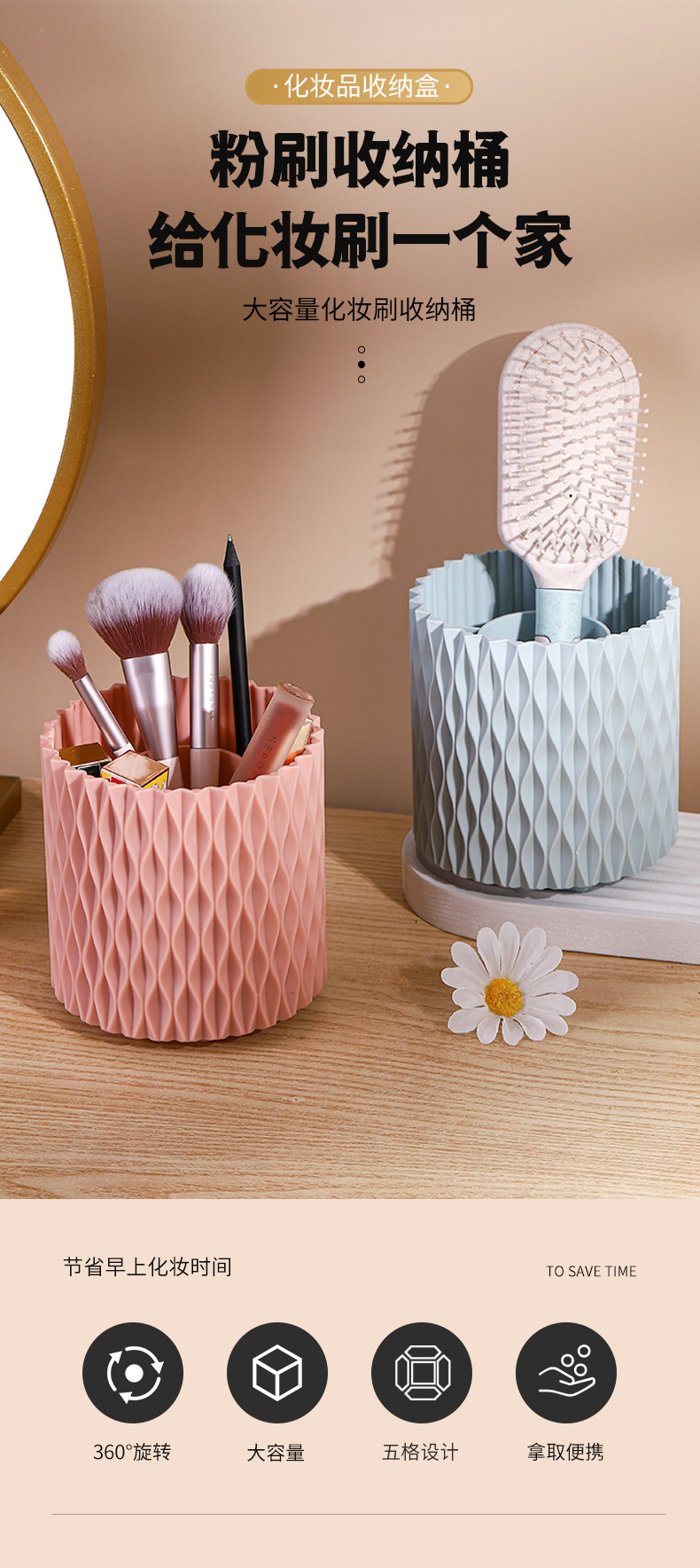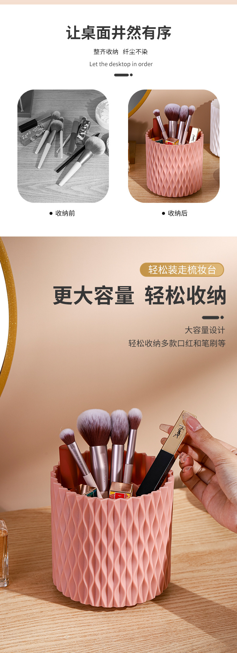 桌面旋转收纳筒梳子口红眼影收纳杯化妆物品收纳新款加厚文具笔筒