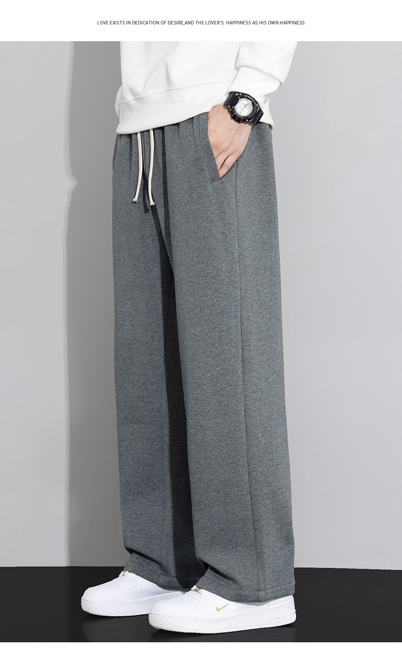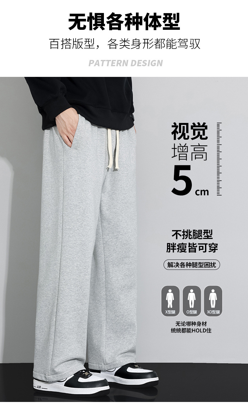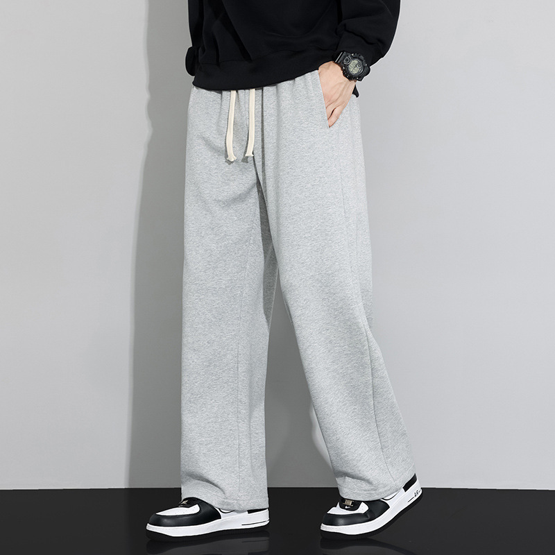运动裤子男款灰色秋季阔腿宽松显高2025新款直筒男士春秋休闲卫裤