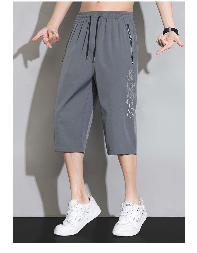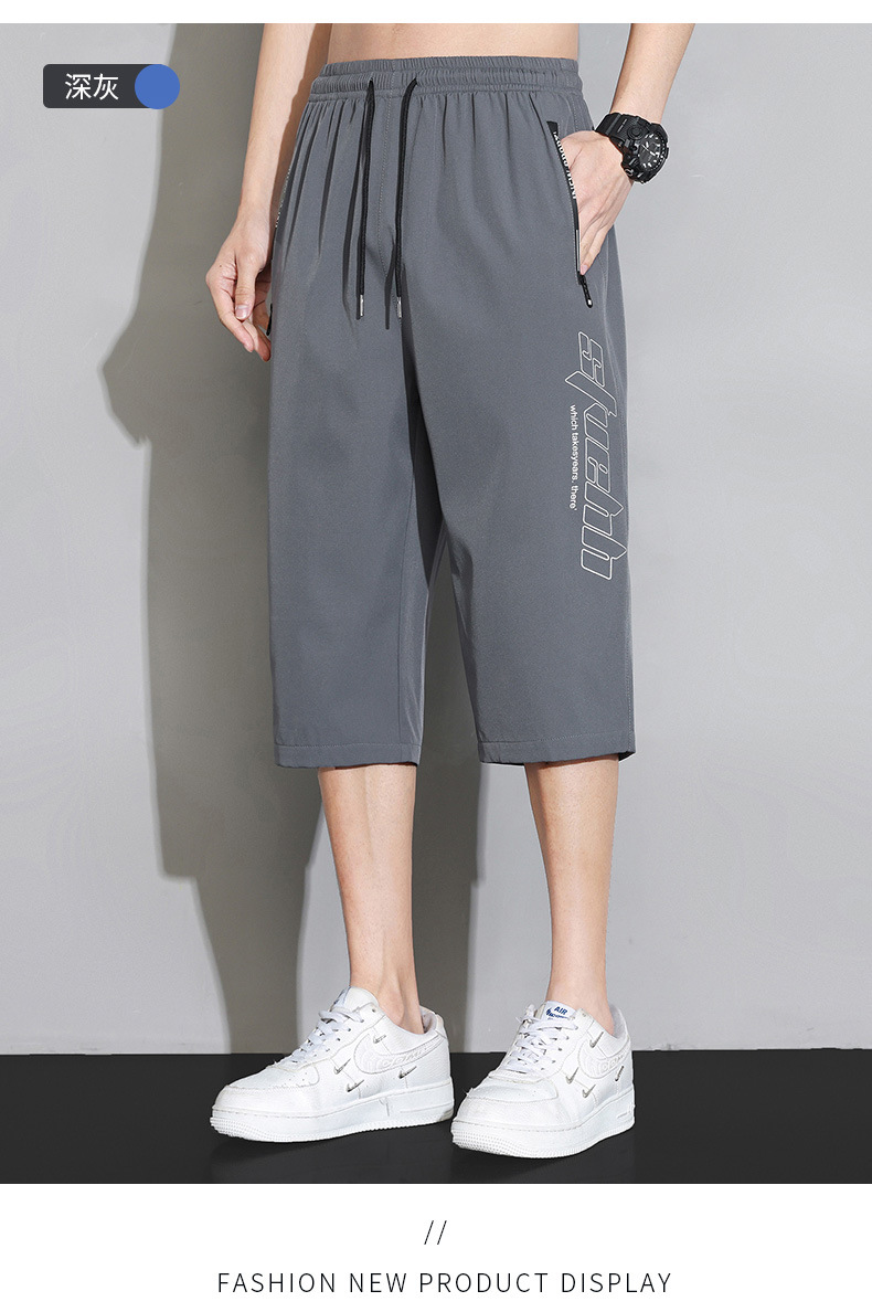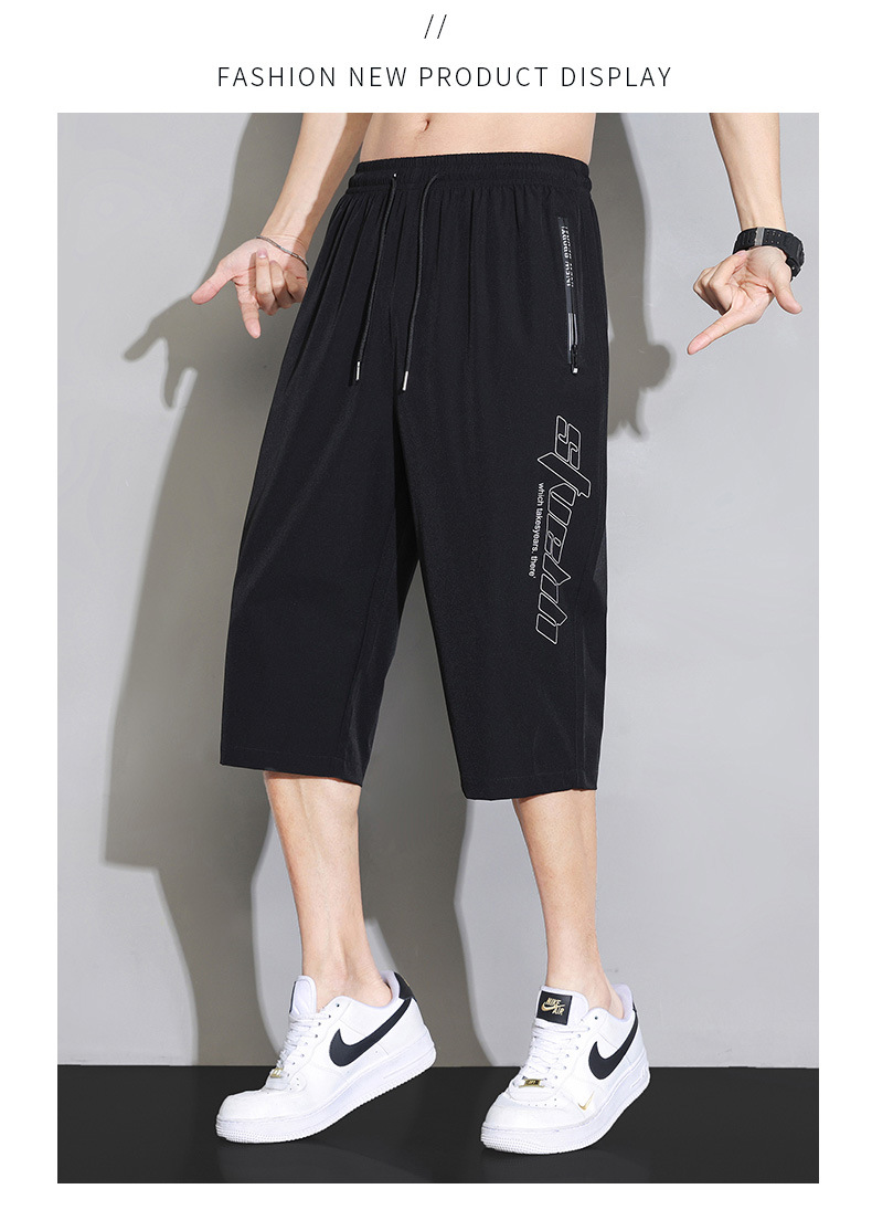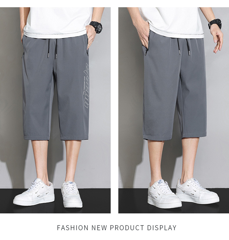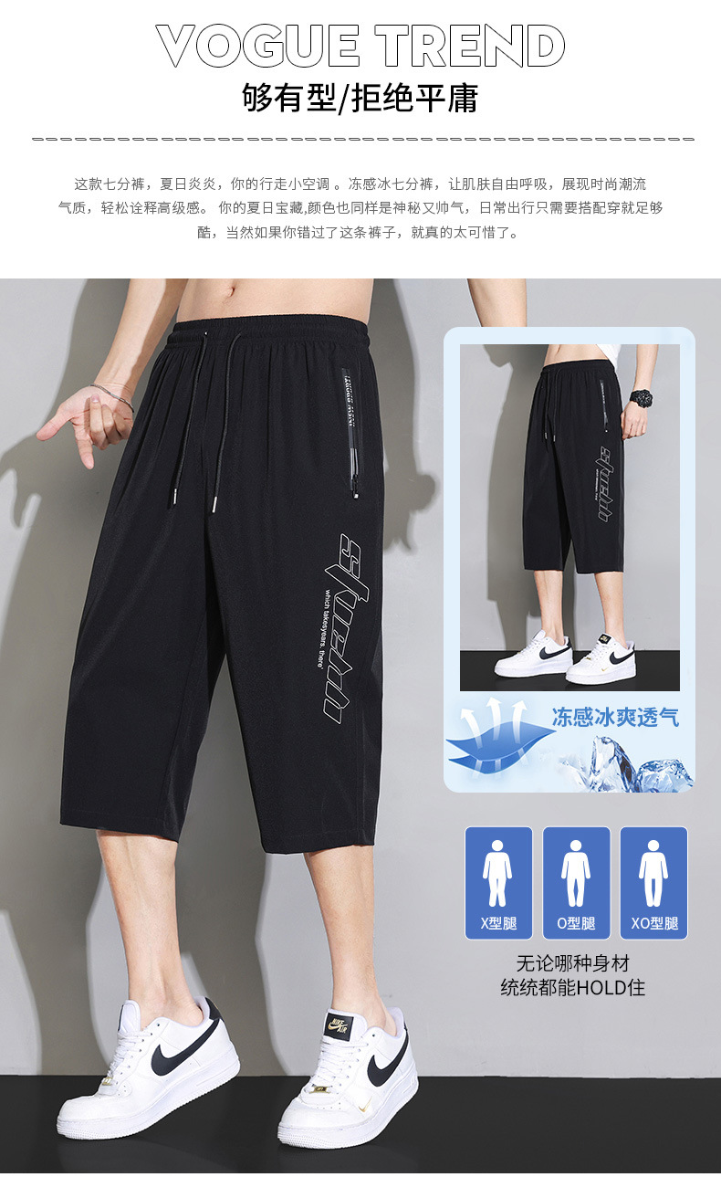 冰丝七分裤子男士夏季薄款潮牌宽松速干沙滩裤男款运动休闲短裤