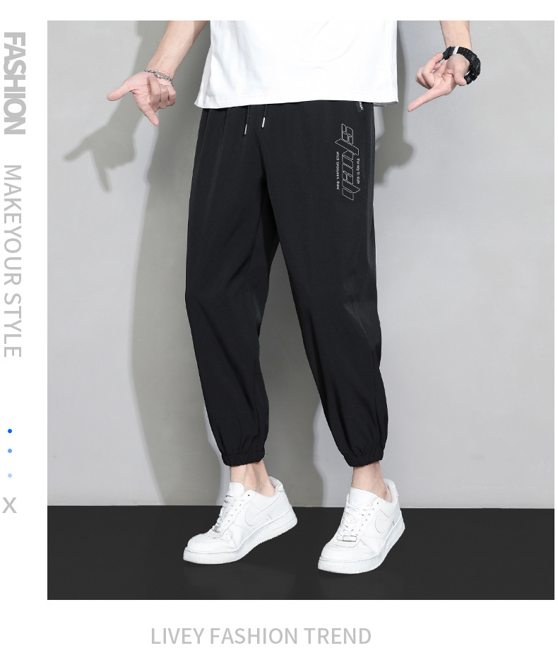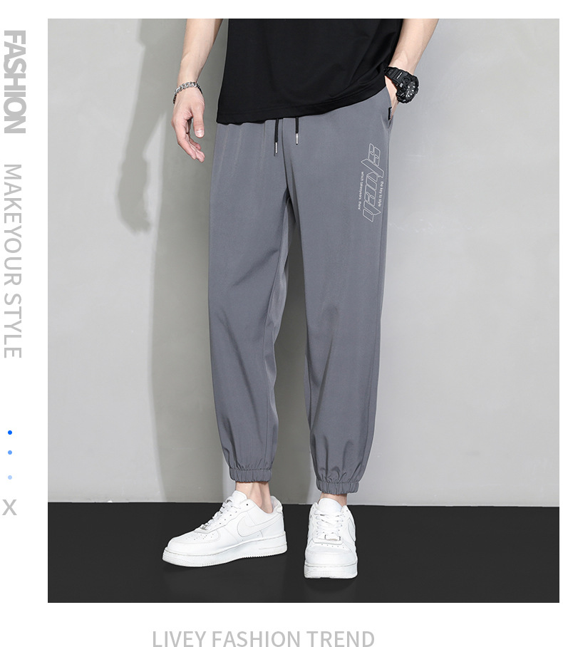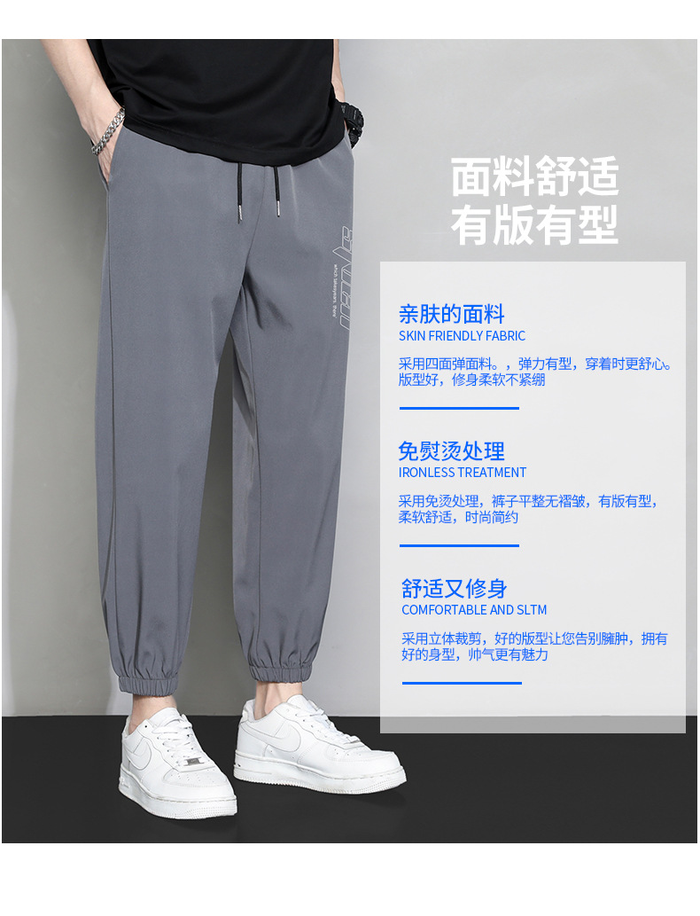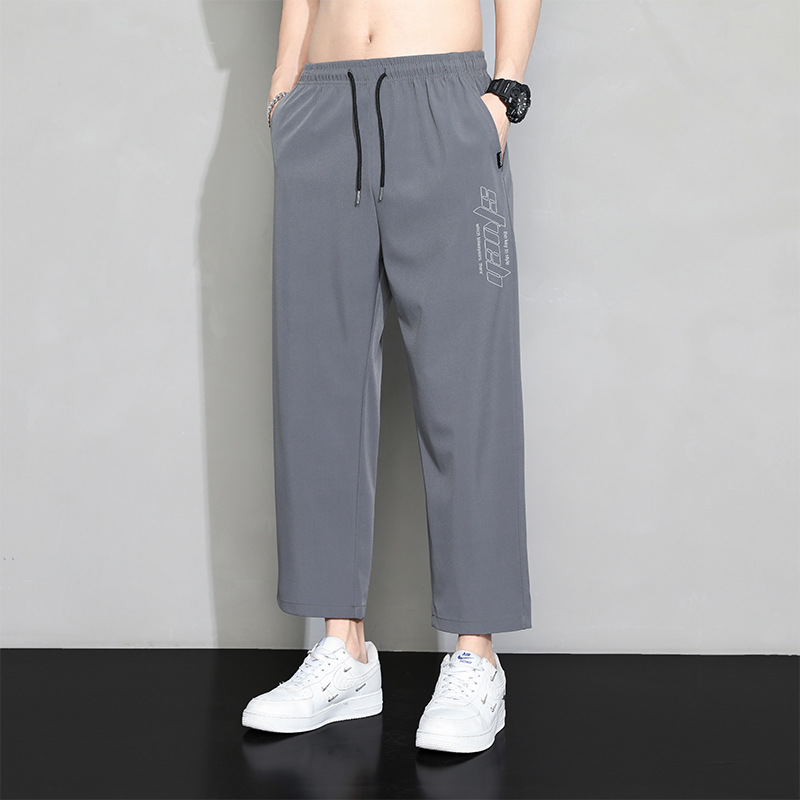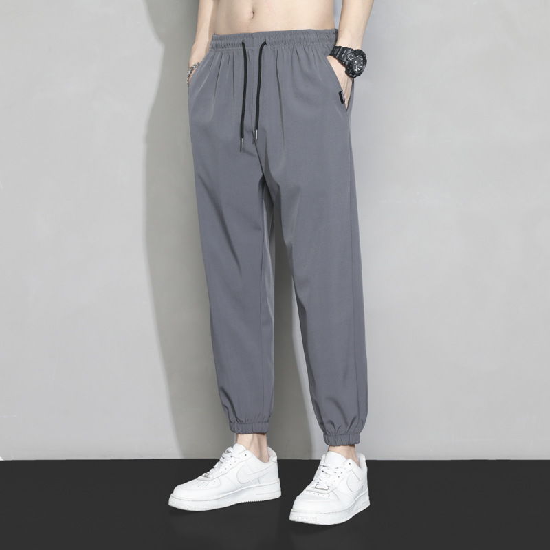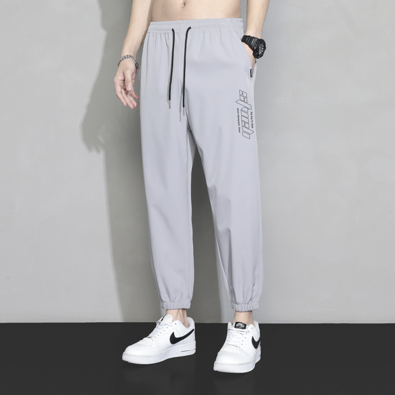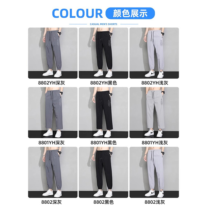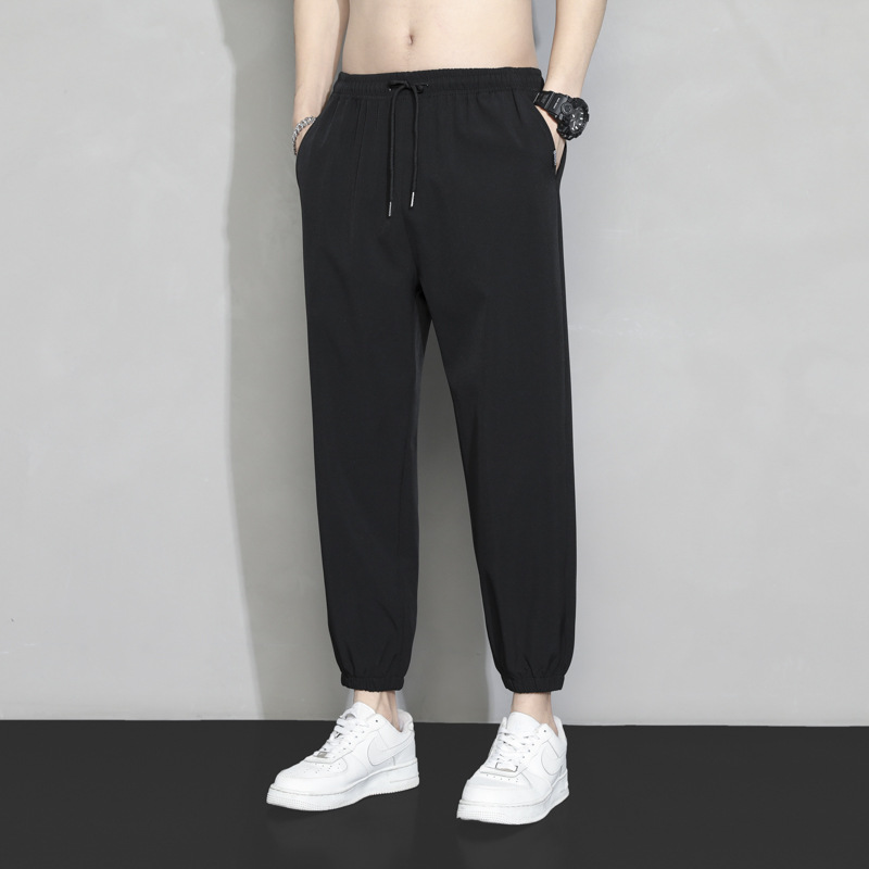 冰丝裤子男士夏季薄款宽松束脚速干九分运动裤夏天工装休闲长裤子