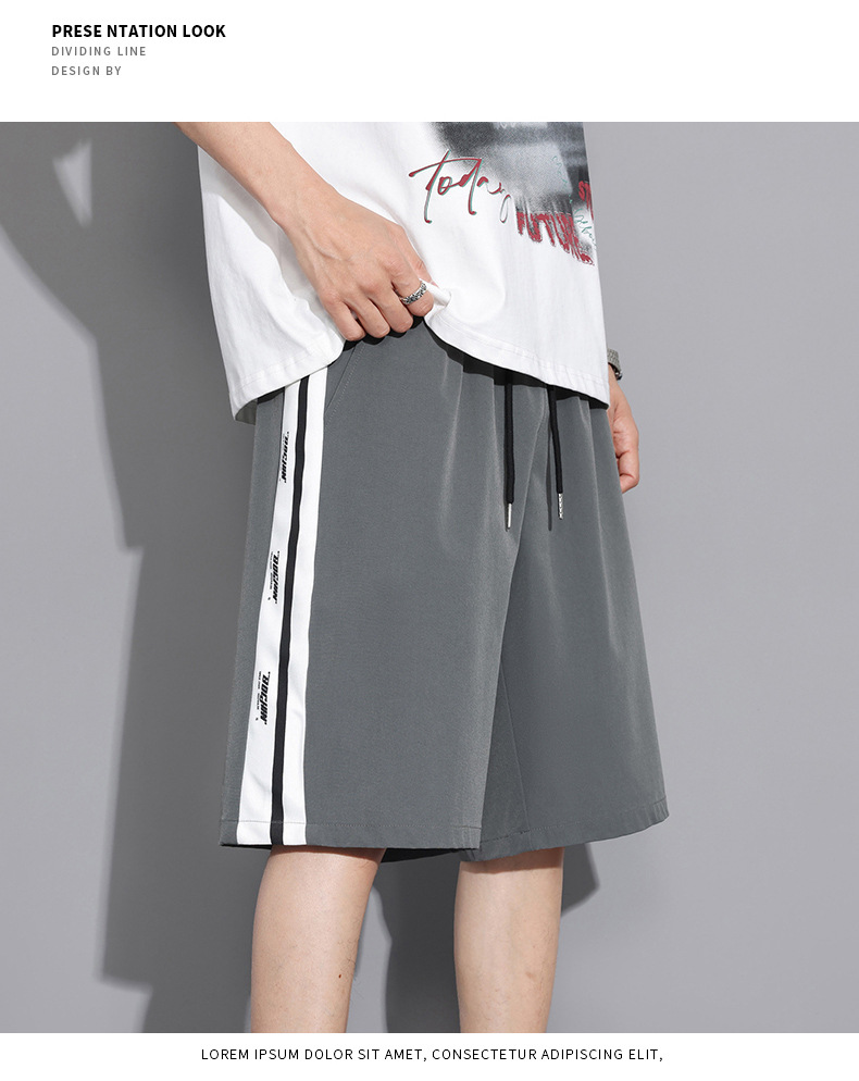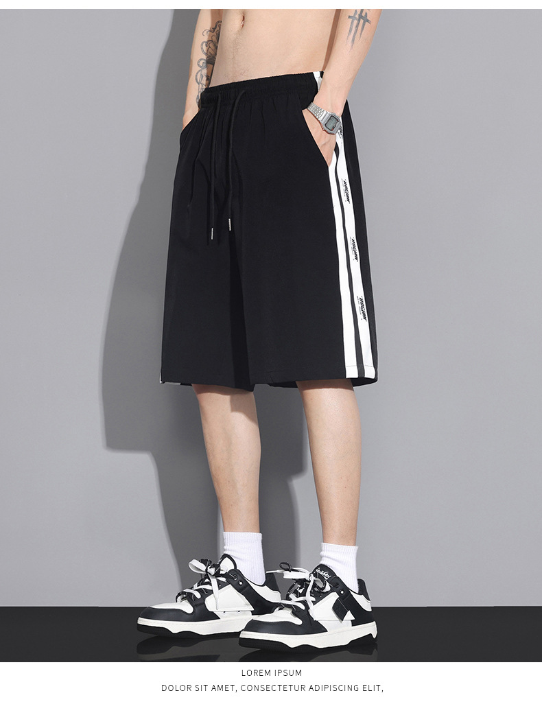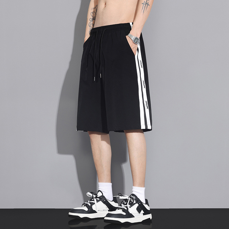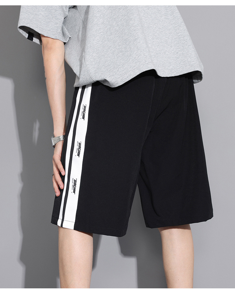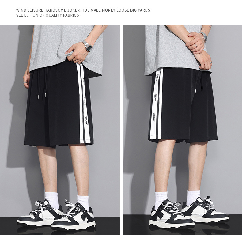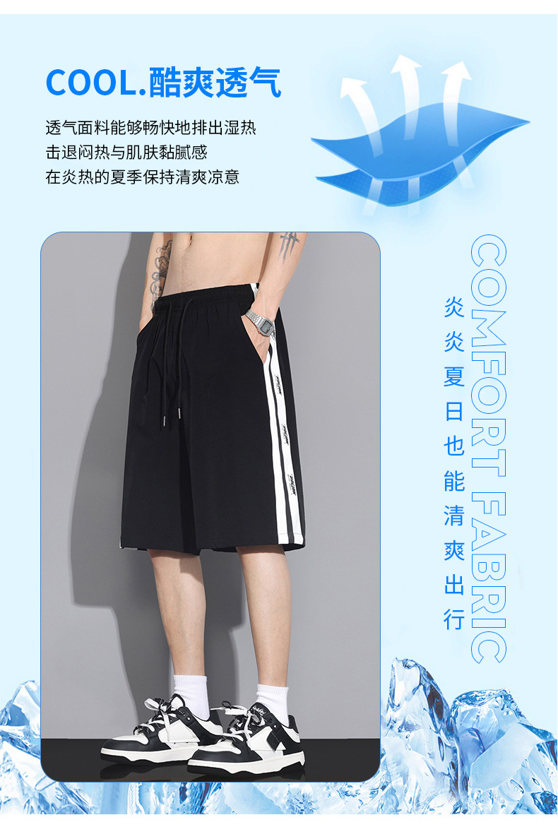 美式运动短裤男夏季新款潮牌宽松休闲直筒条纹五分裤潮流外穿中裤