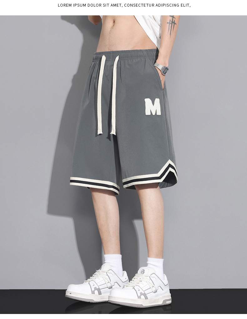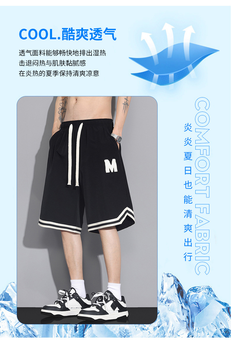 运动短裤男款夏季美式篮球裤衩冰丝速干五分中裤男士宽松休闲裤子