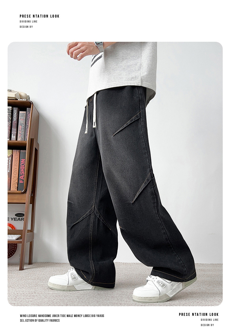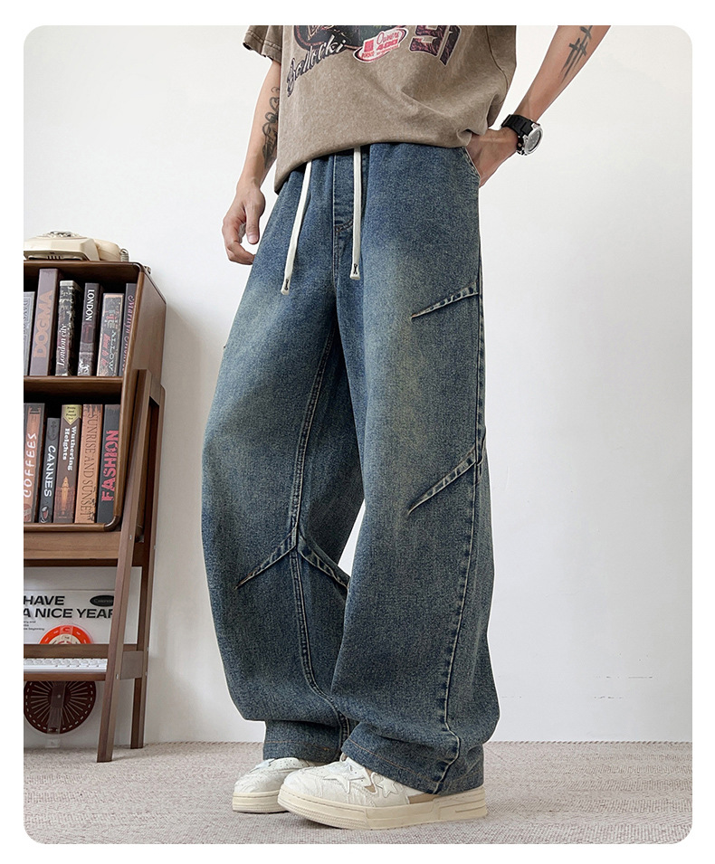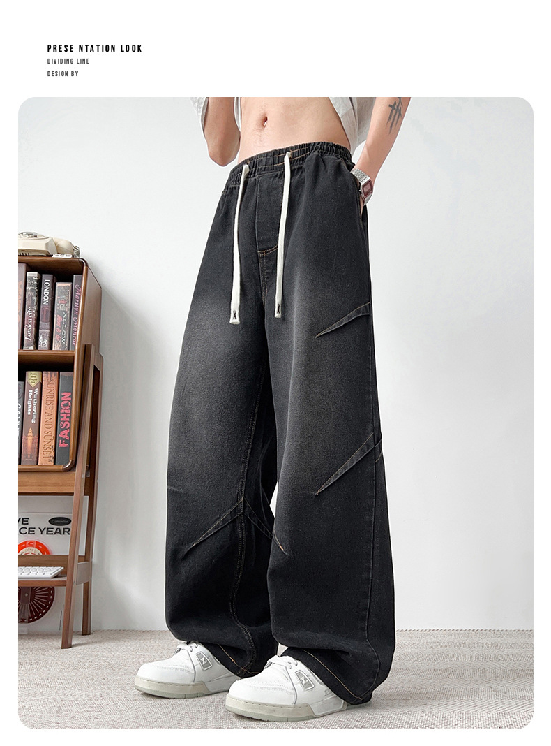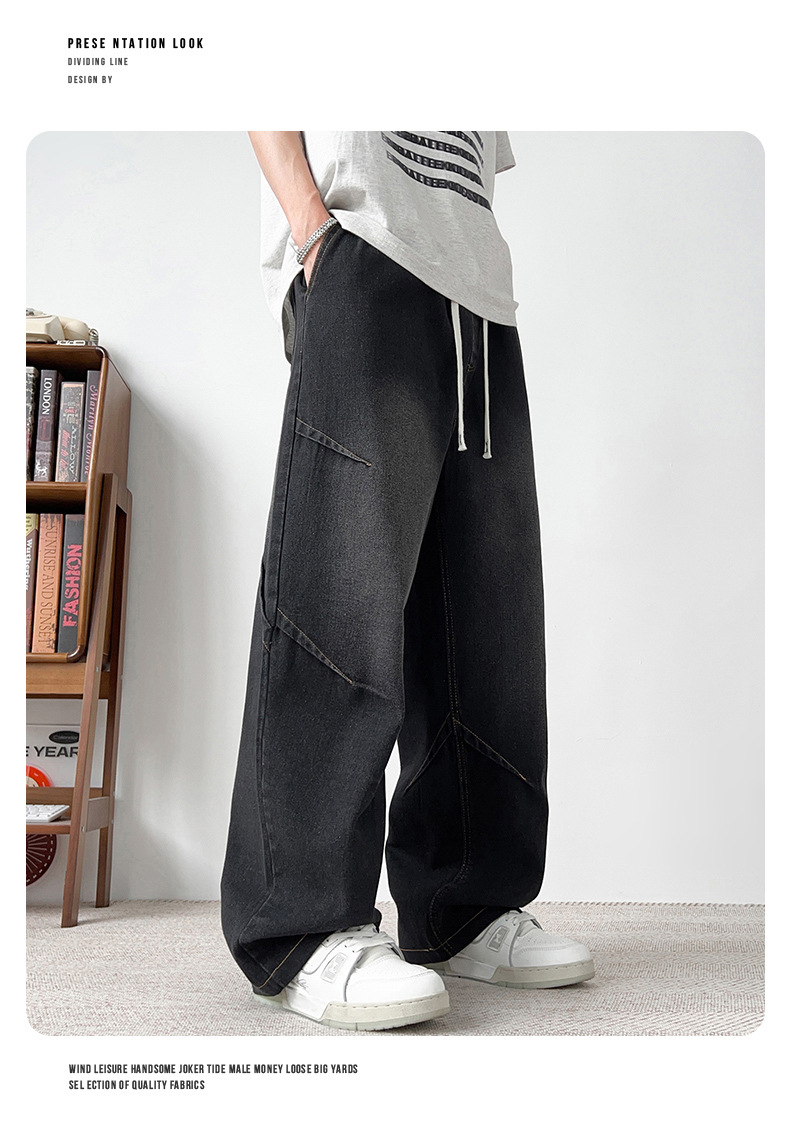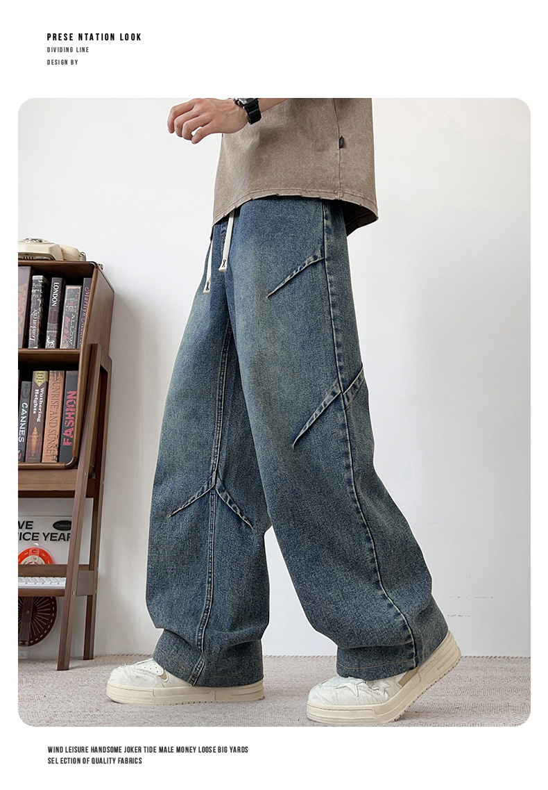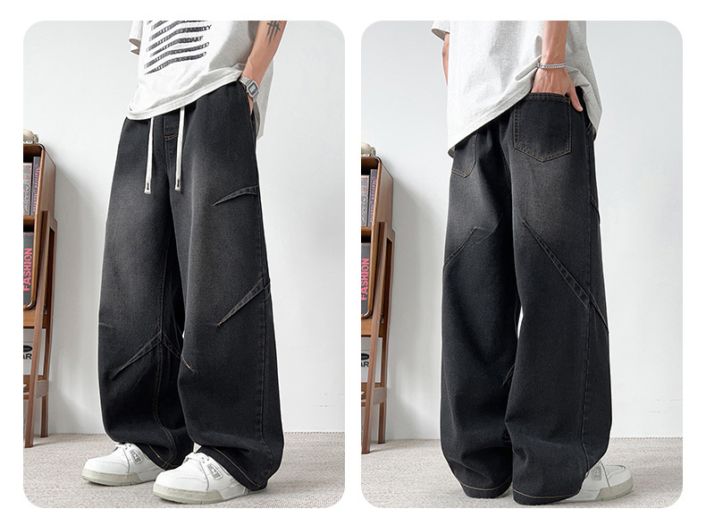 美式复古牛仔裤男士春夏款高街宽松阔腿裤子潮牌休闲直筒工装长裤