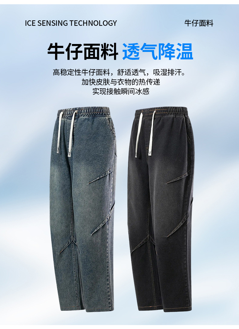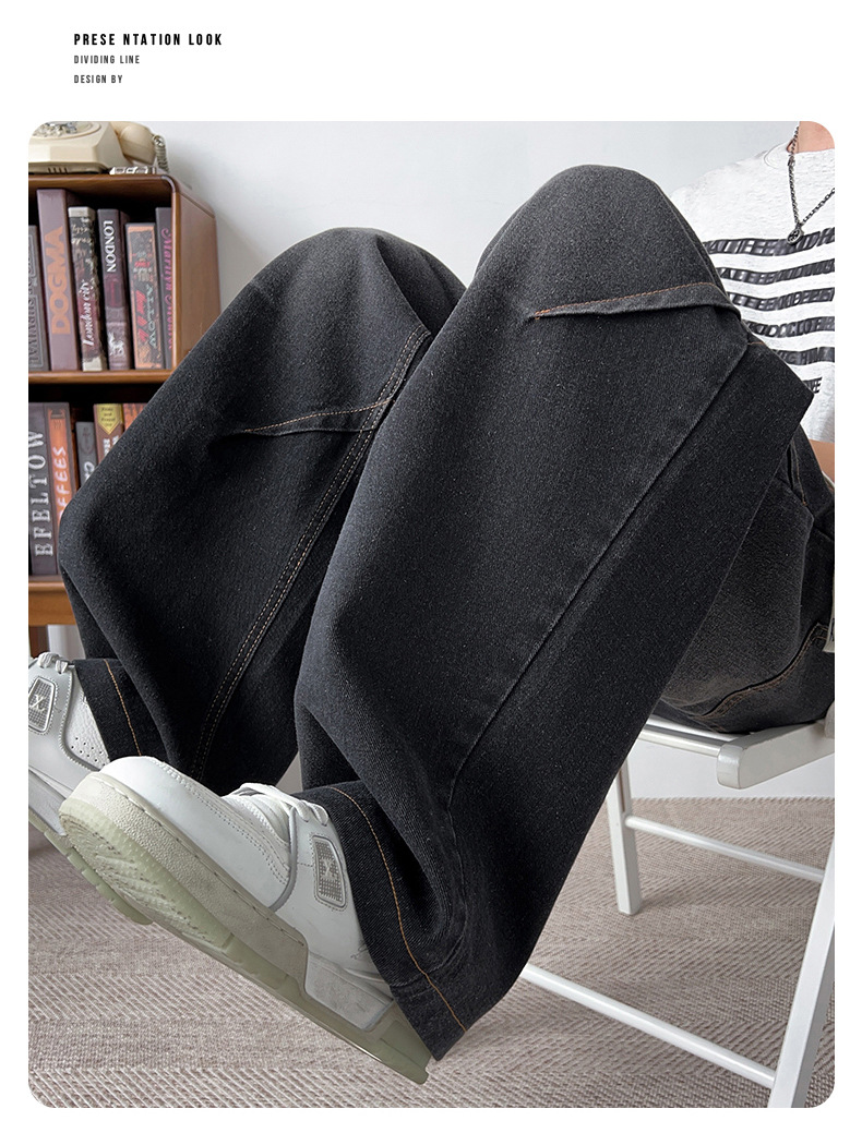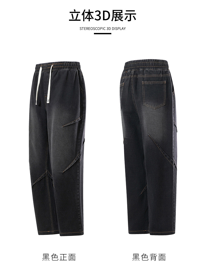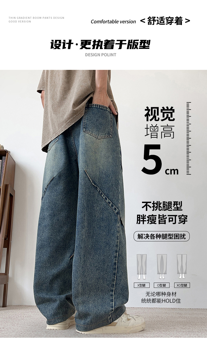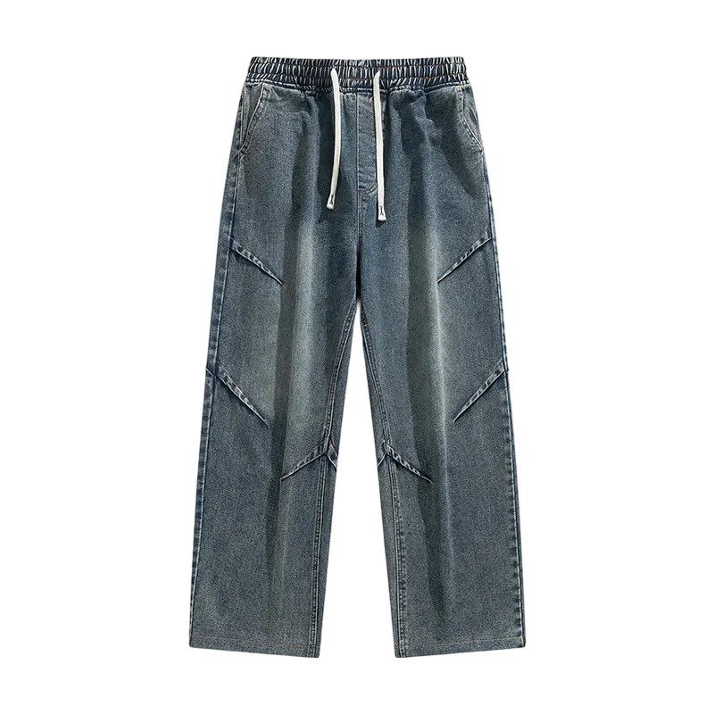 美式复古牛仔裤男士春夏款高街宽松阔腿裤子潮牌休闲直筒工装长裤