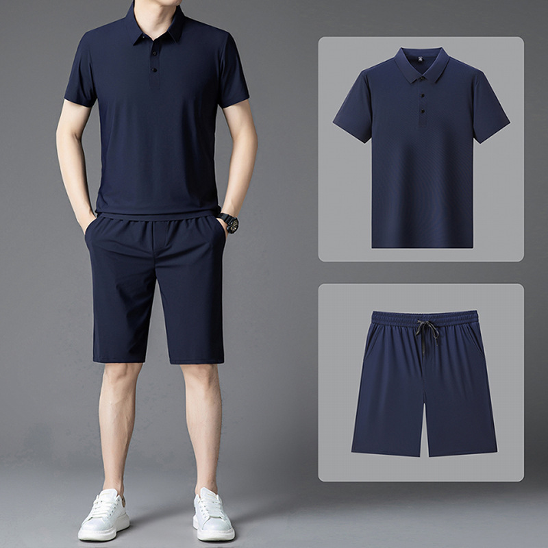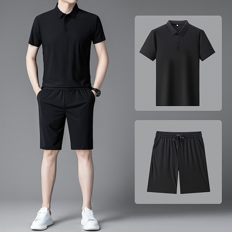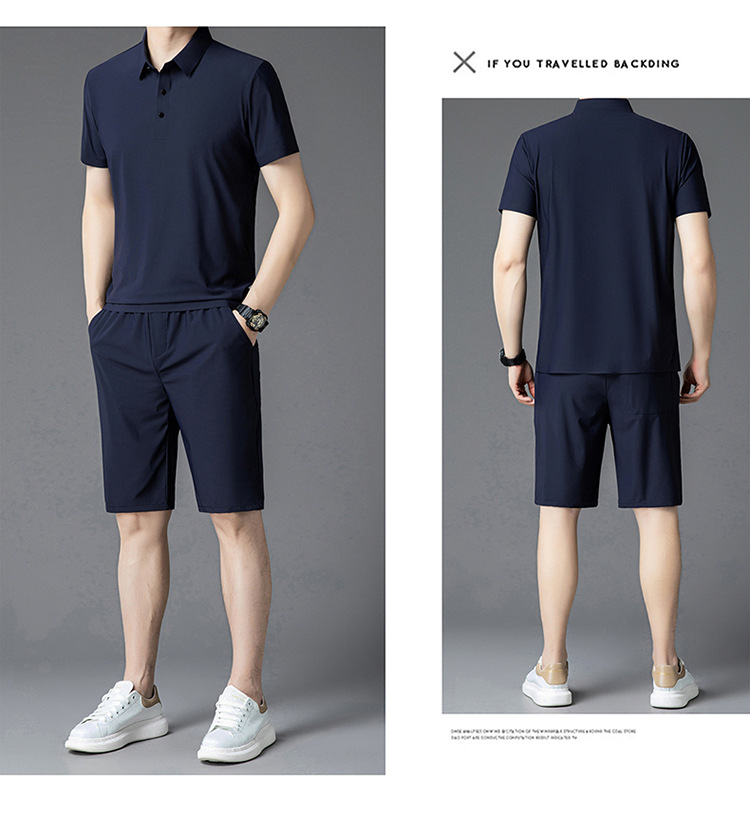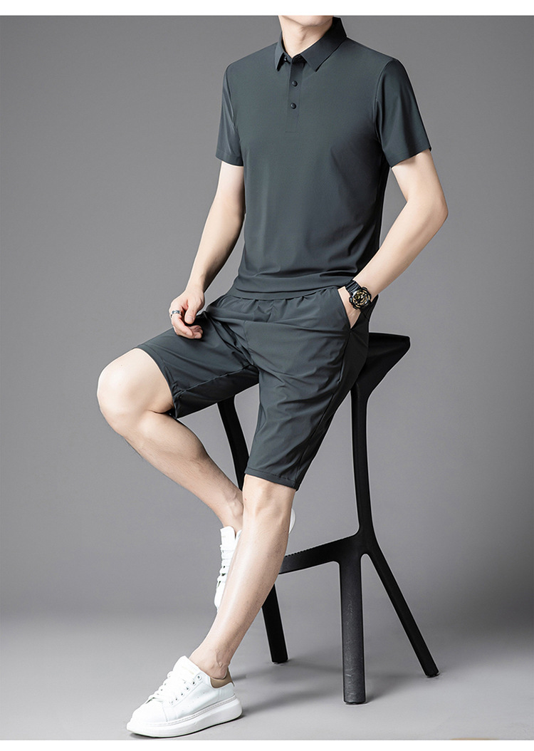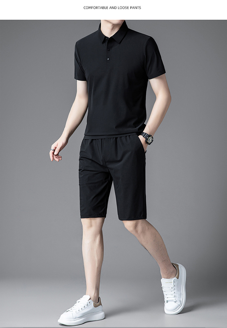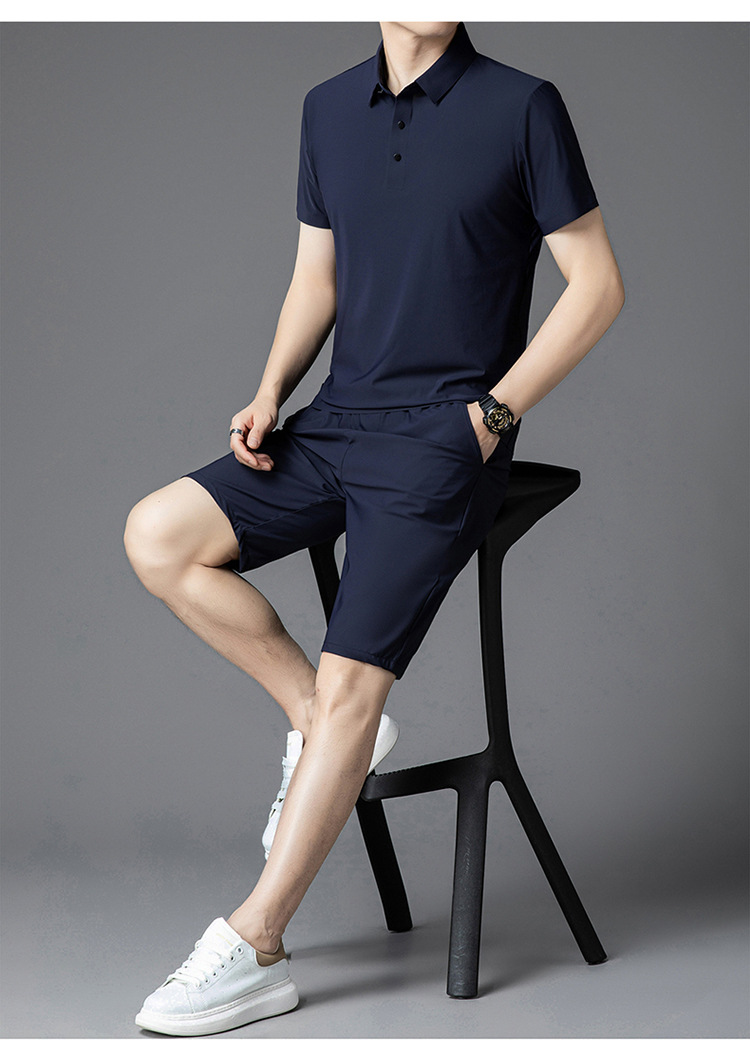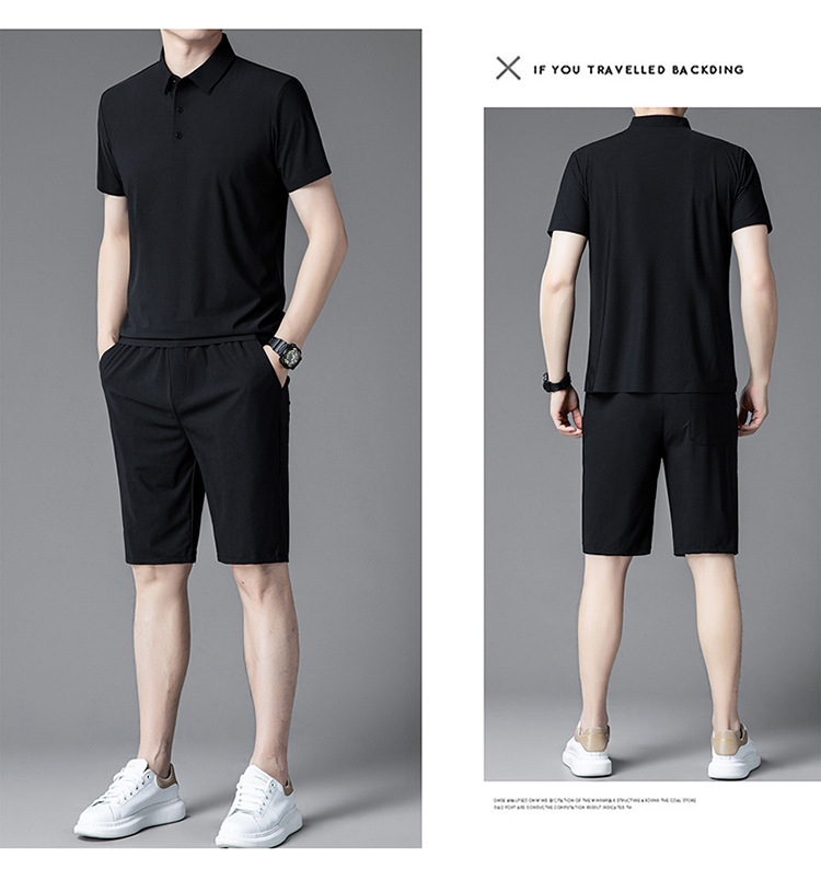 高品质运动套装男士夏季潮流翻领短袖Polo衫男休闲短裤搭配两件套