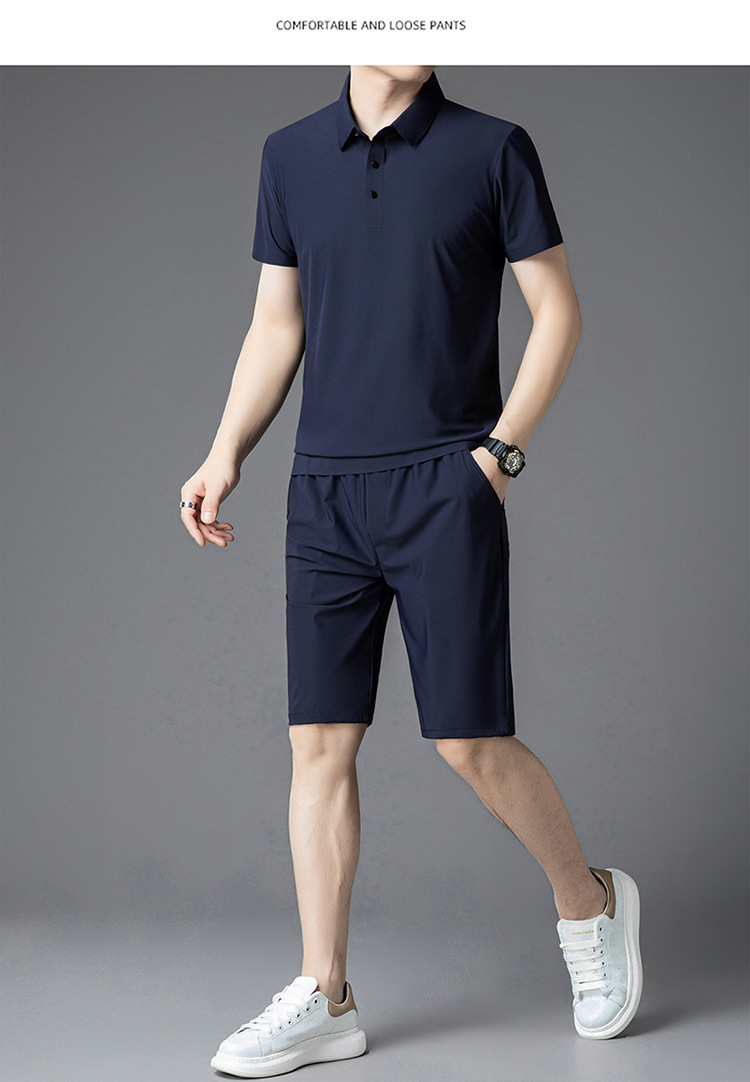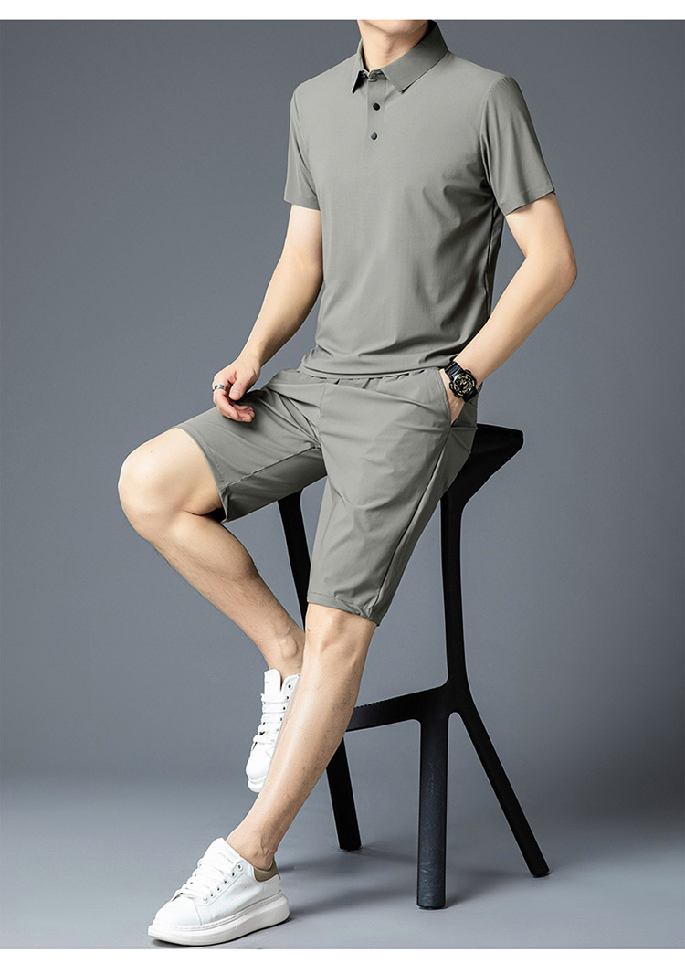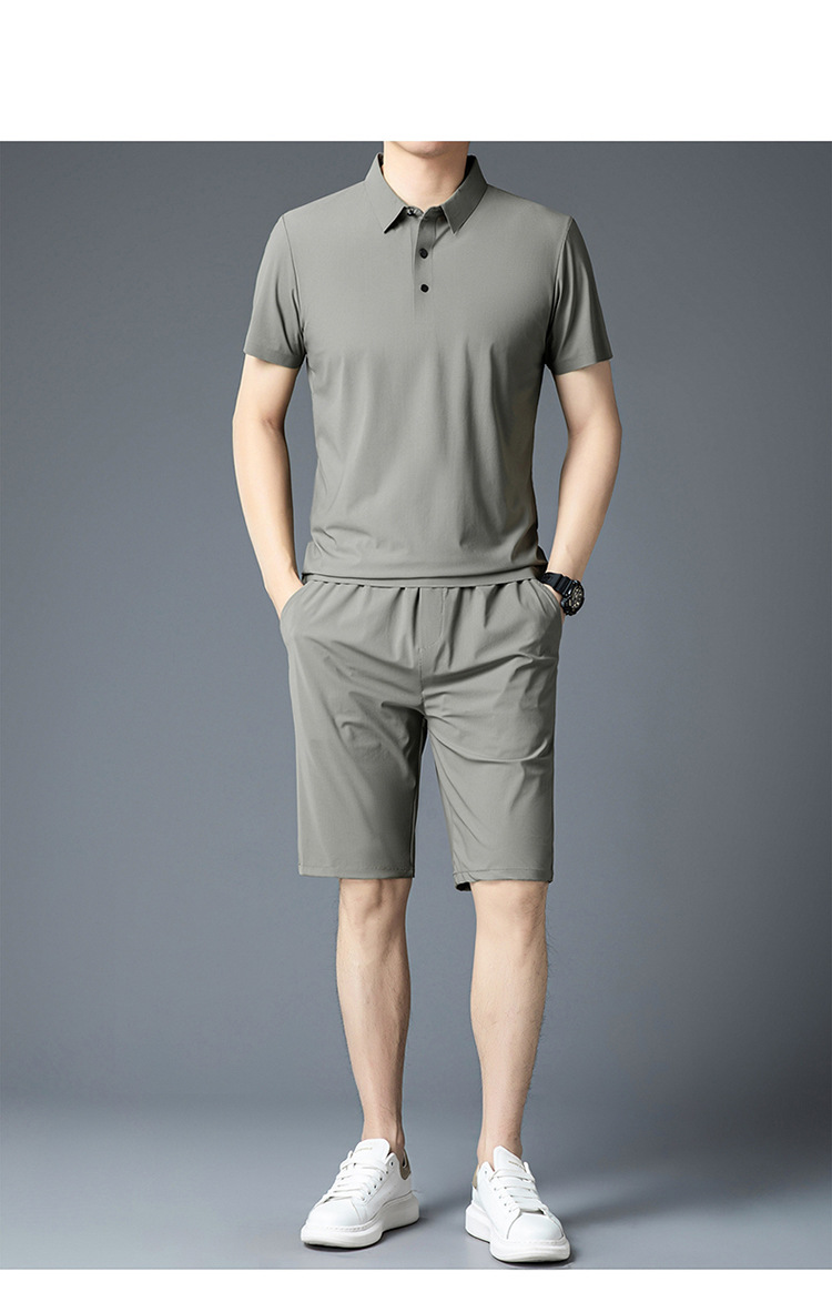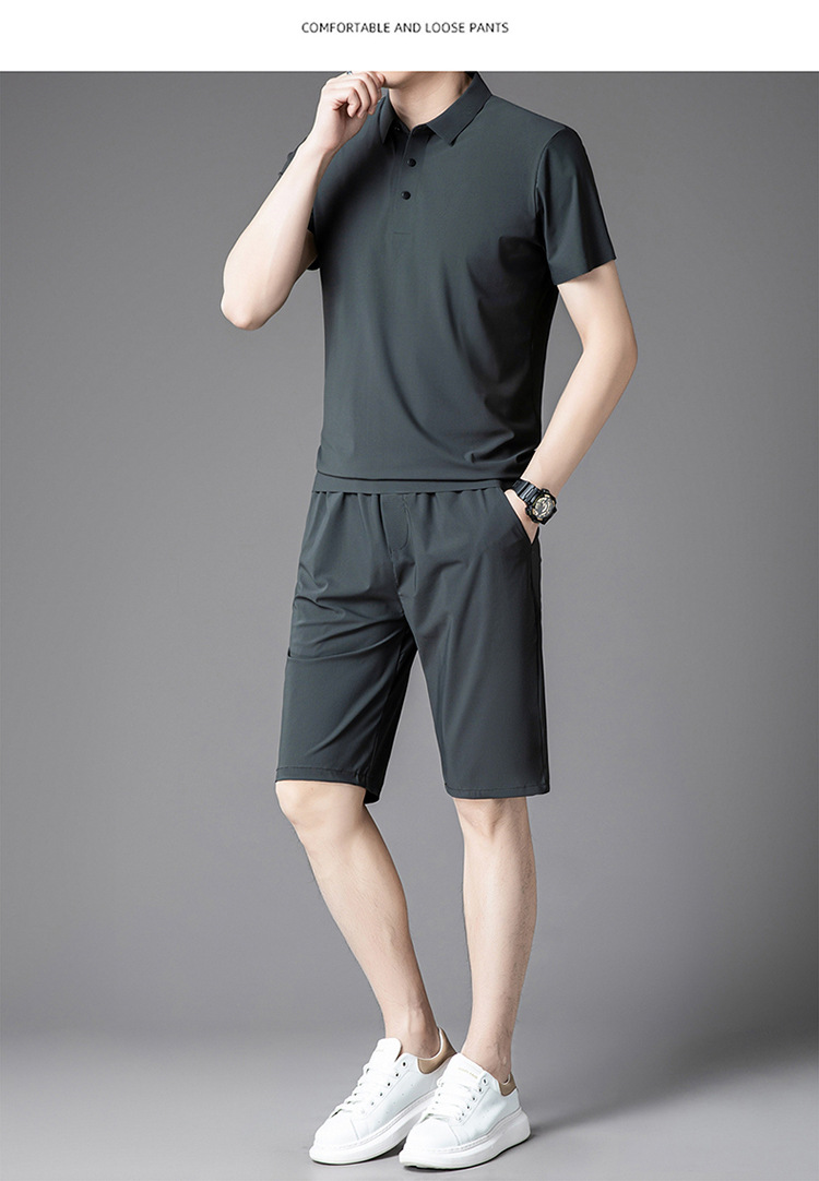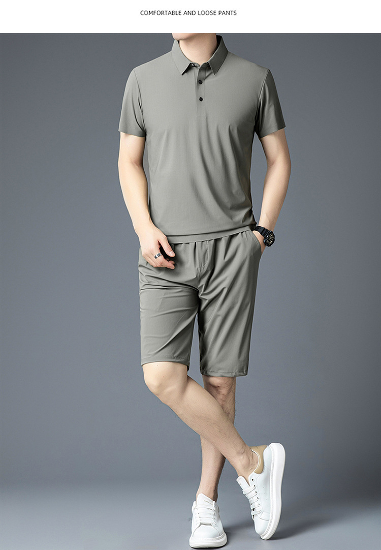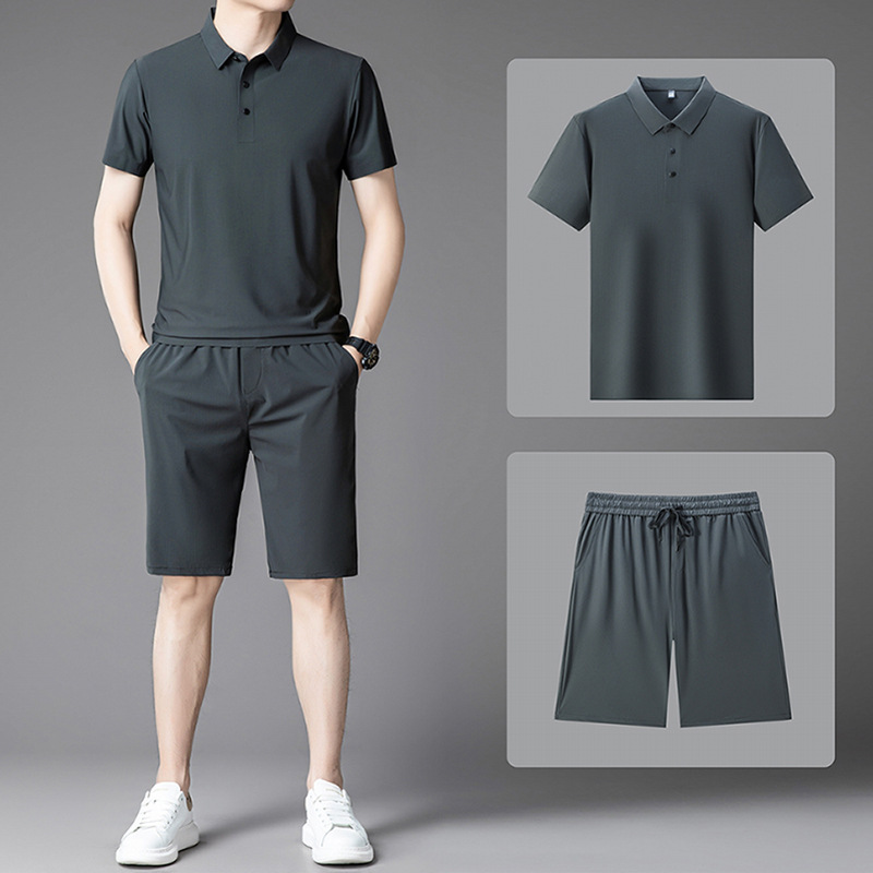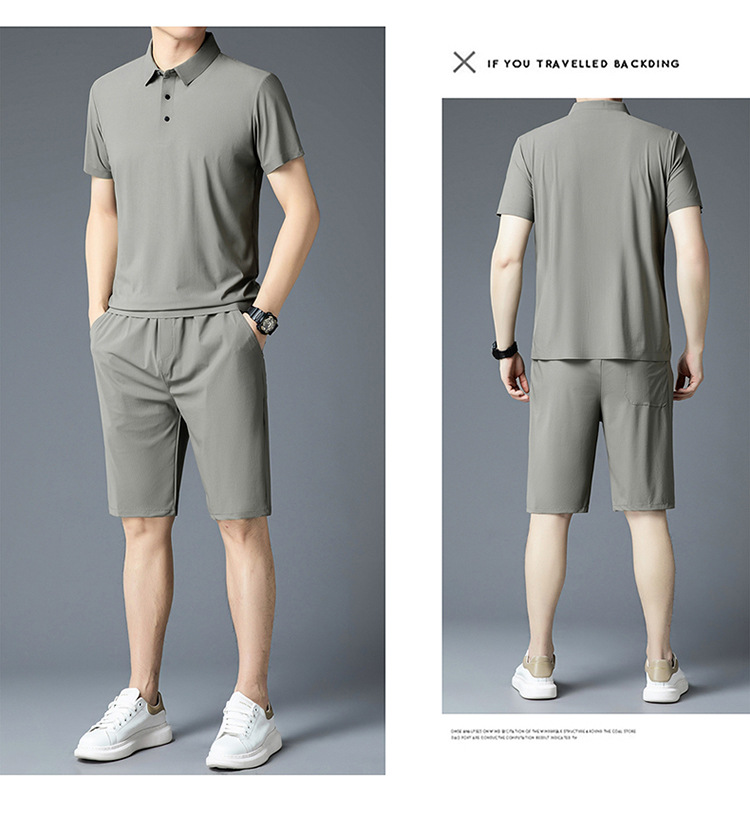 高品质运动套装男士夏季潮流翻领短袖Polo衫男休闲短裤搭配两件套