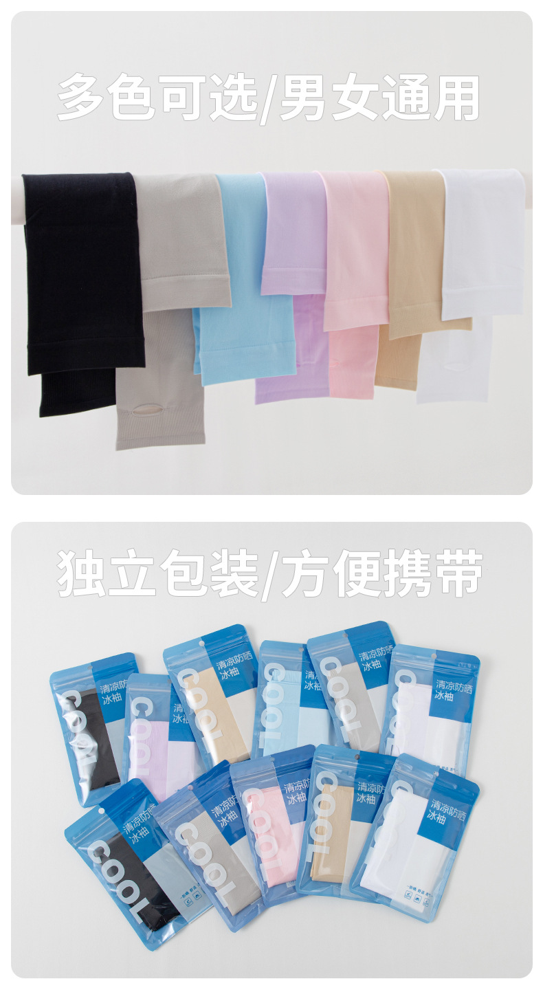 冰袖纯色袖套烫印LOGO男女冰丝袖套夏季防晒防紫外线手臂套袖批发