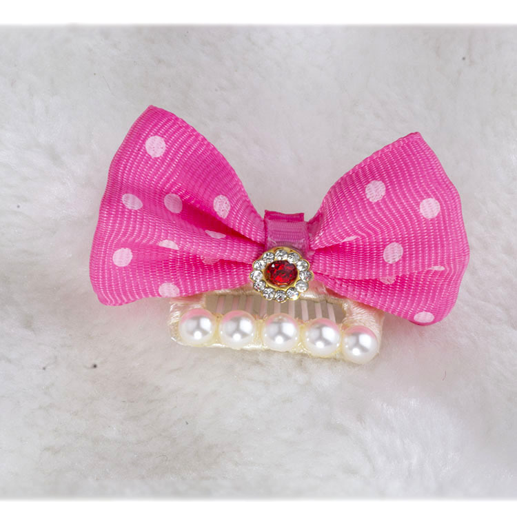 新款水钻蝴蝶结小狗发卡约克夏马尔济斯发卡宠物饰品猫狗通用发夹