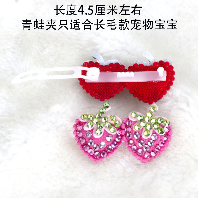 宠物发夹青蛙夹一字扣带钻满钻草莓发夹西施犬马尔济斯犬狗狗发夹