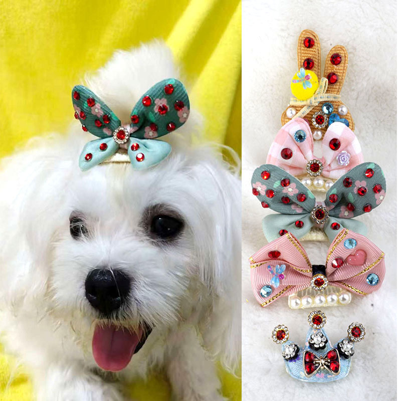 小狗发卡约克夏马尔济斯发夹宠物饰品蝴蝶结碎发夹短毛长毛都能用