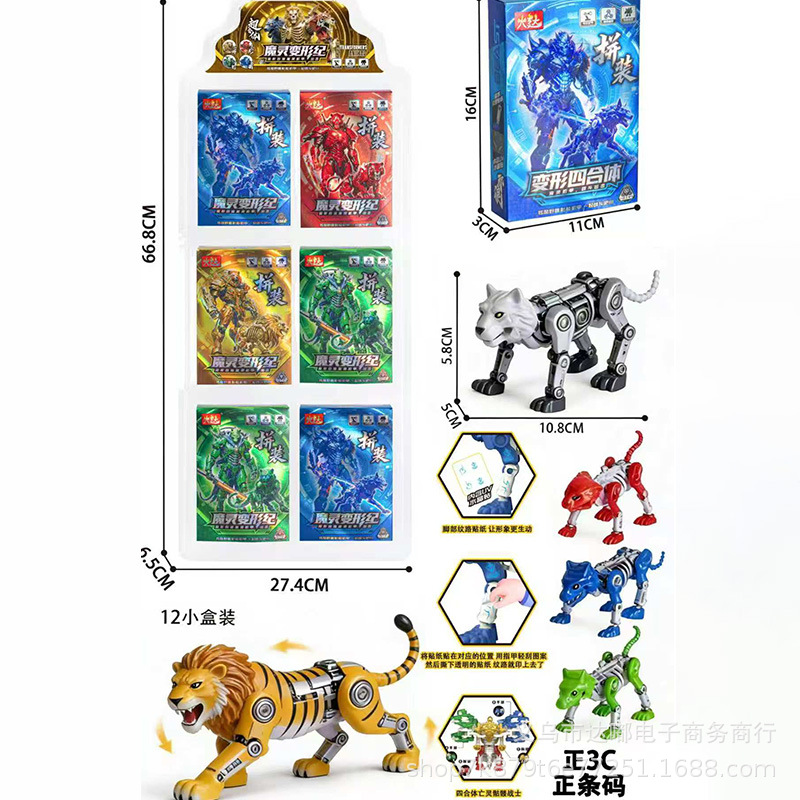 机器人神将圣兽虎狮狼豹机甲五合体魔灵变形纪儿童男孩玩具