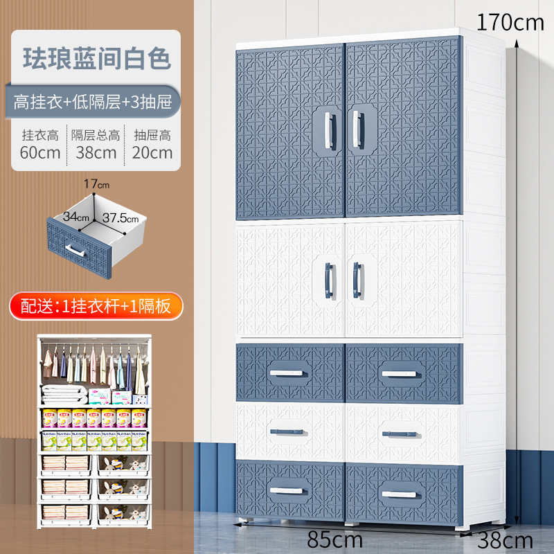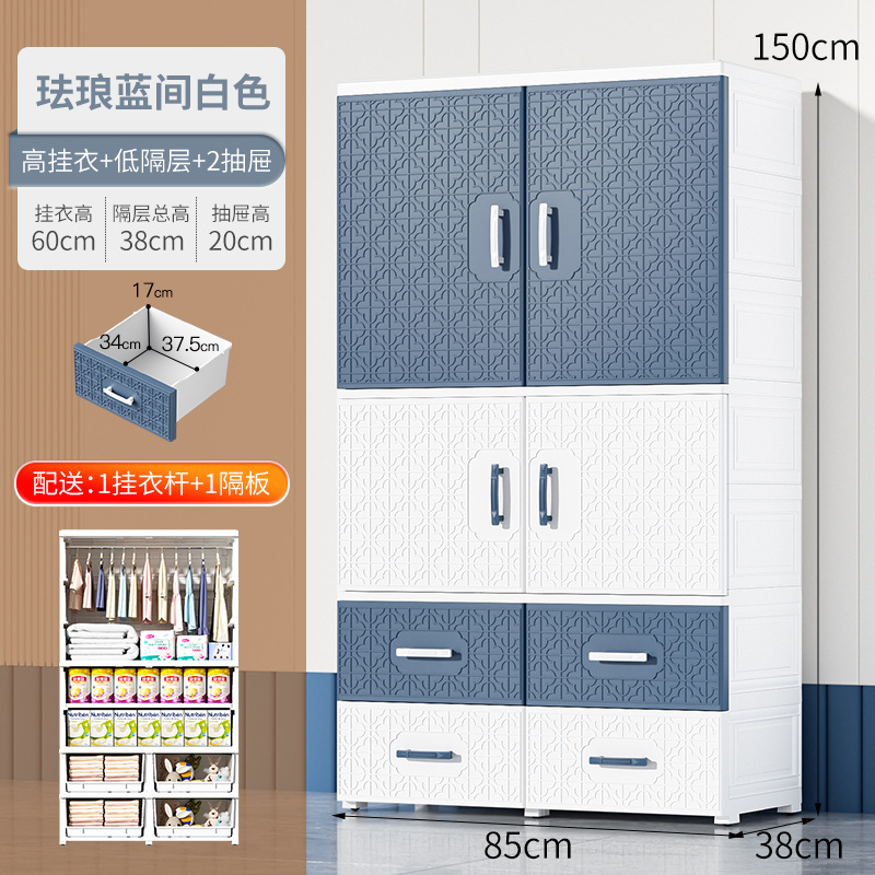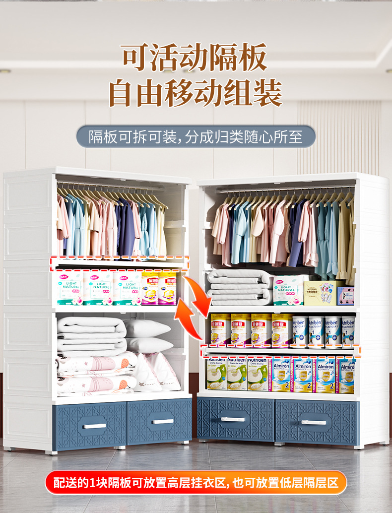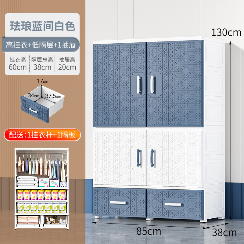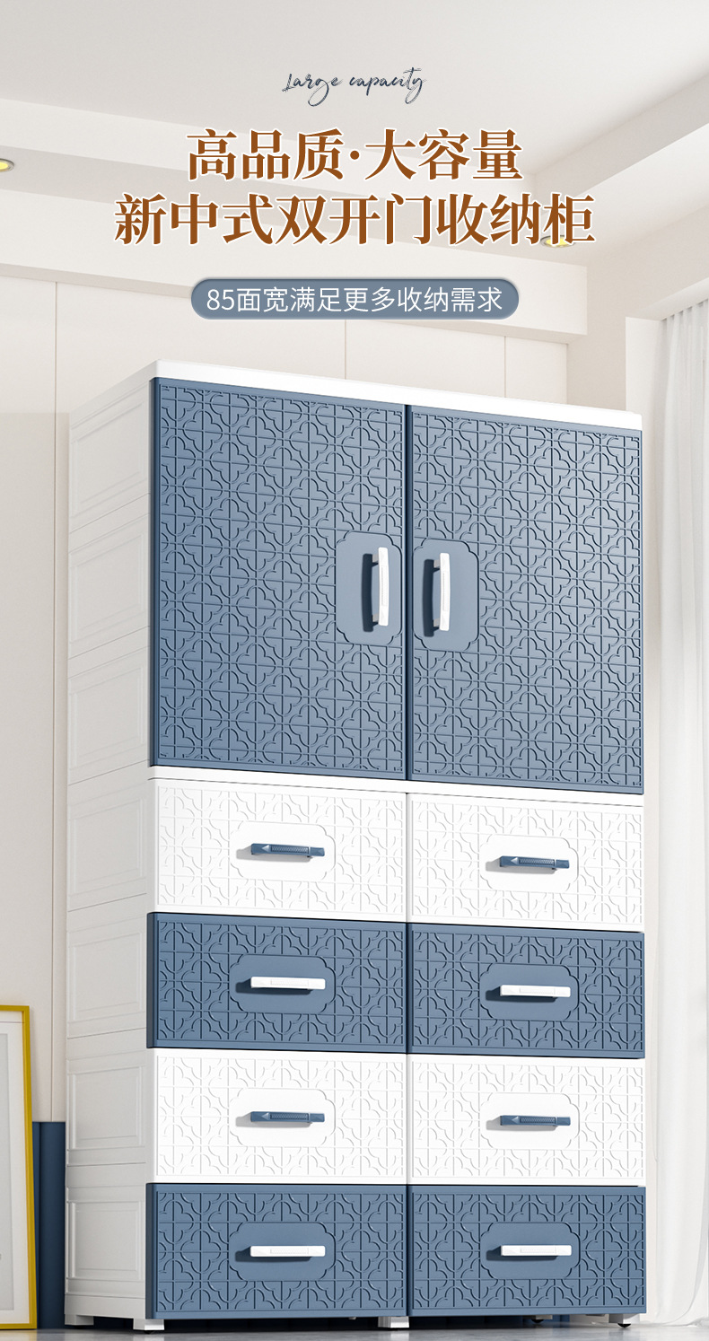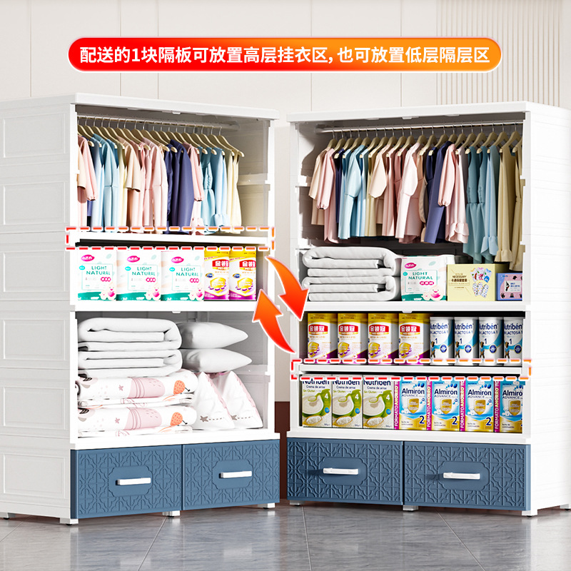 特大加厚多层双开门简易储物柜塑料儿童衣柜家用卧室衣物储物橱柜