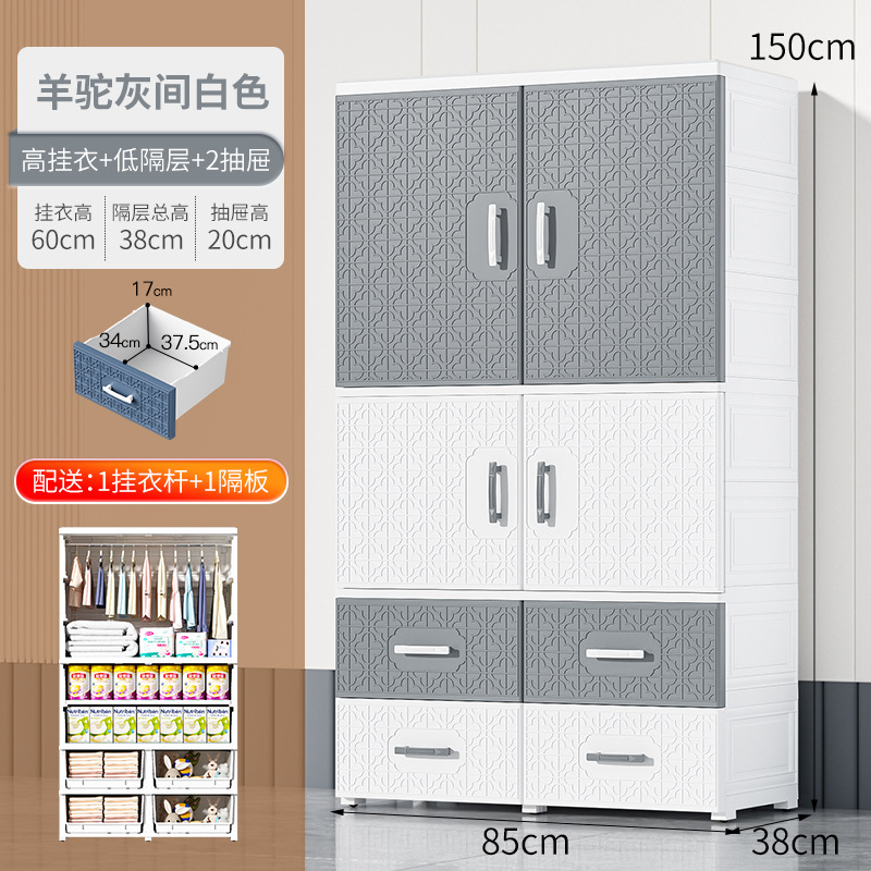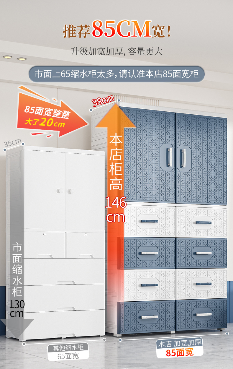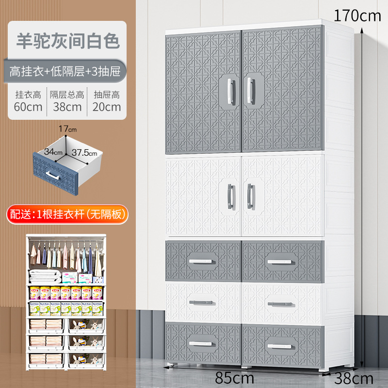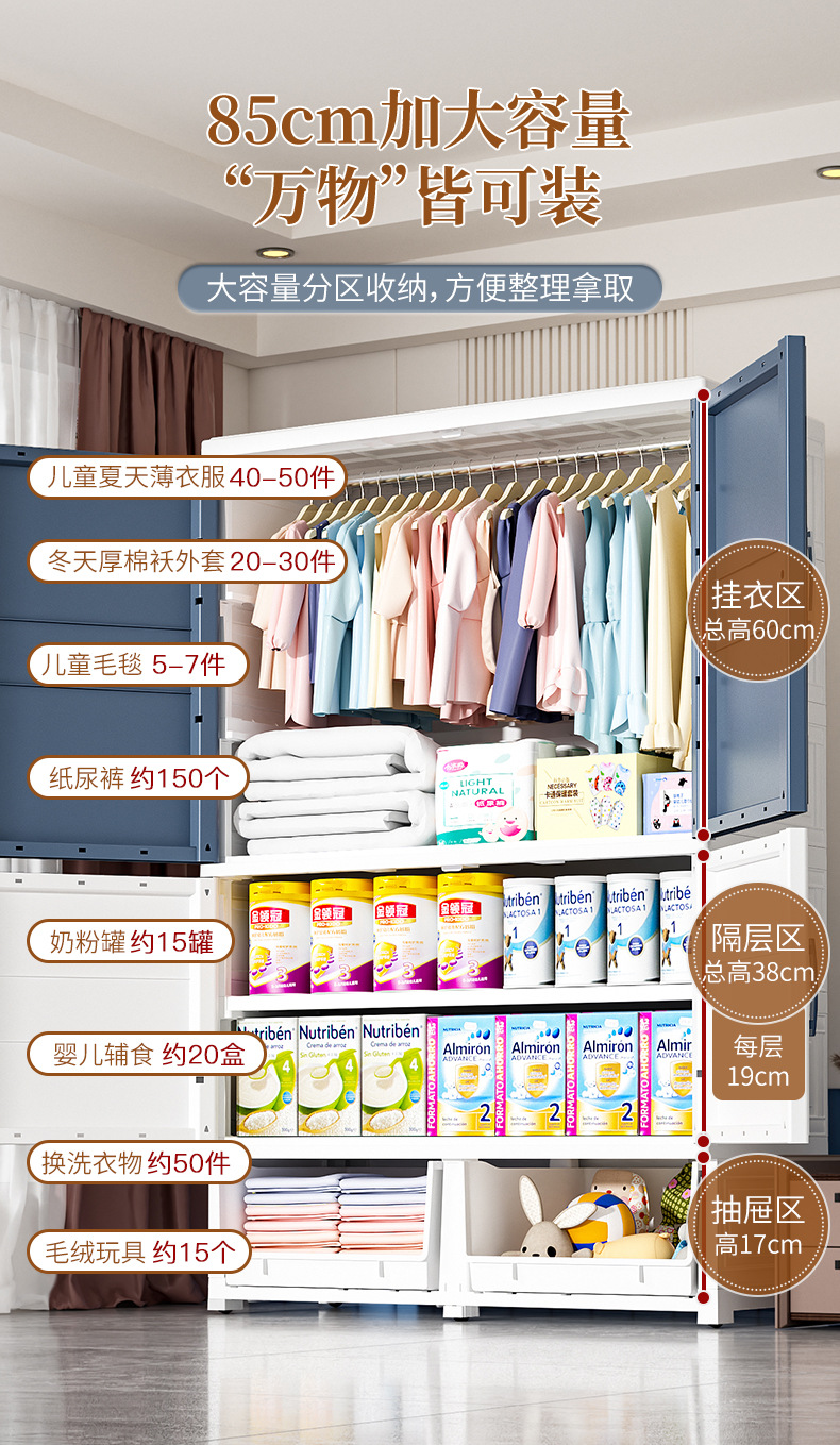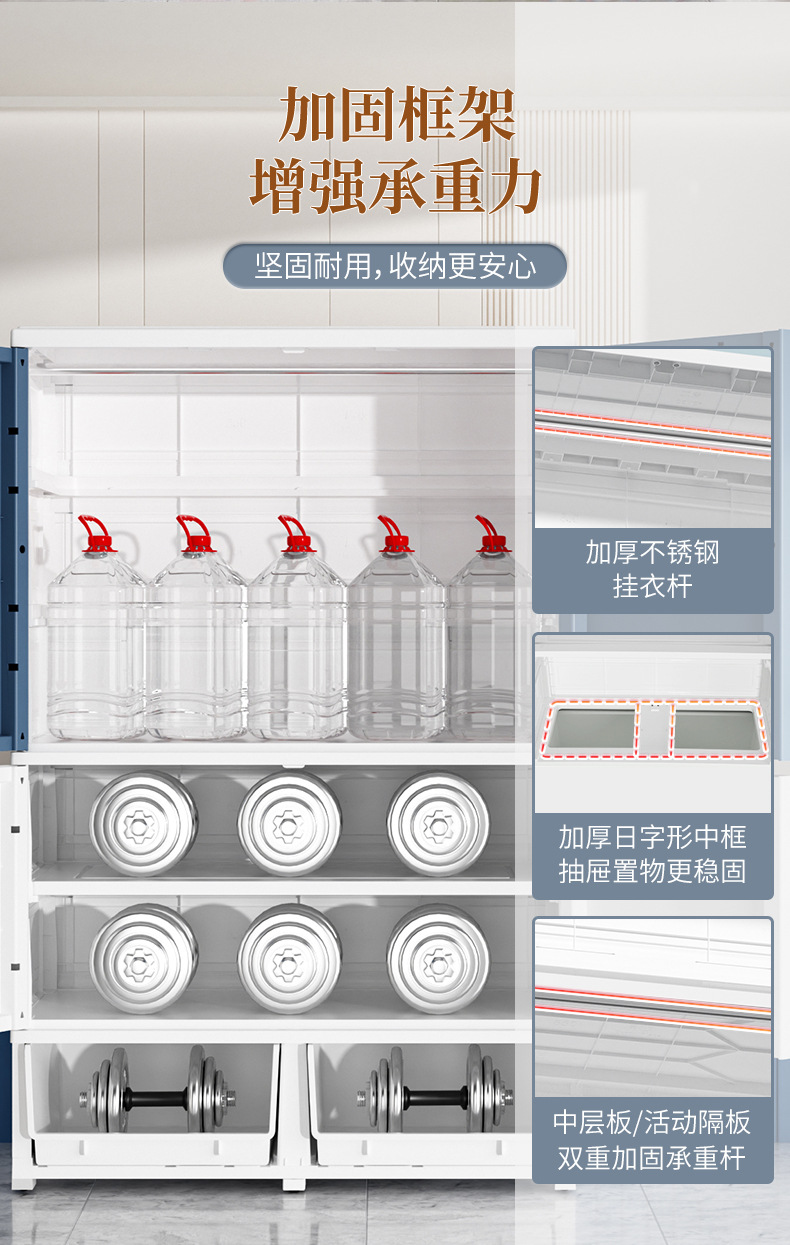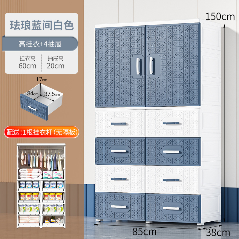 特大加厚多层双开门简易储物柜塑料儿童衣柜家用卧室衣物储物橱柜