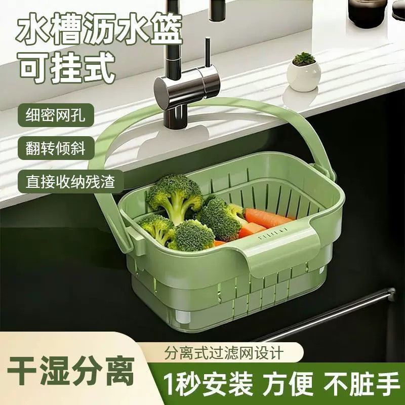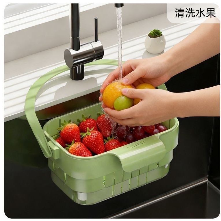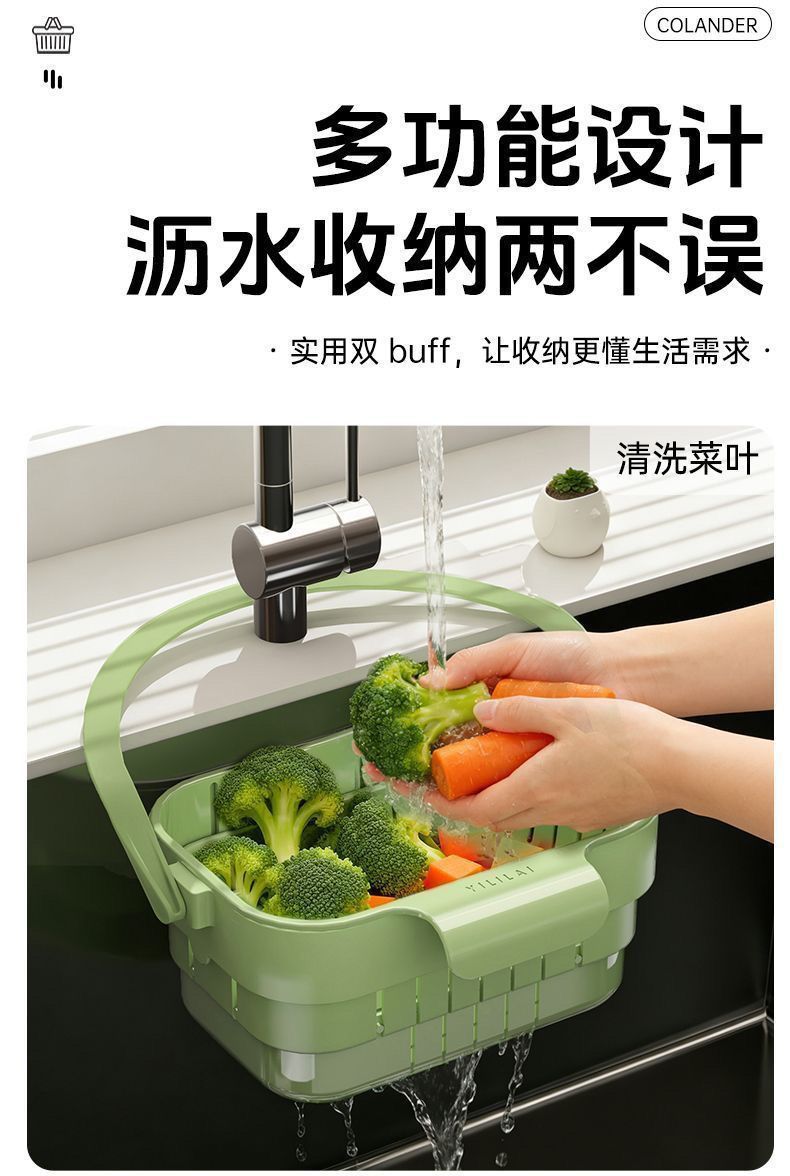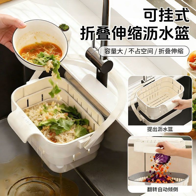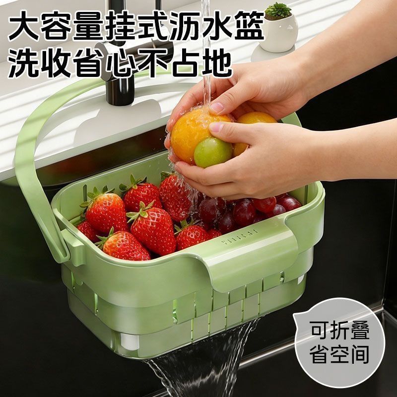 折叠沥水篮可折叠厨房沥水篮家用水槽可伸缩可挂式置物架过滤挂篮