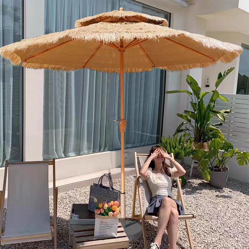 亚马逊三亚沙滩伞景区民宿庭院茅草伞海滩露营遮阳伞仿真稻草伞