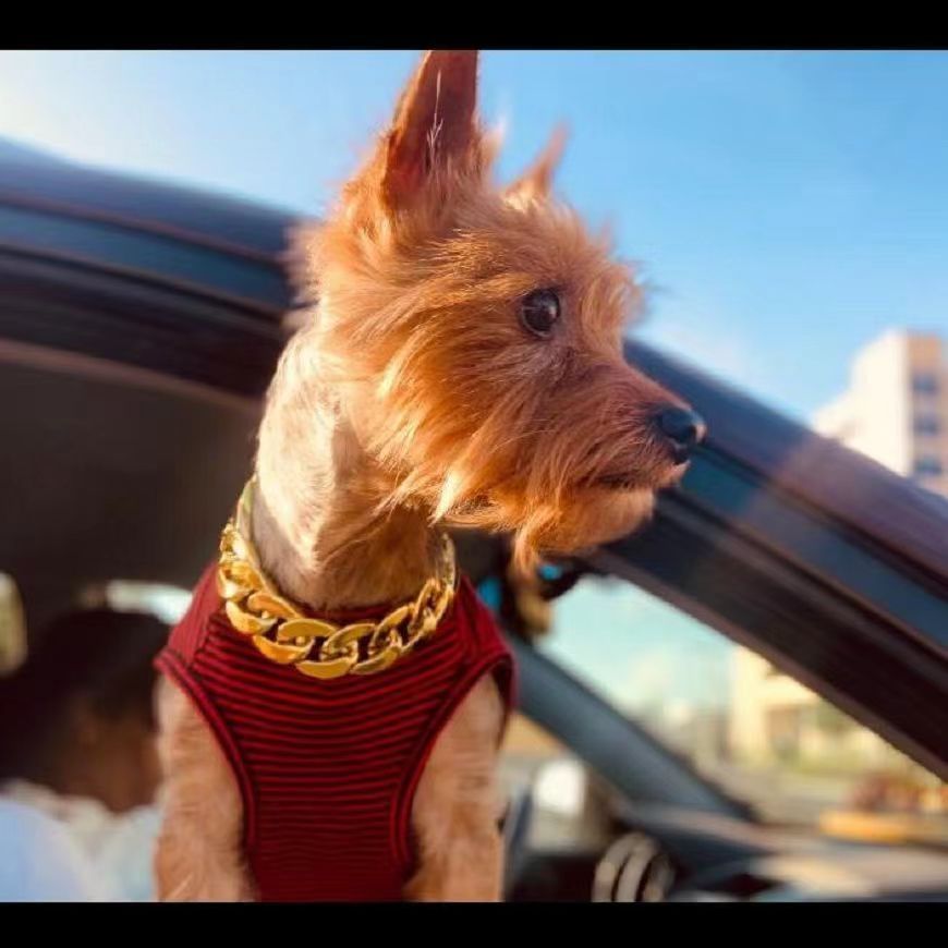 宠物大金链子狗狗项链猫咪项圈高级感可调节宠物金项链宠物古巴链