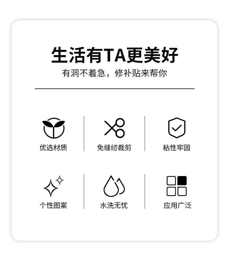羽绒服补丁贴破洞修复自粘贴布丁衣服图案贴免缝无痕补洞贴防水贴