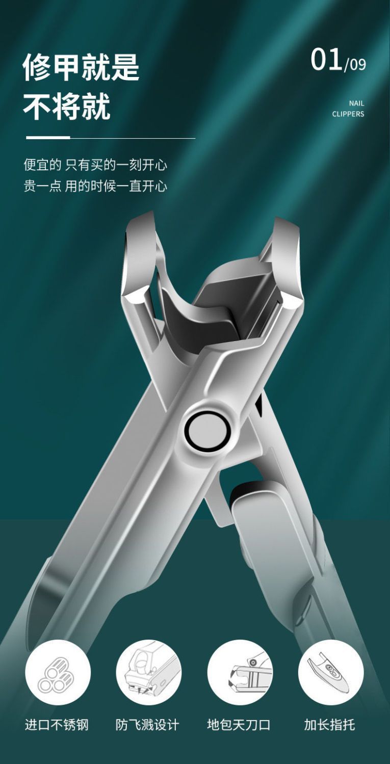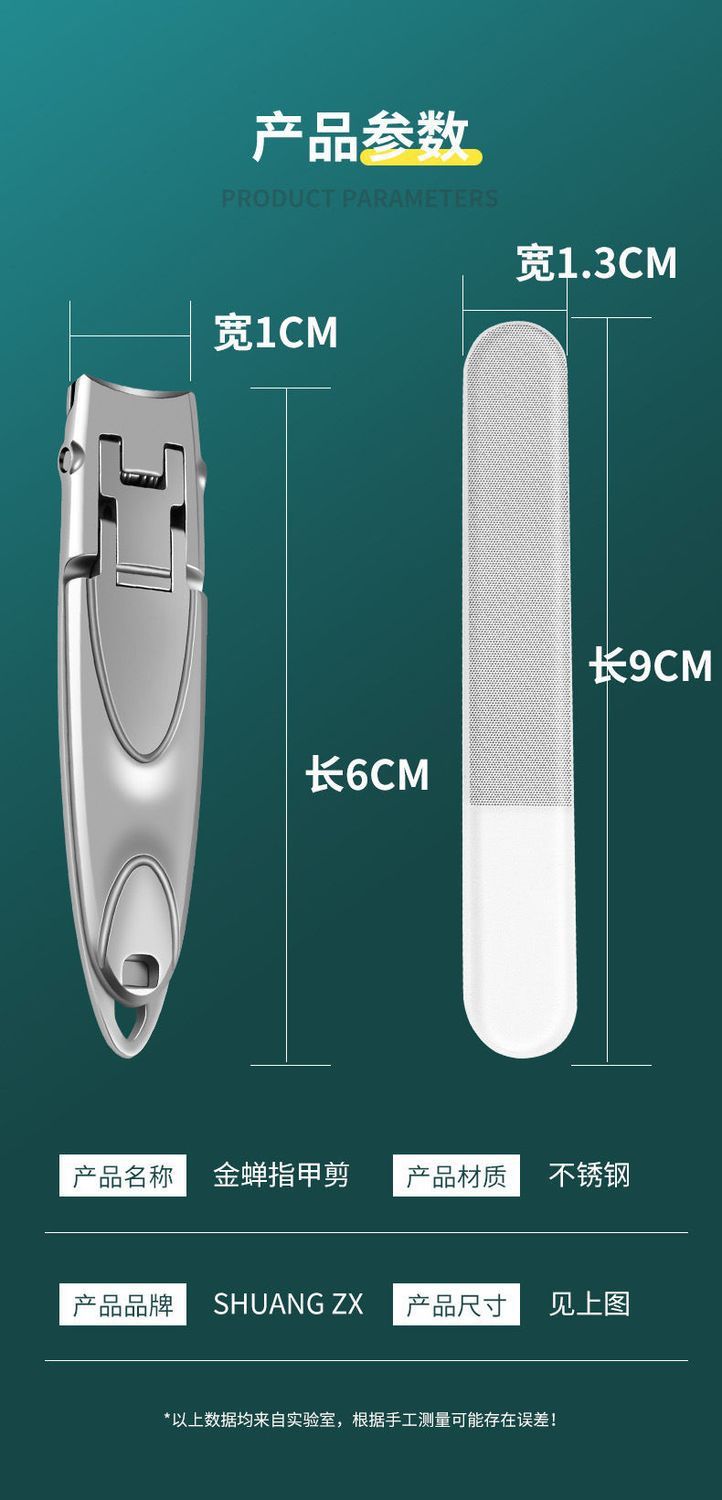 新款不锈钢防飞溅金蝉指甲剪超薄便携指甲钳指甲刀套装美甲工具