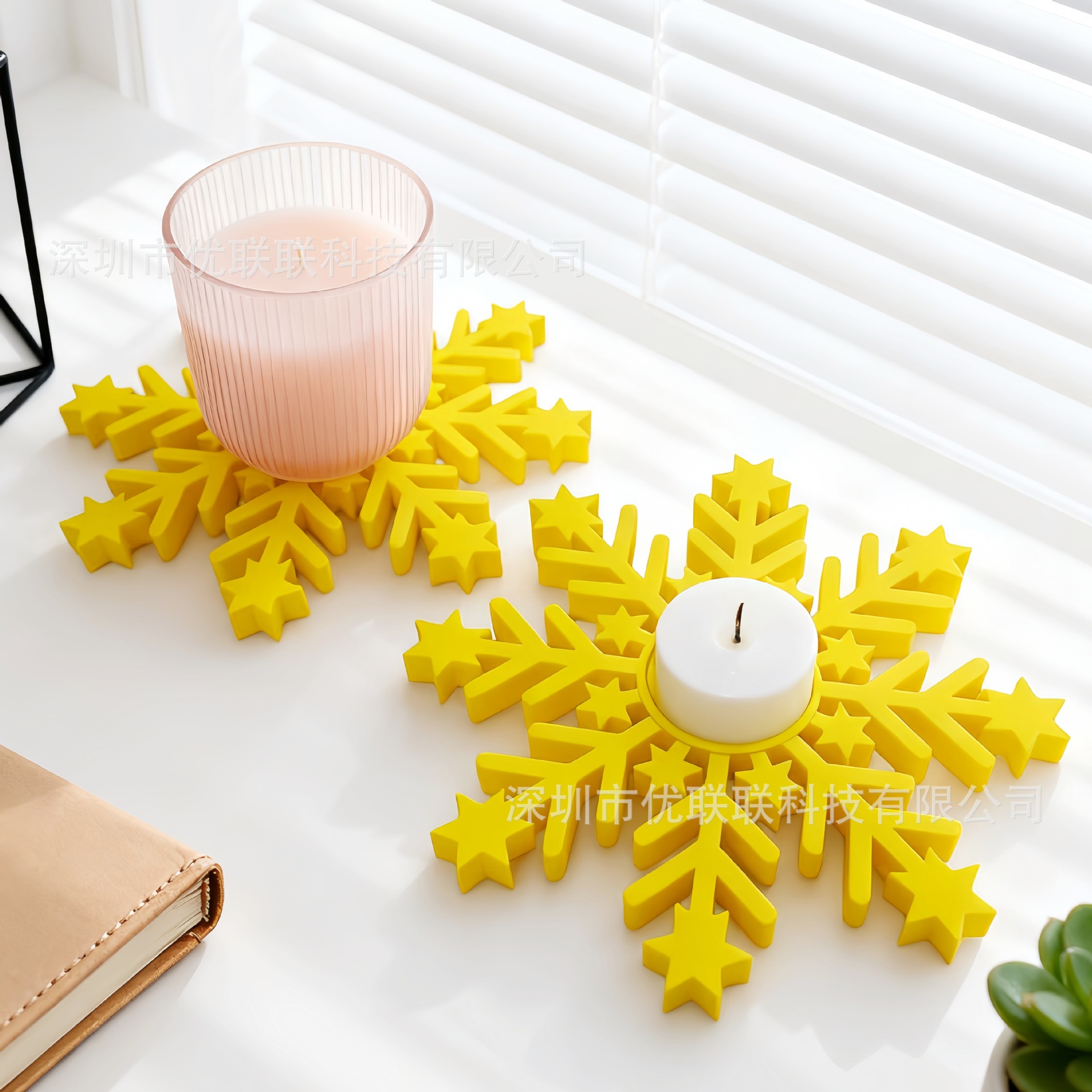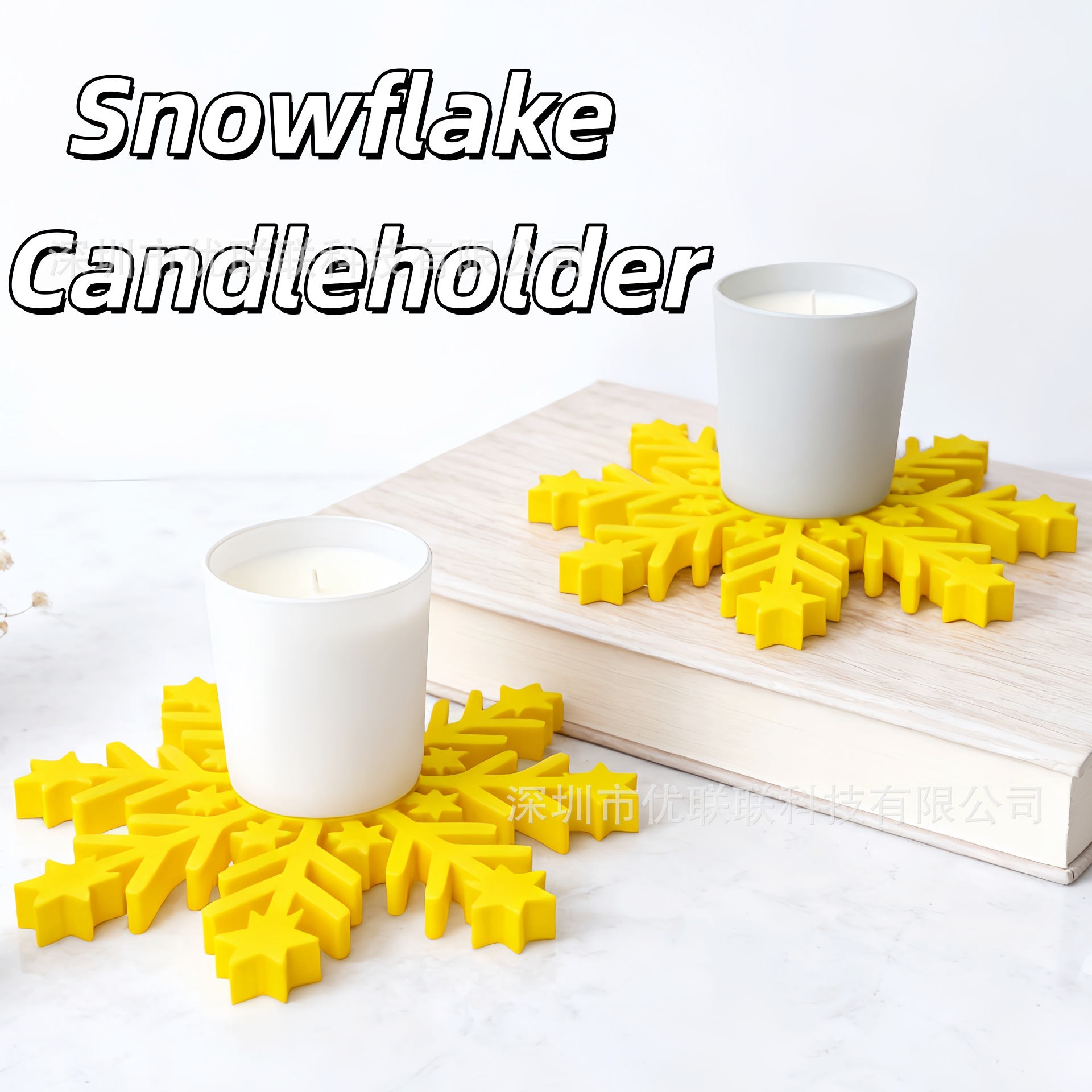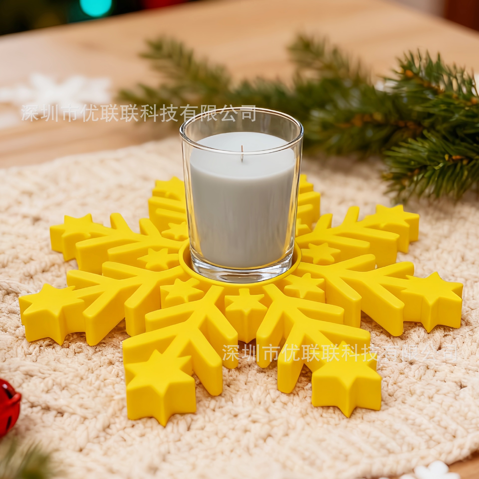 跨境爆款 3D打印 黄色雪花杯垫烛台 塑料 居家餐桌摆件