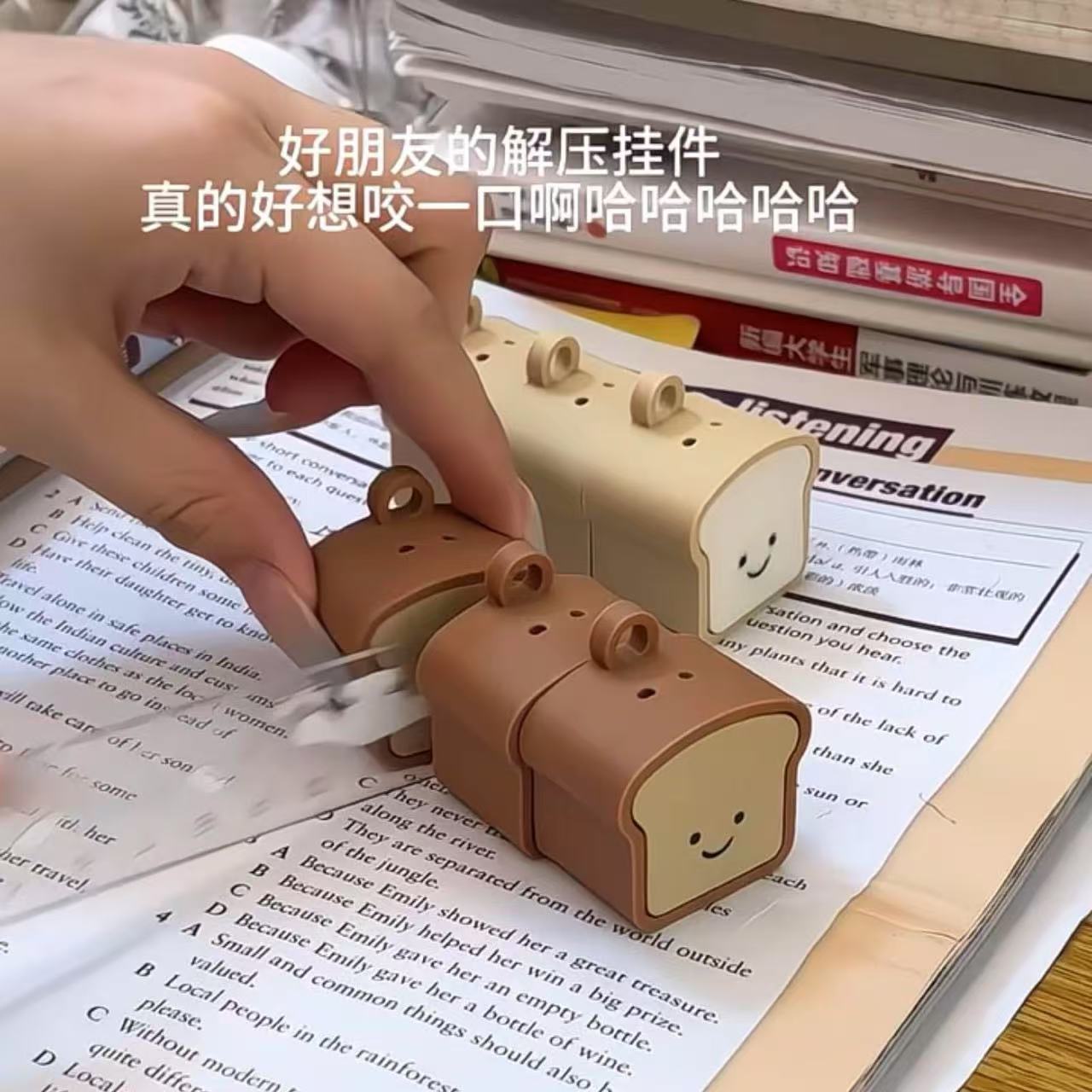 跨境新品面包吐司按键钥匙创意3d打印搞怪减压神器多功能包包挂件