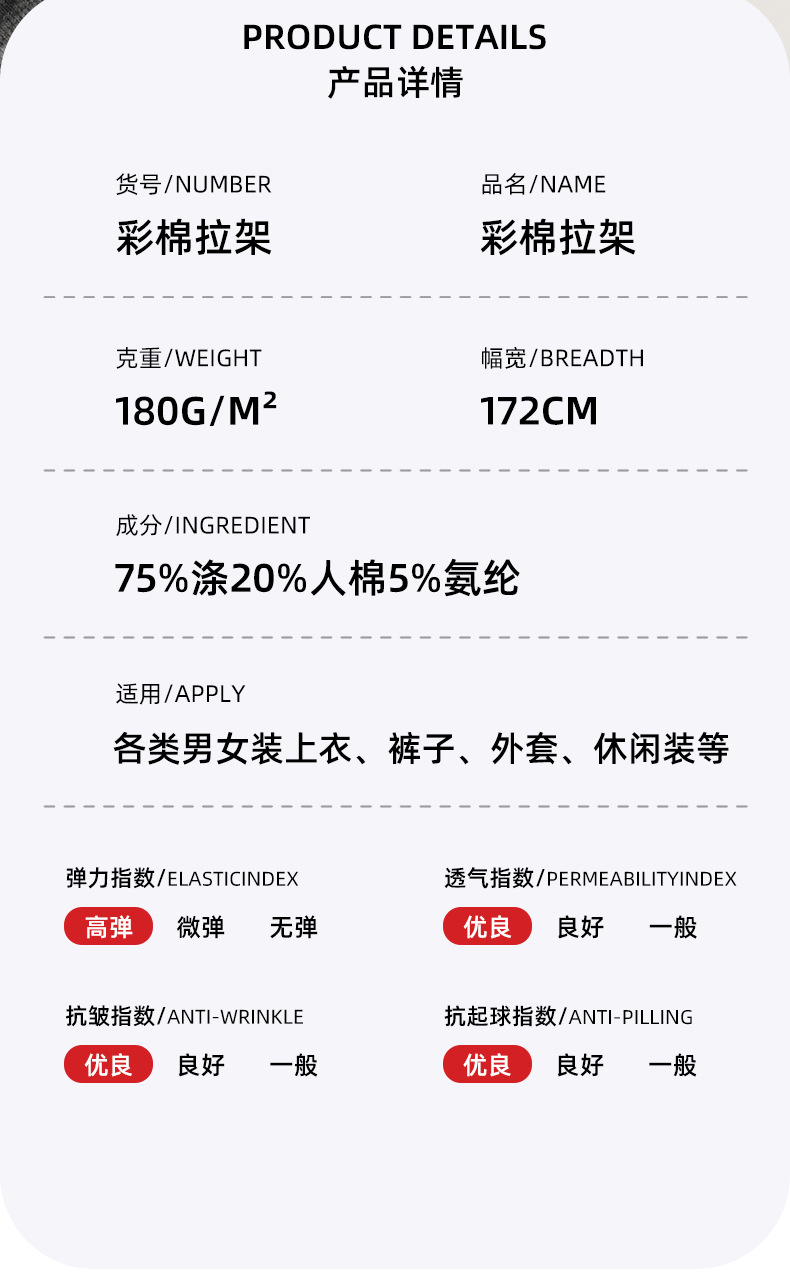 彩棉拉架平纹汗布 180g人棉涤纶TR针织面料 服装单面t恤布料