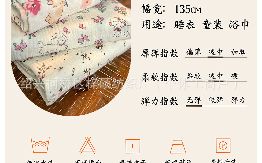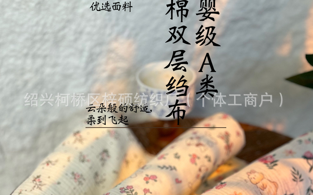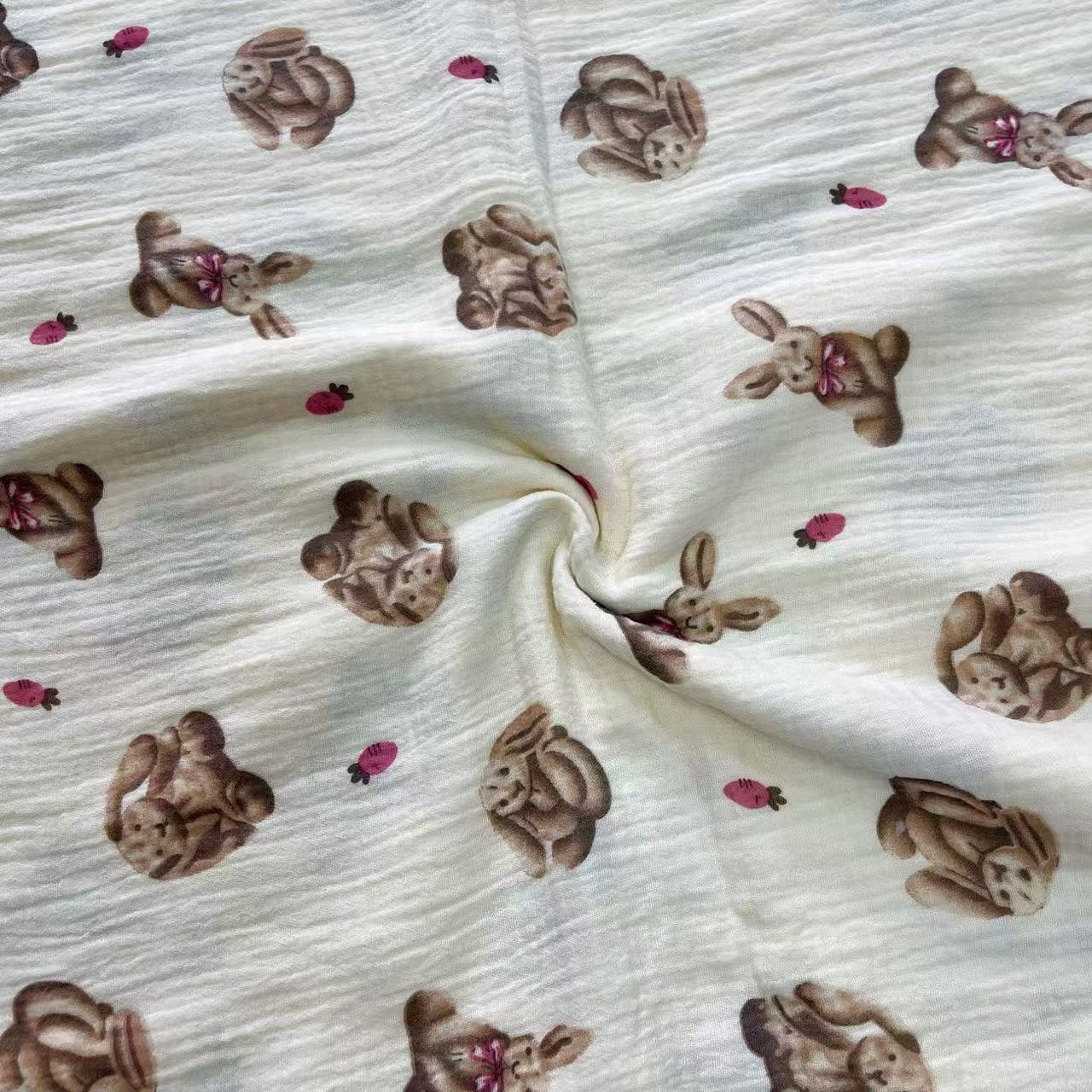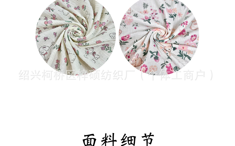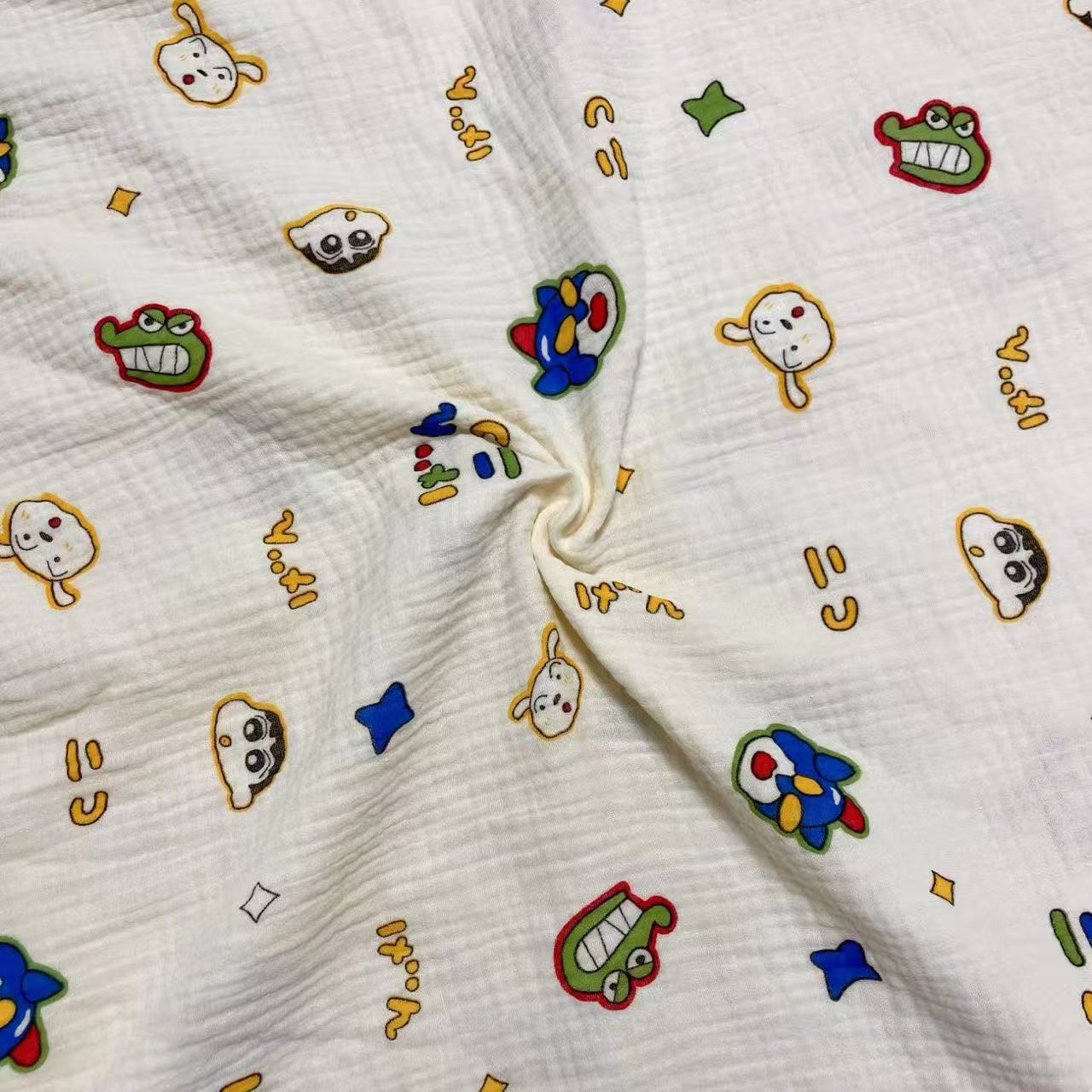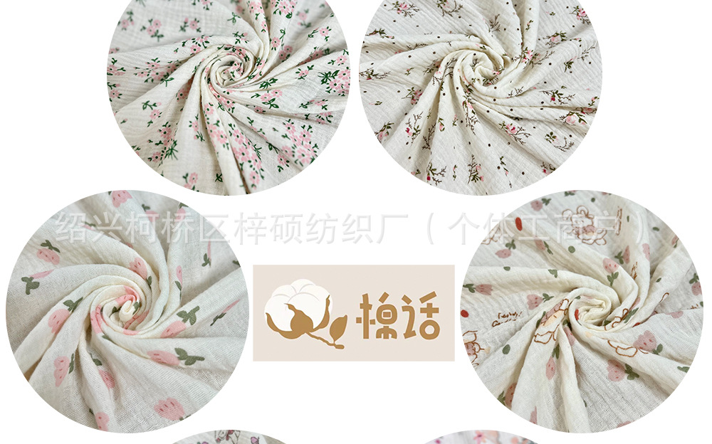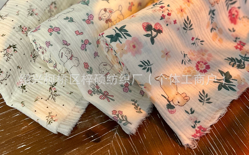 全棉薄款双层纱布绉布印花婴童服装口水巾家居睡衣面料家纺