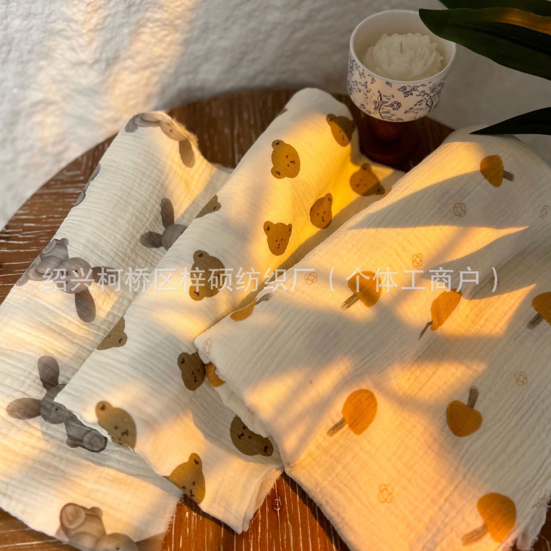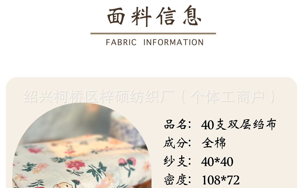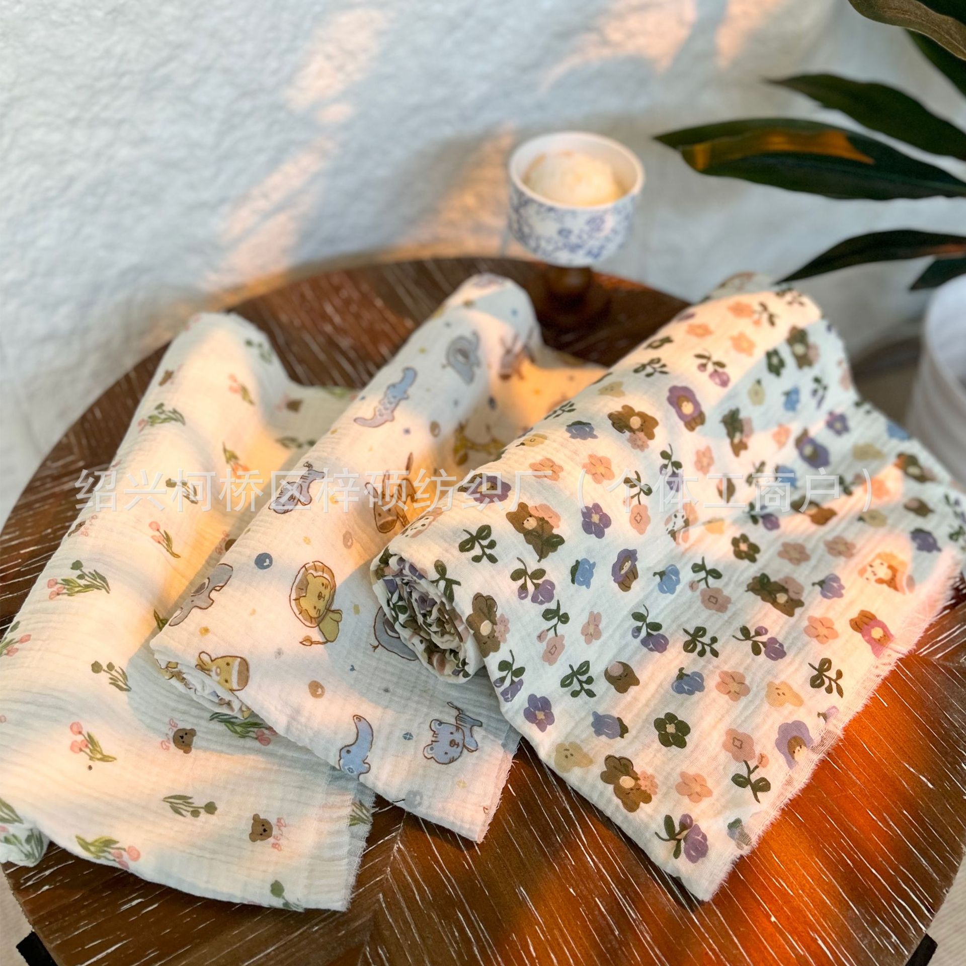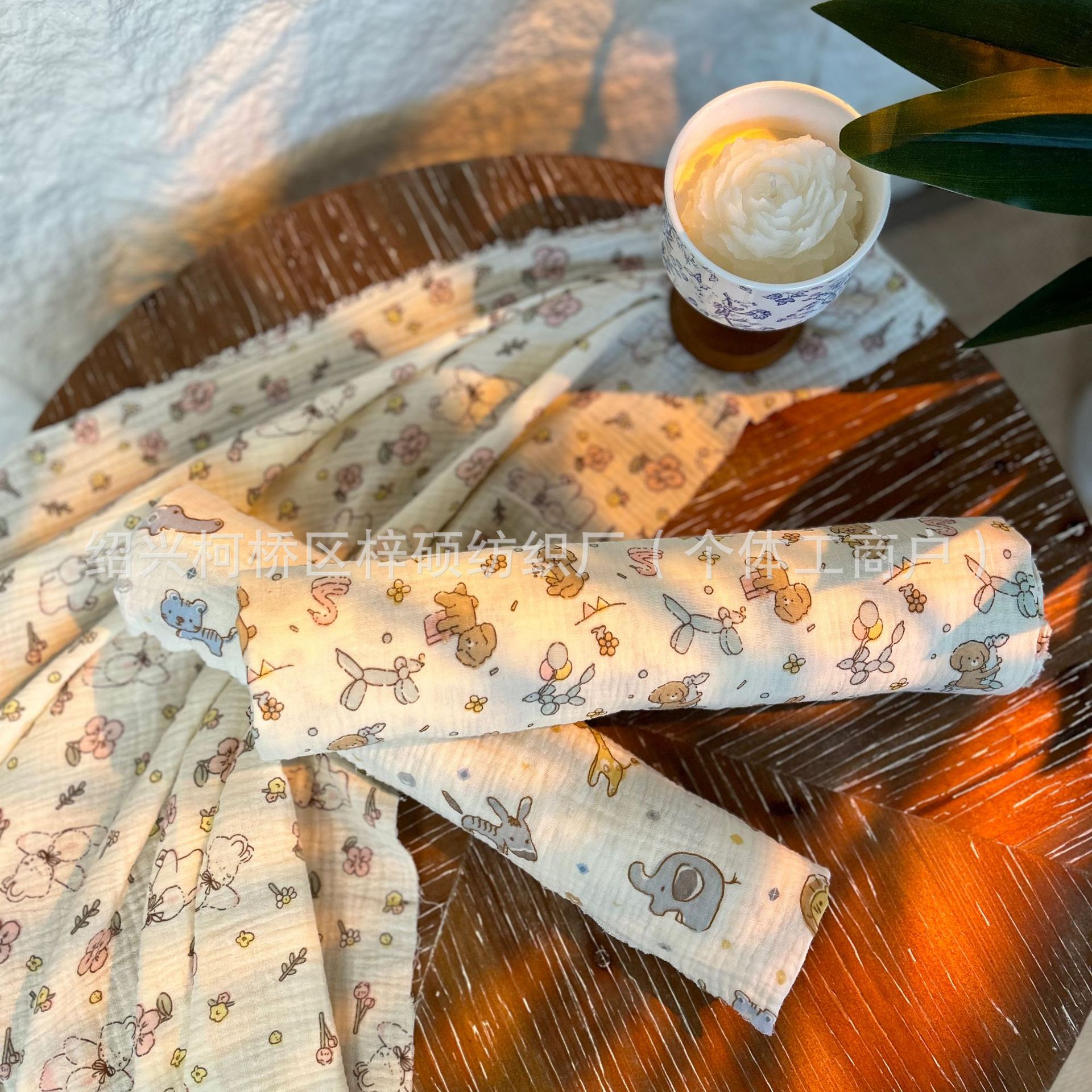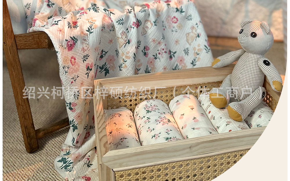 全棉薄款双层纱布绉布印花婴童服装口水巾家居睡衣面料家纺
