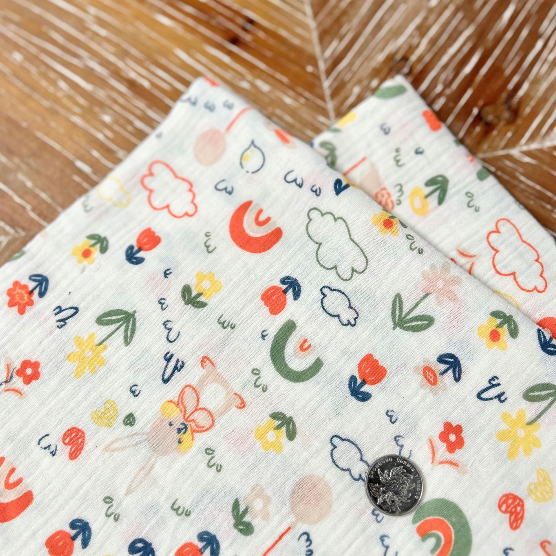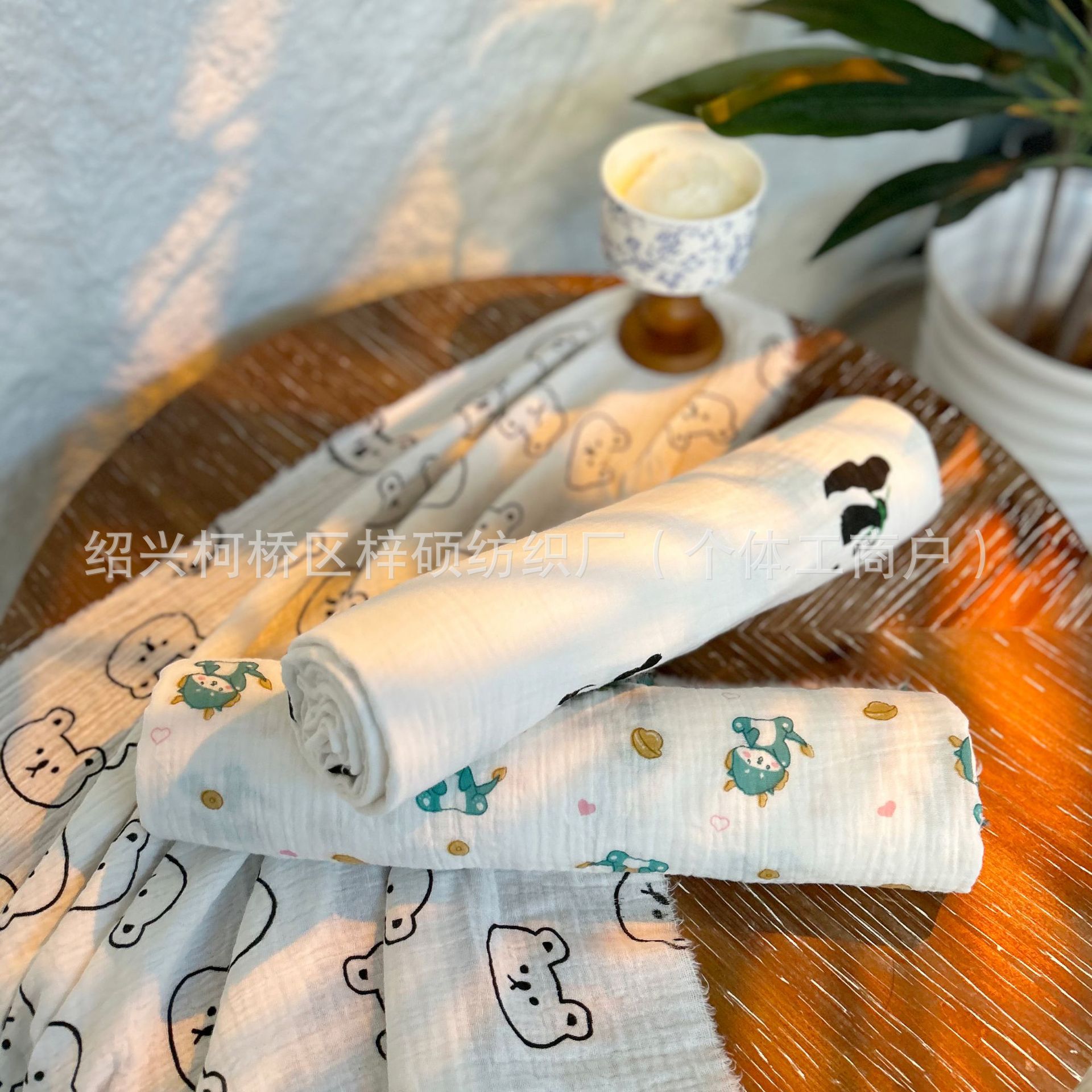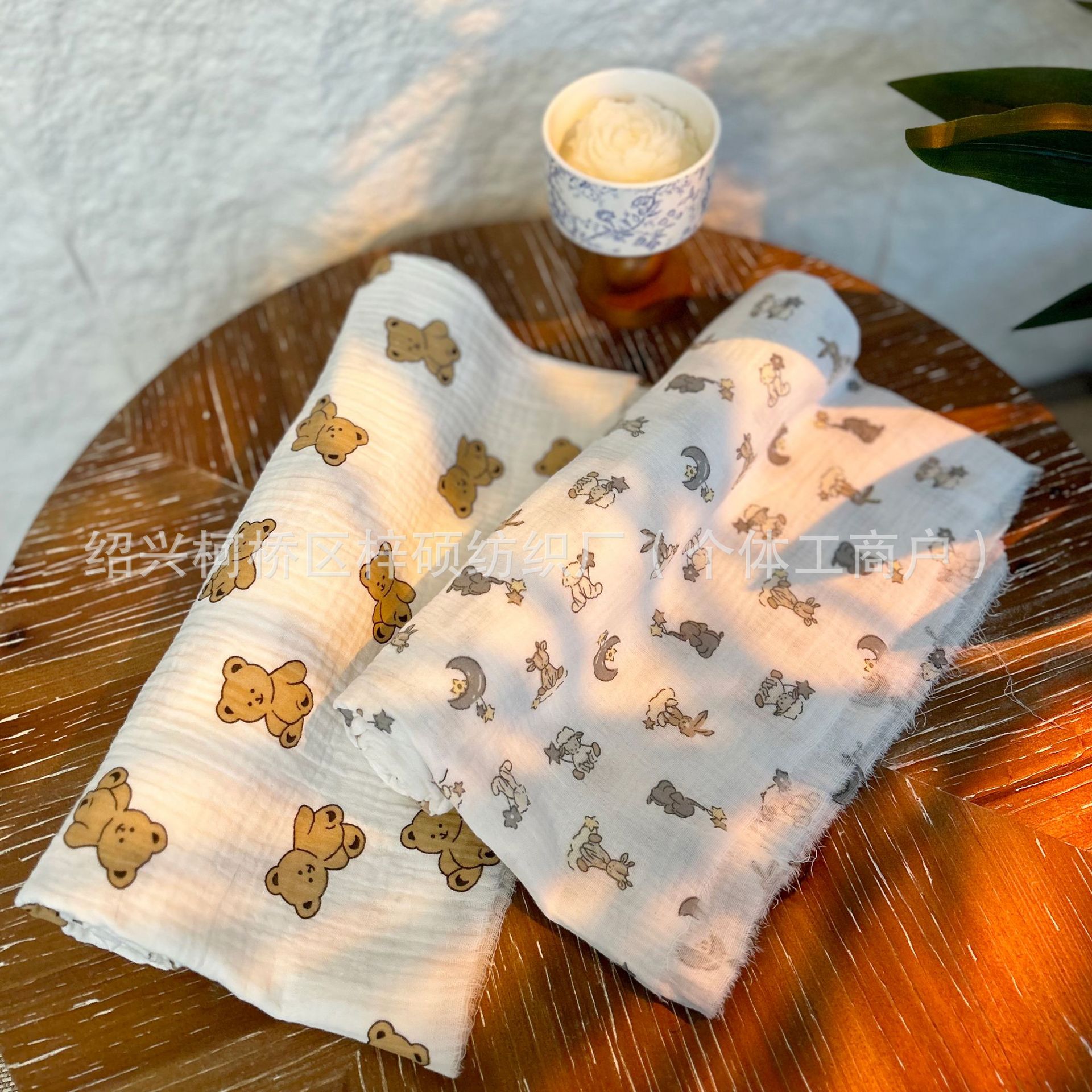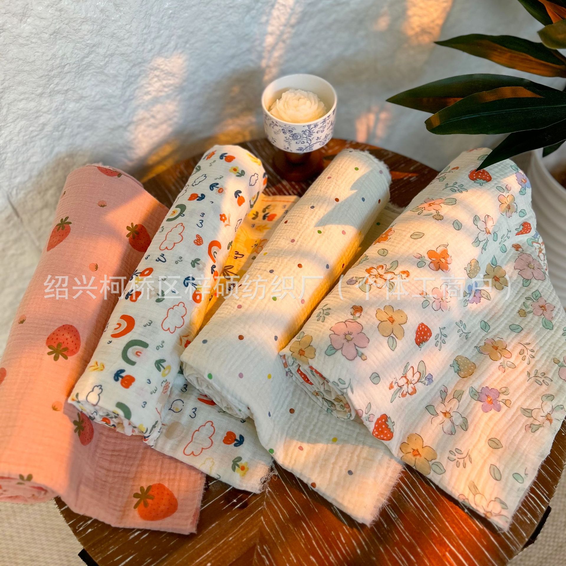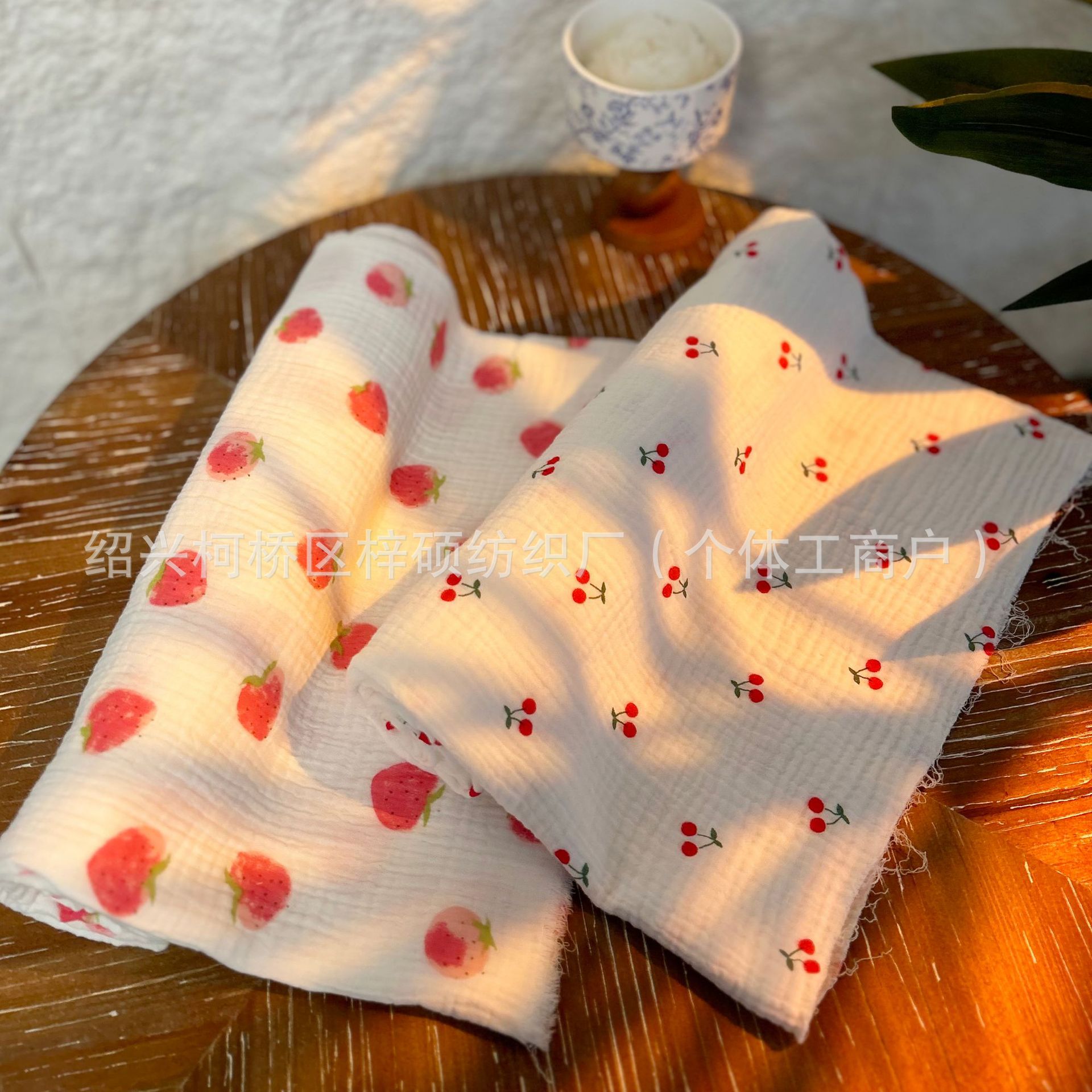 全棉薄款双层纱布绉布印花婴童服装口水巾家居睡衣面料家纺