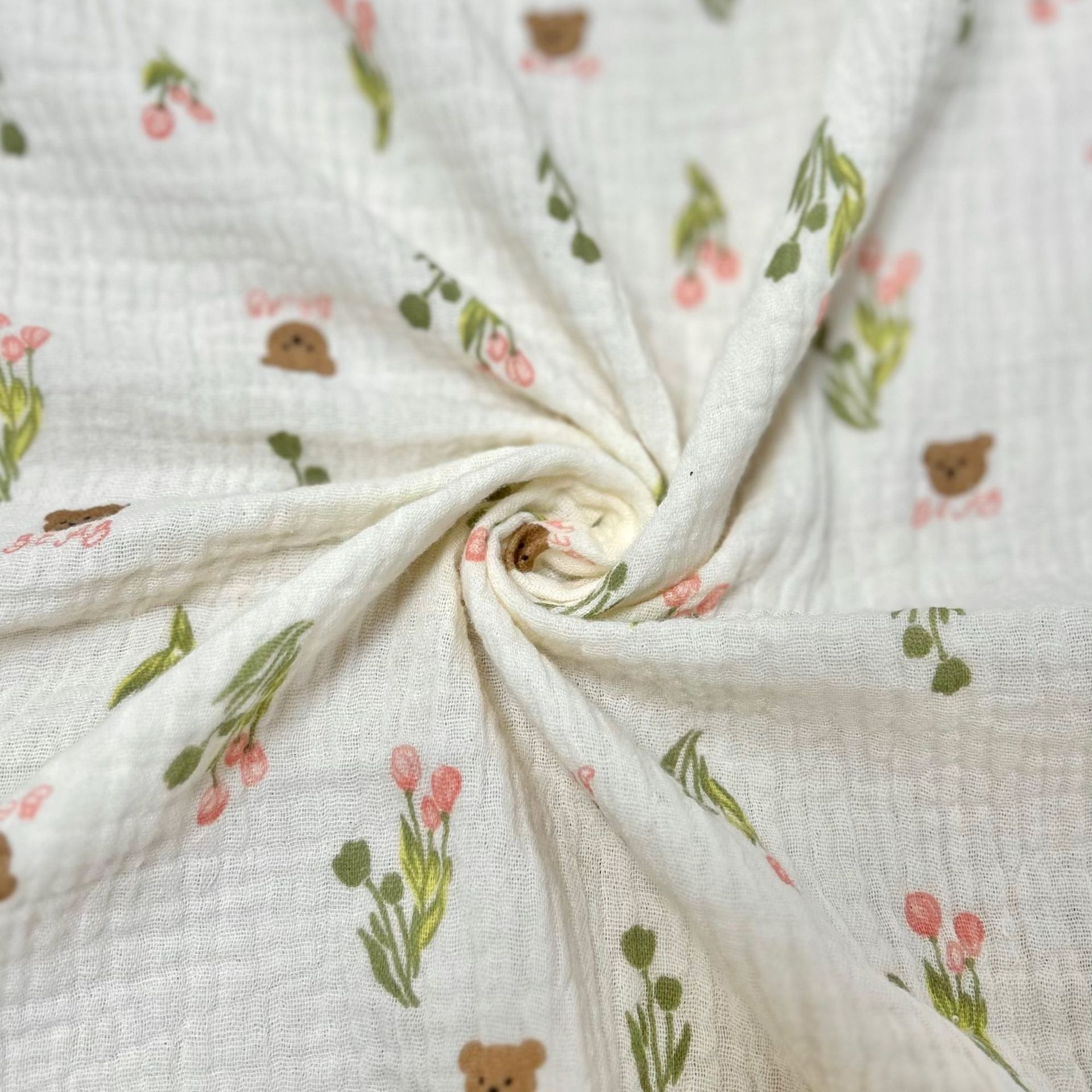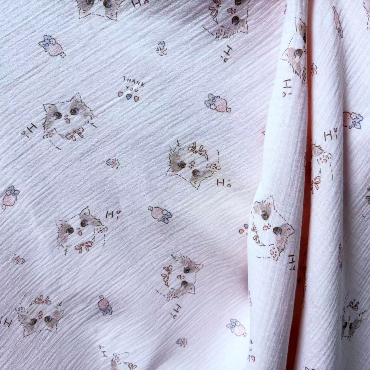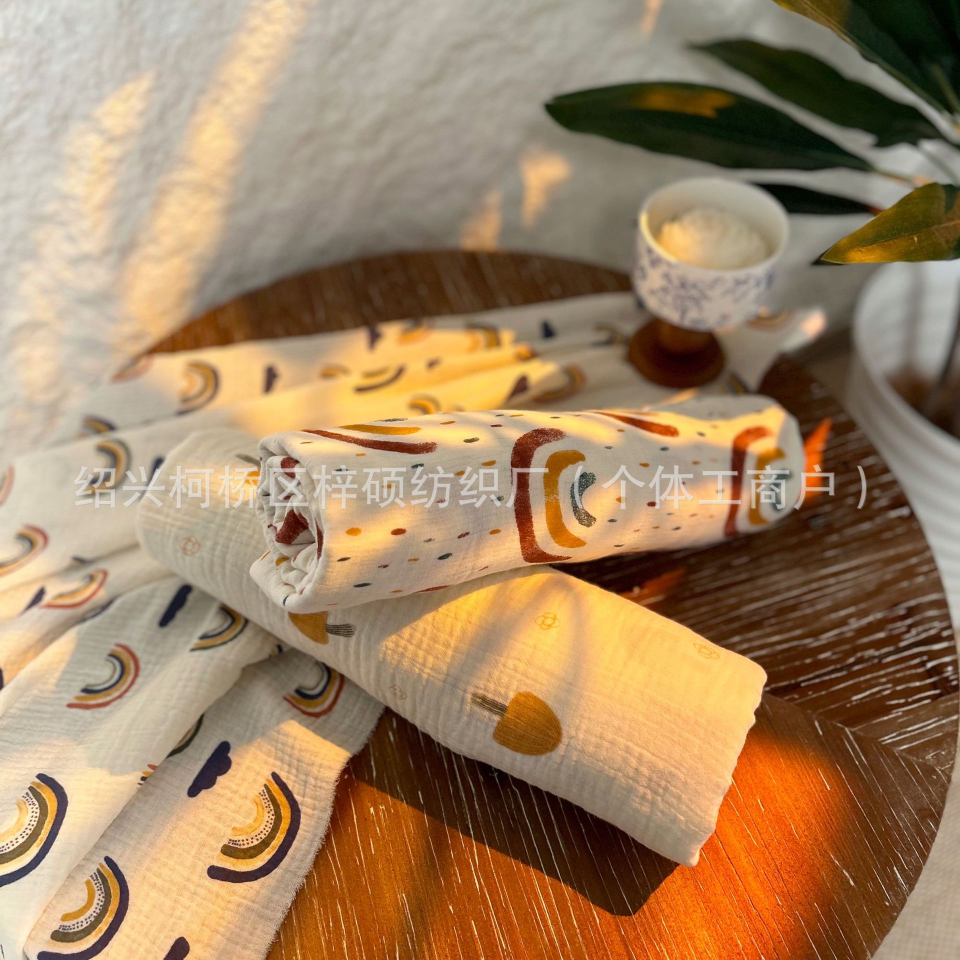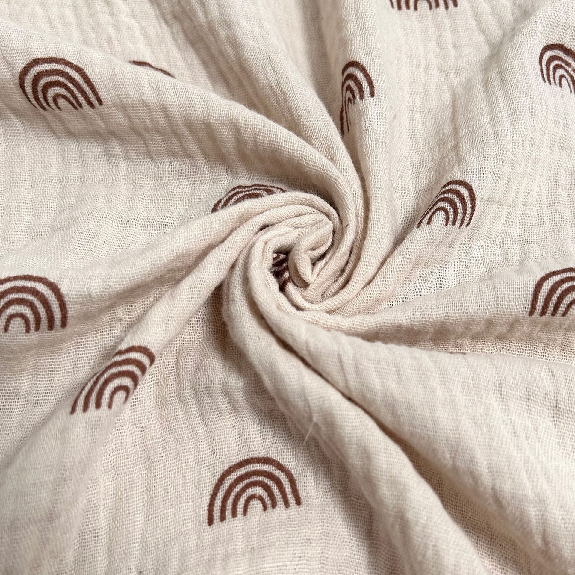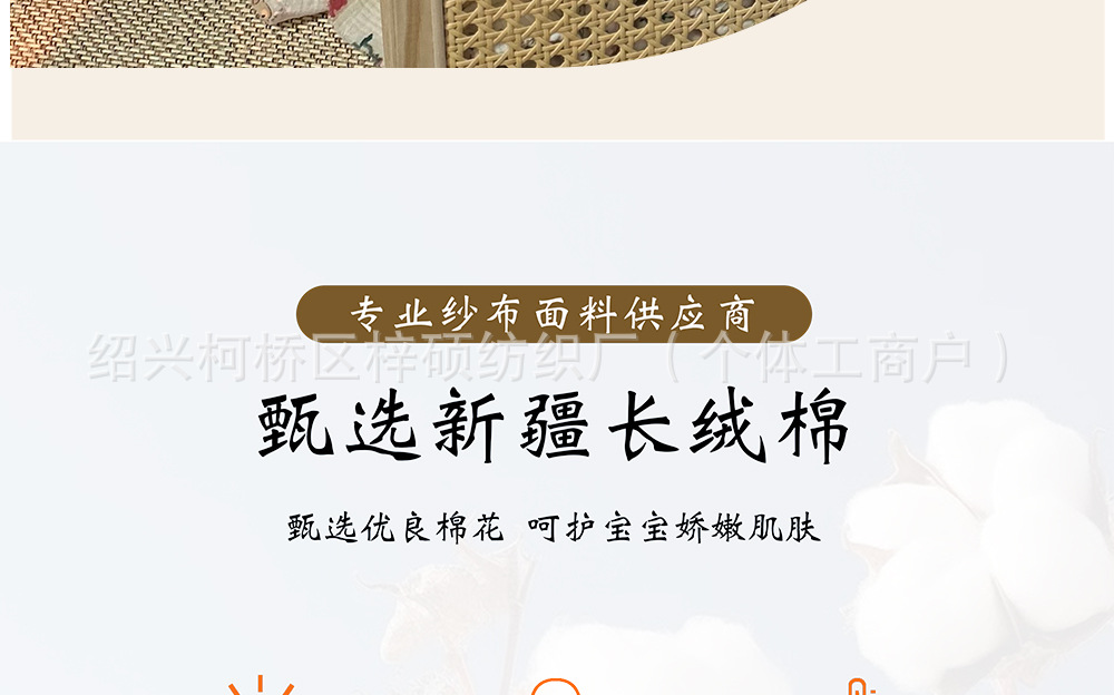 全棉薄款双层纱布绉布印花婴童服装口水巾家居睡衣面料家纺