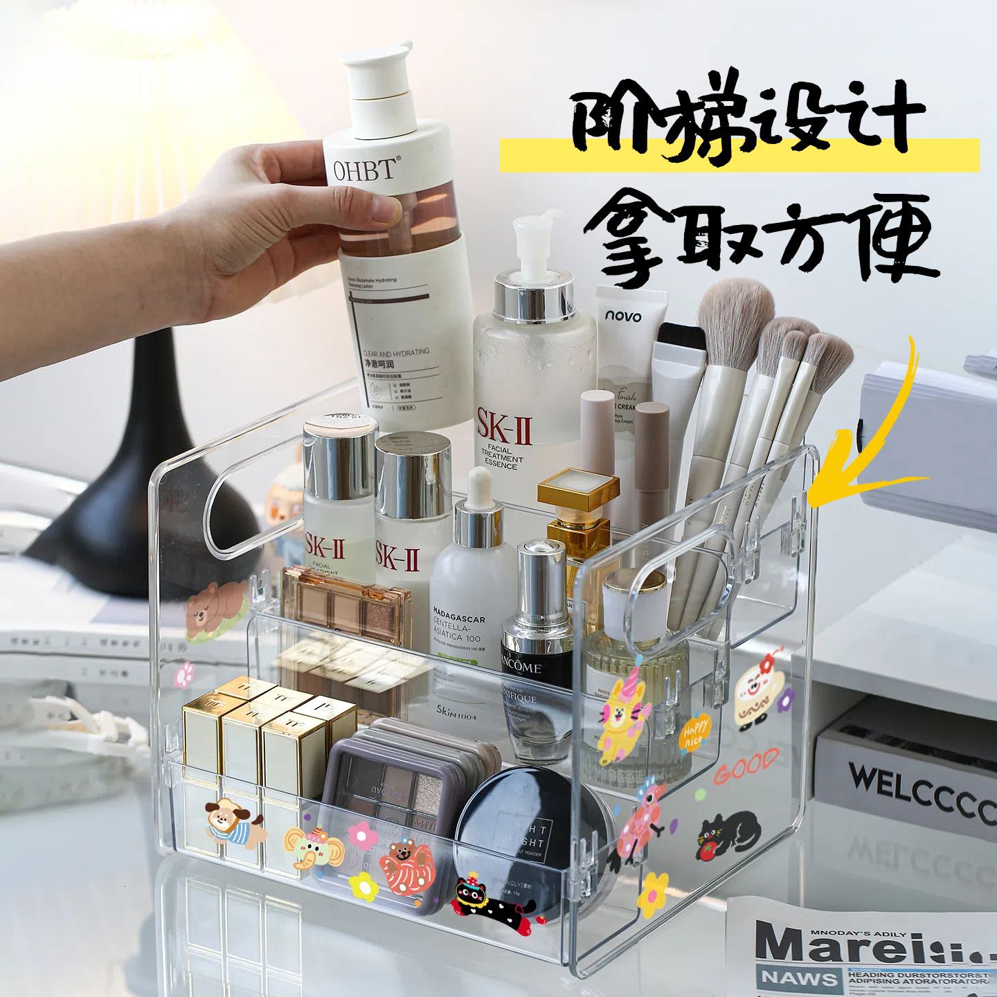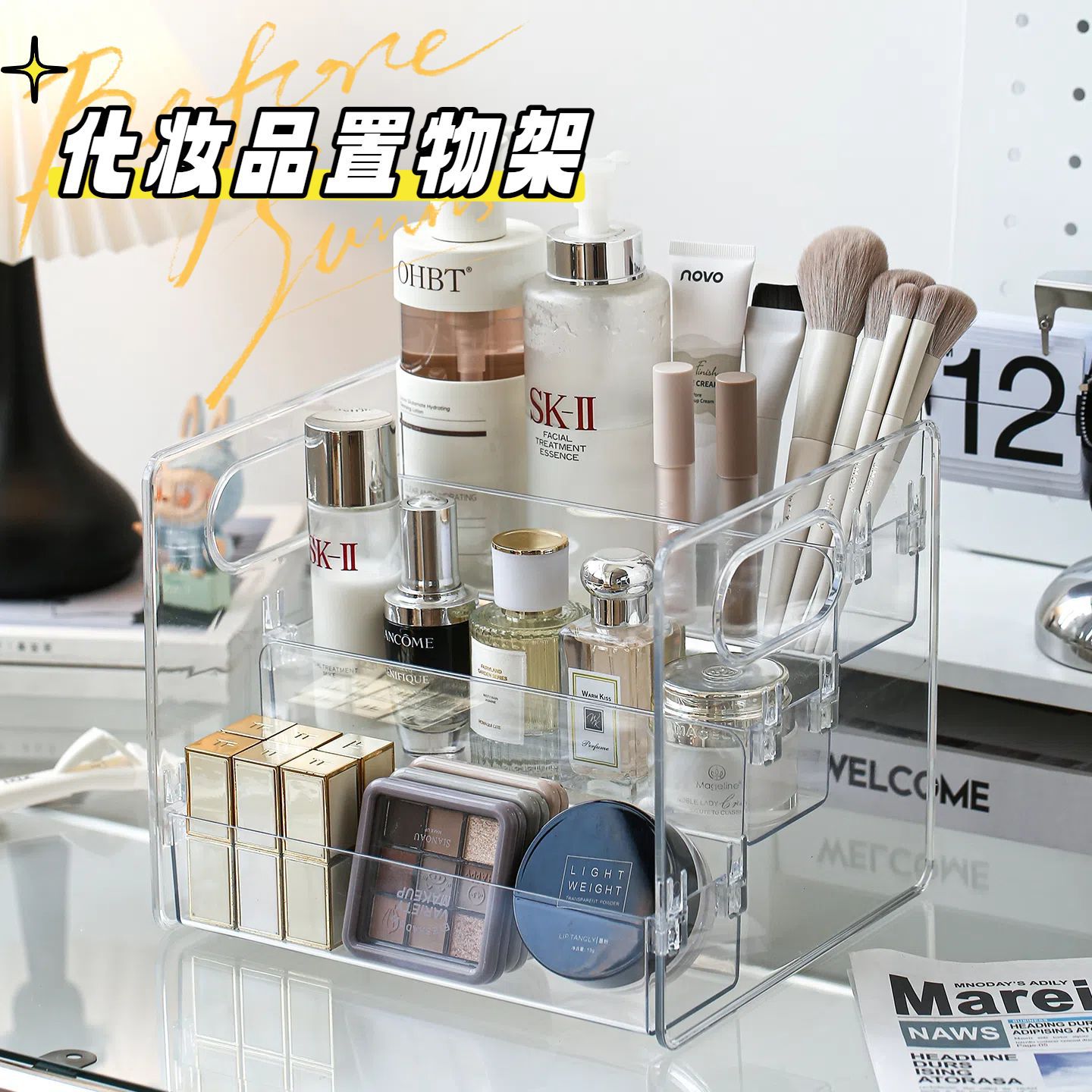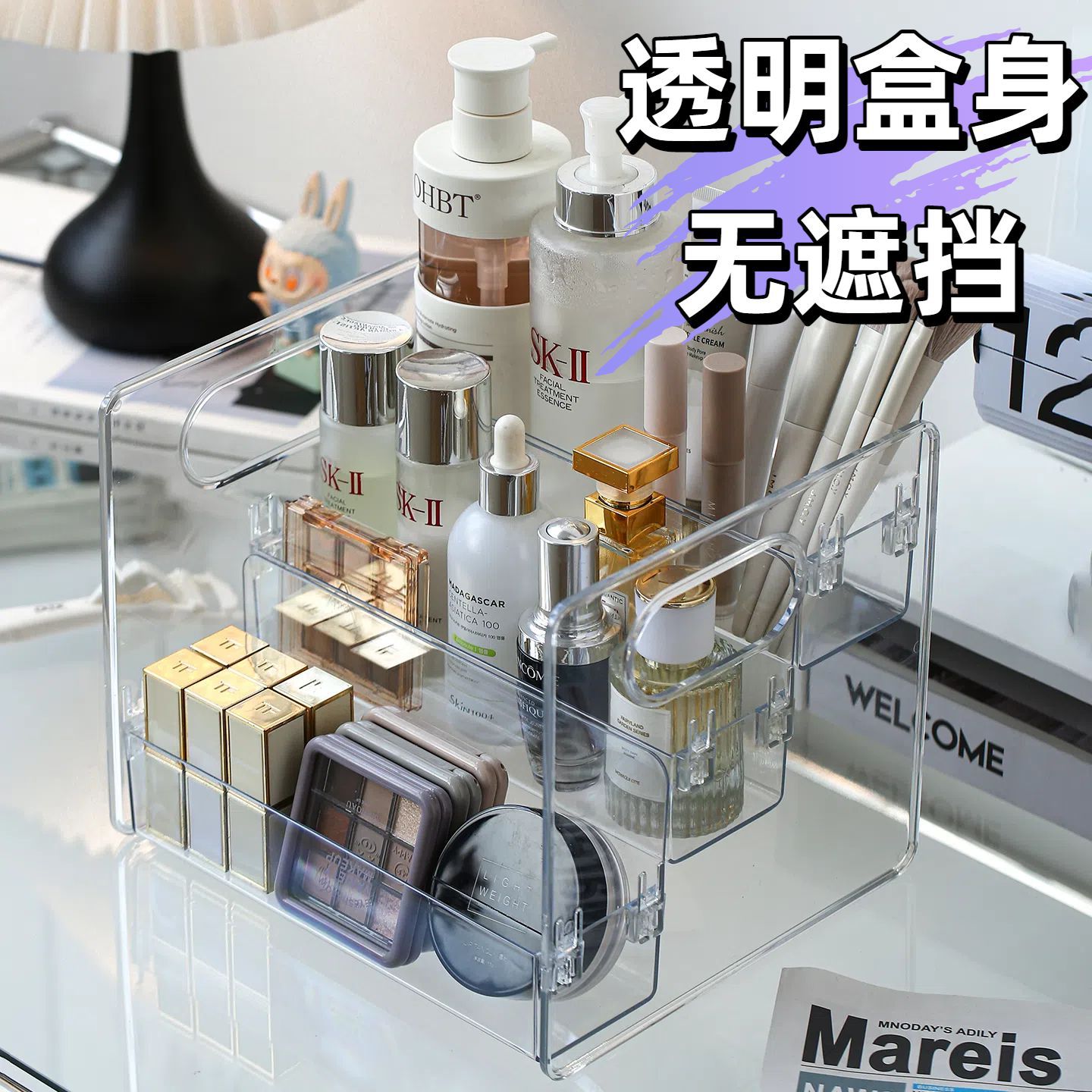 化妆品收纳盒亚克力梳妆台护肤品架子置物架桌面高级感透明口红盒