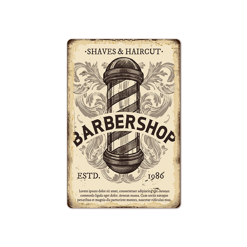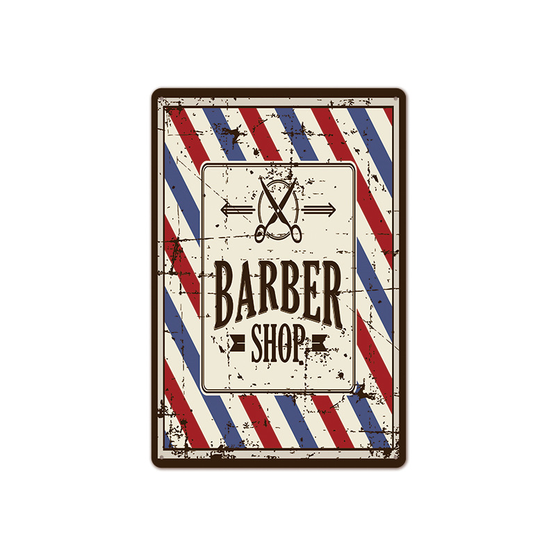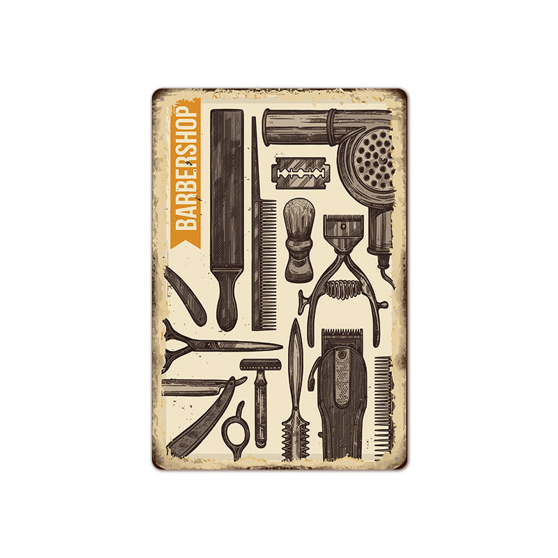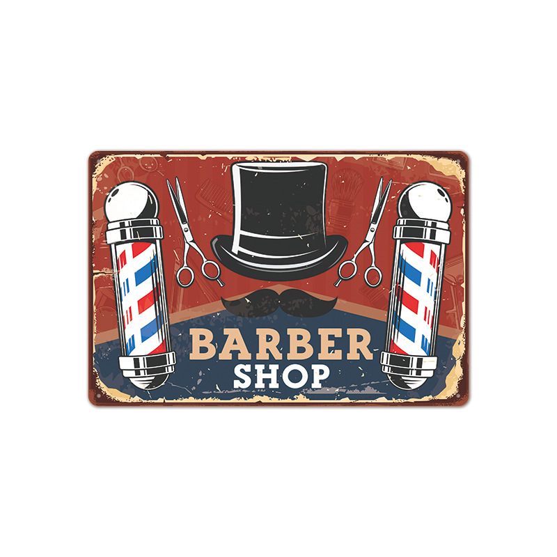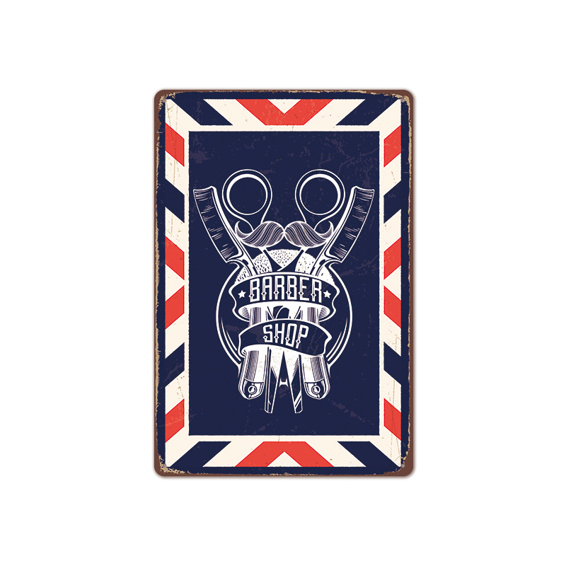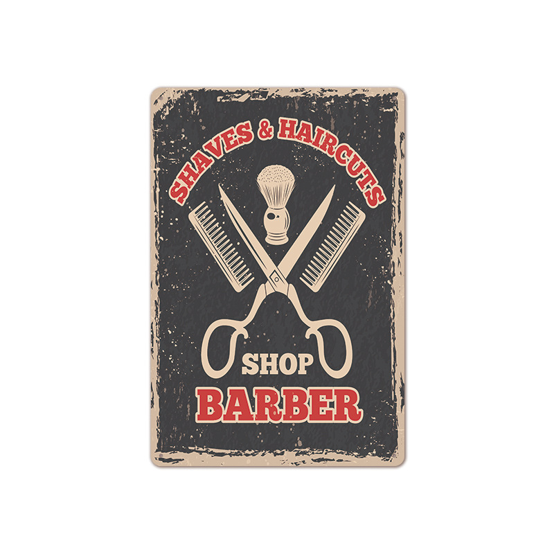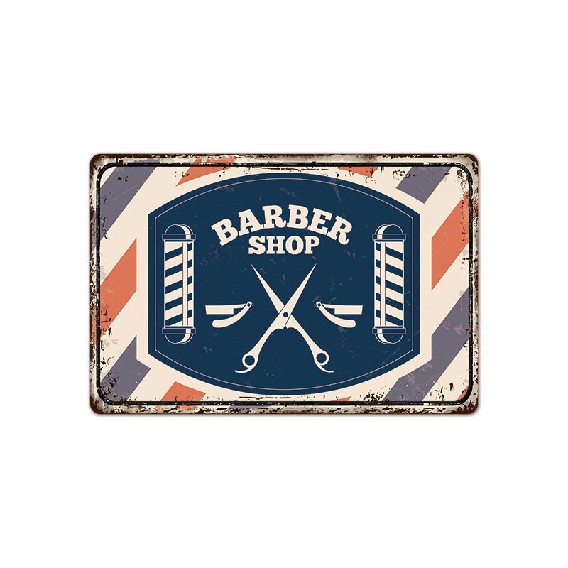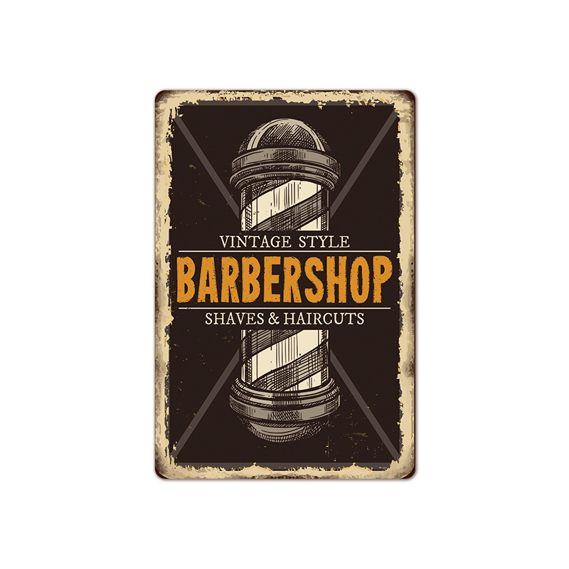 2024新款 barbershop海报复古铁皮画 理发店背景墙壁无框装饰挂画