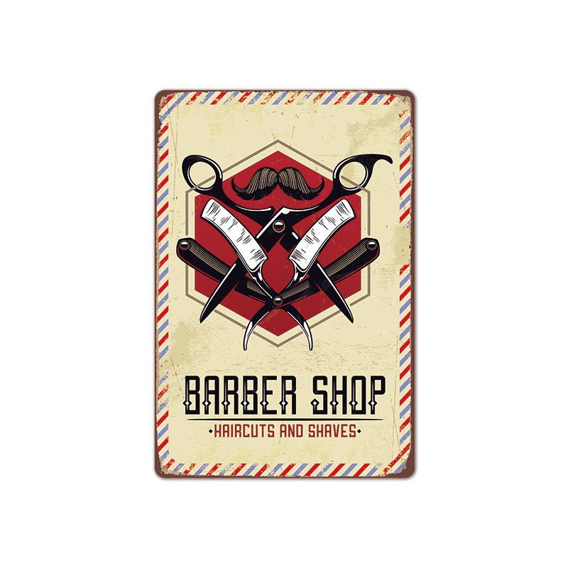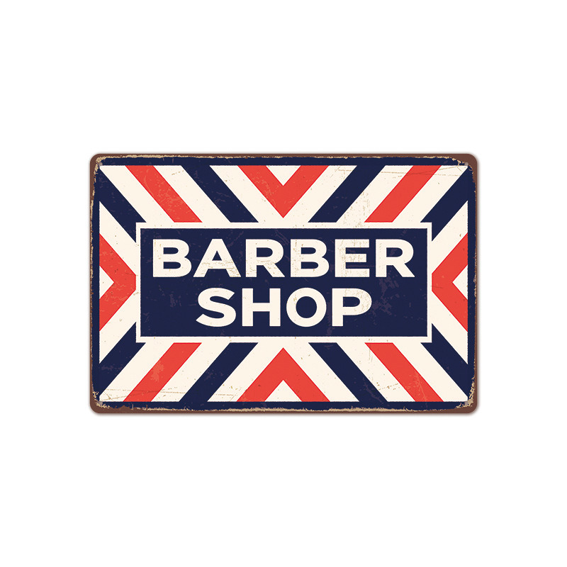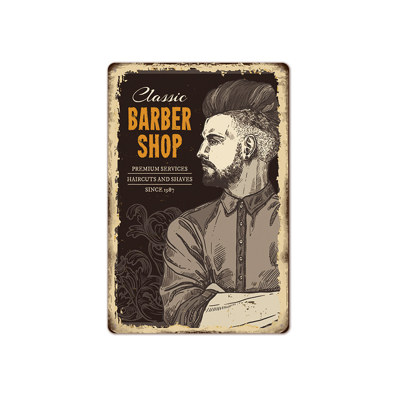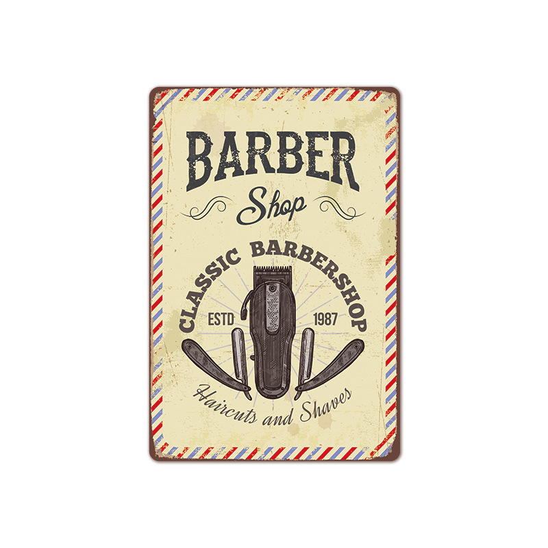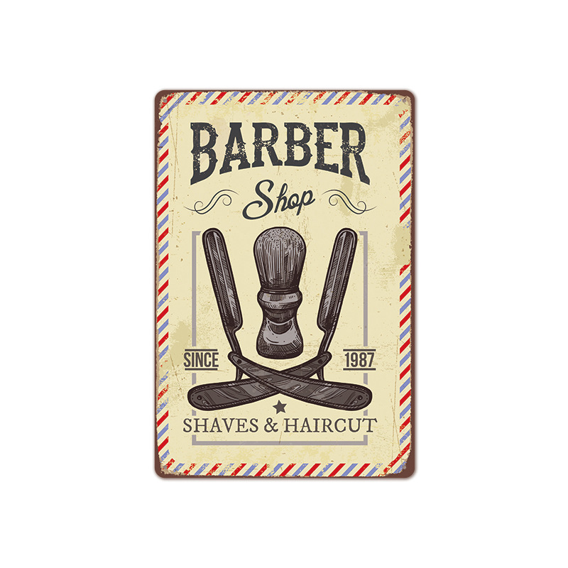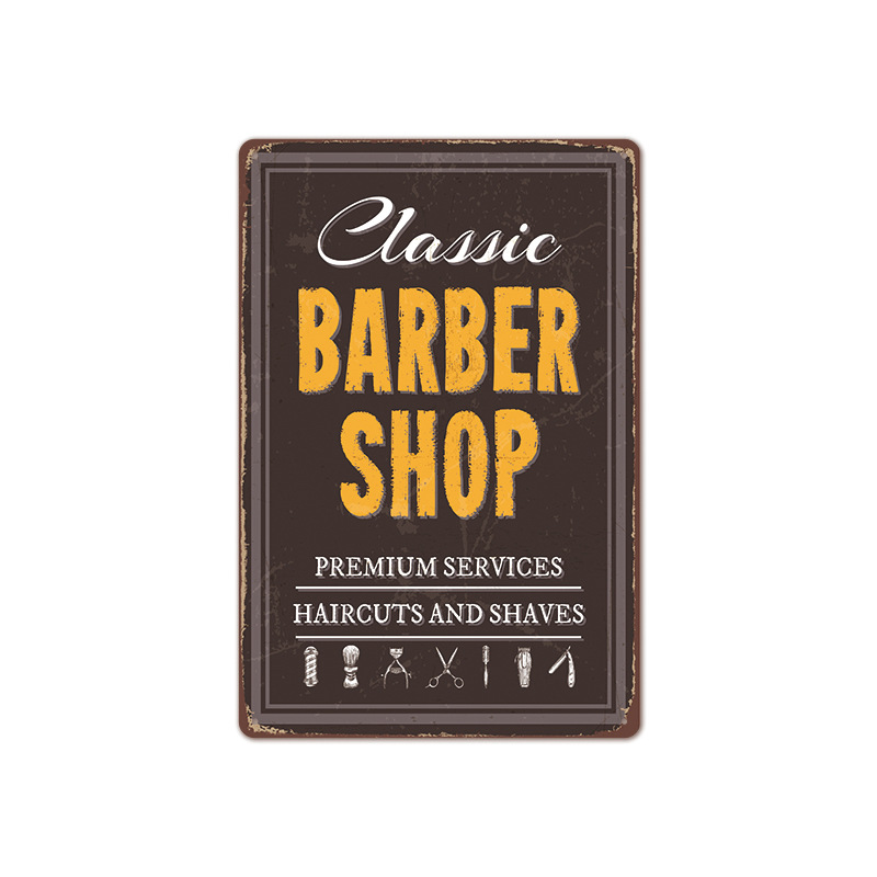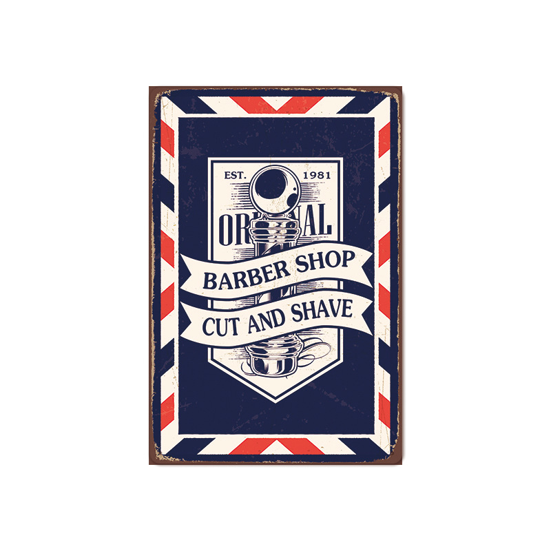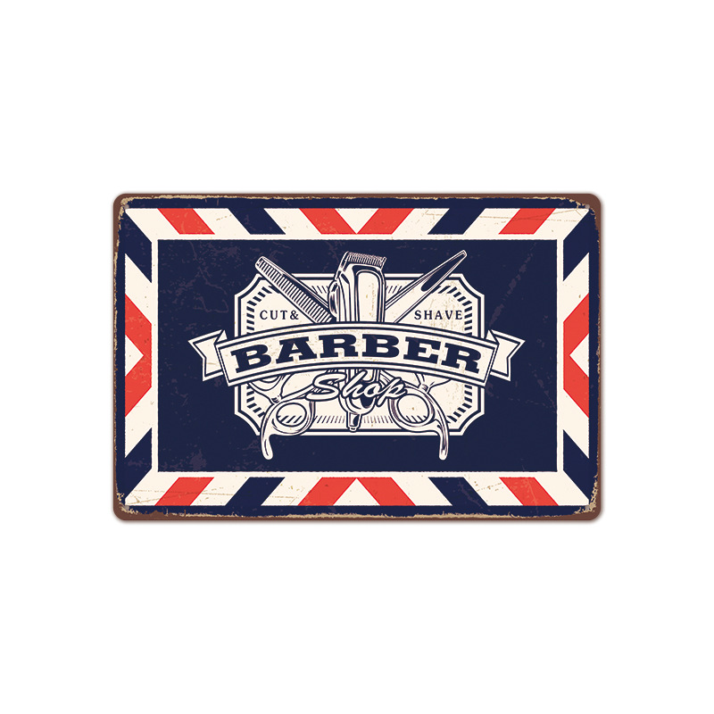 2024新款 barbershop海报复古铁皮画 理发店背景墙壁无框装饰挂画
