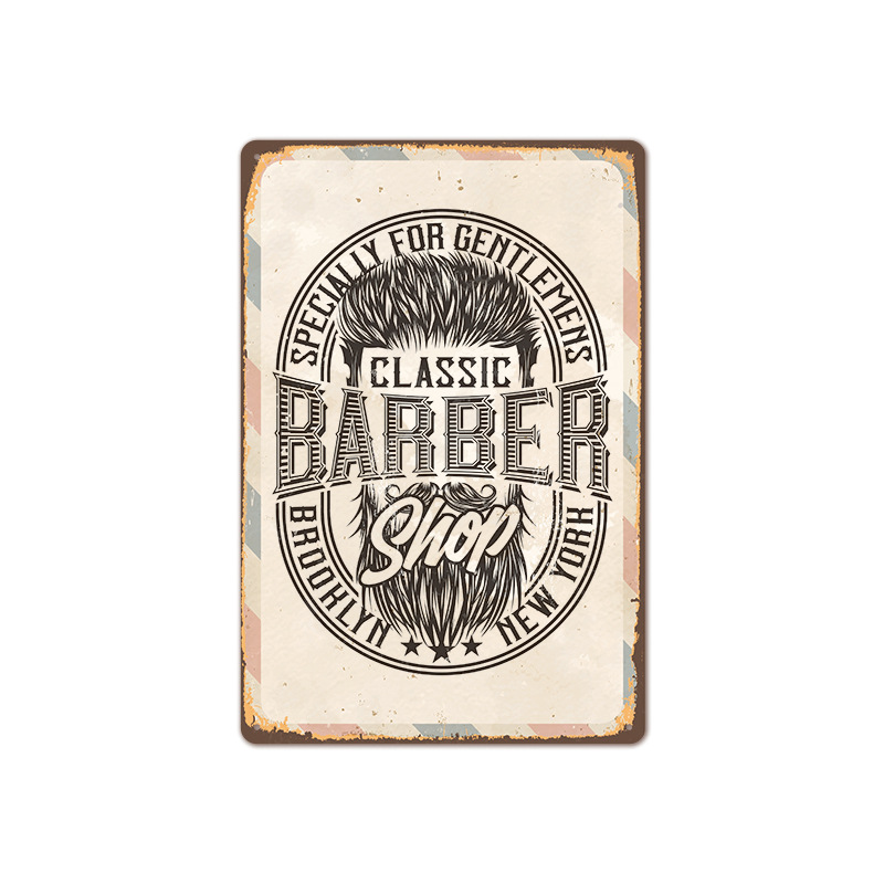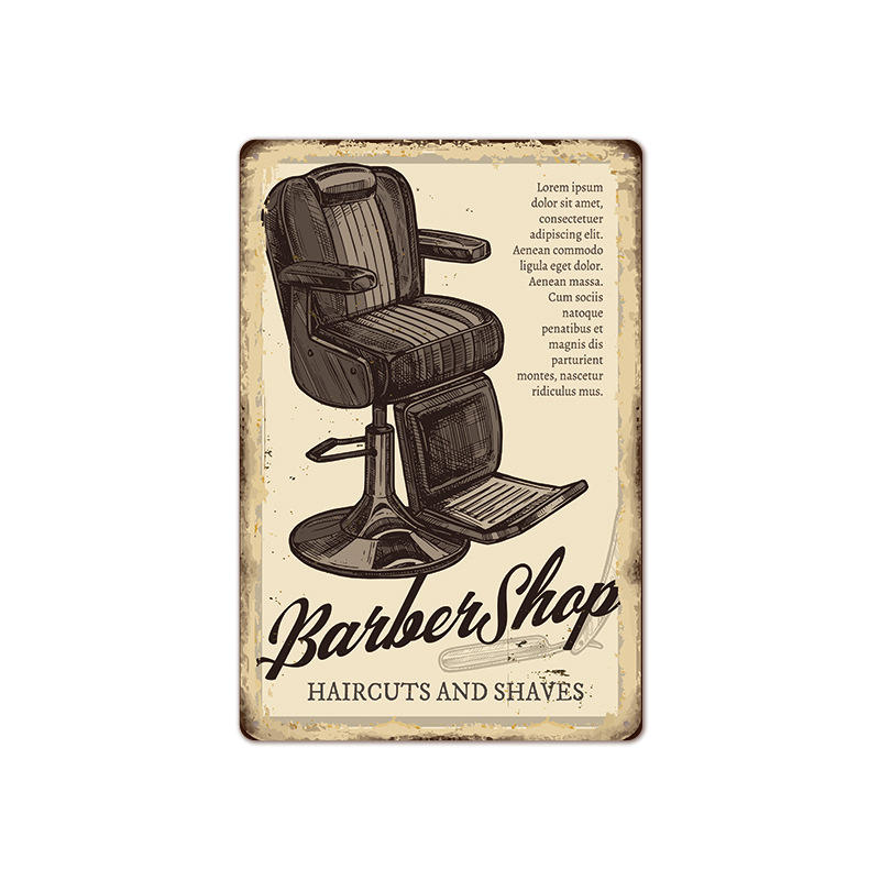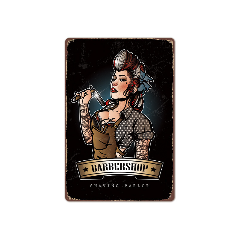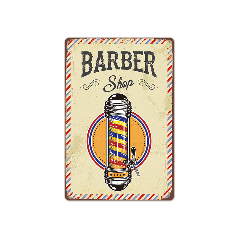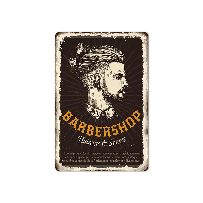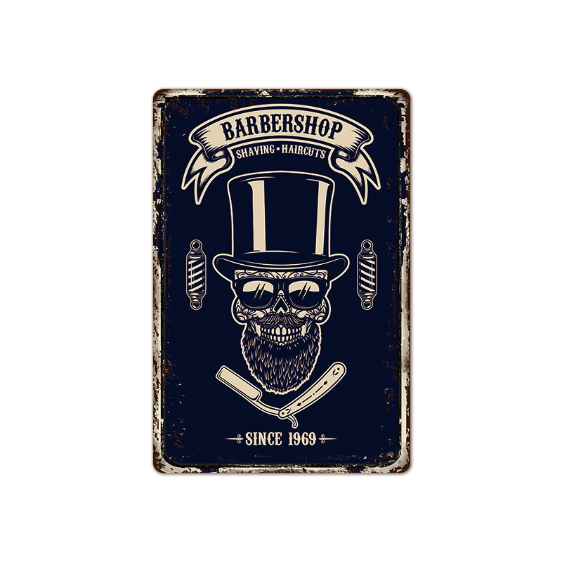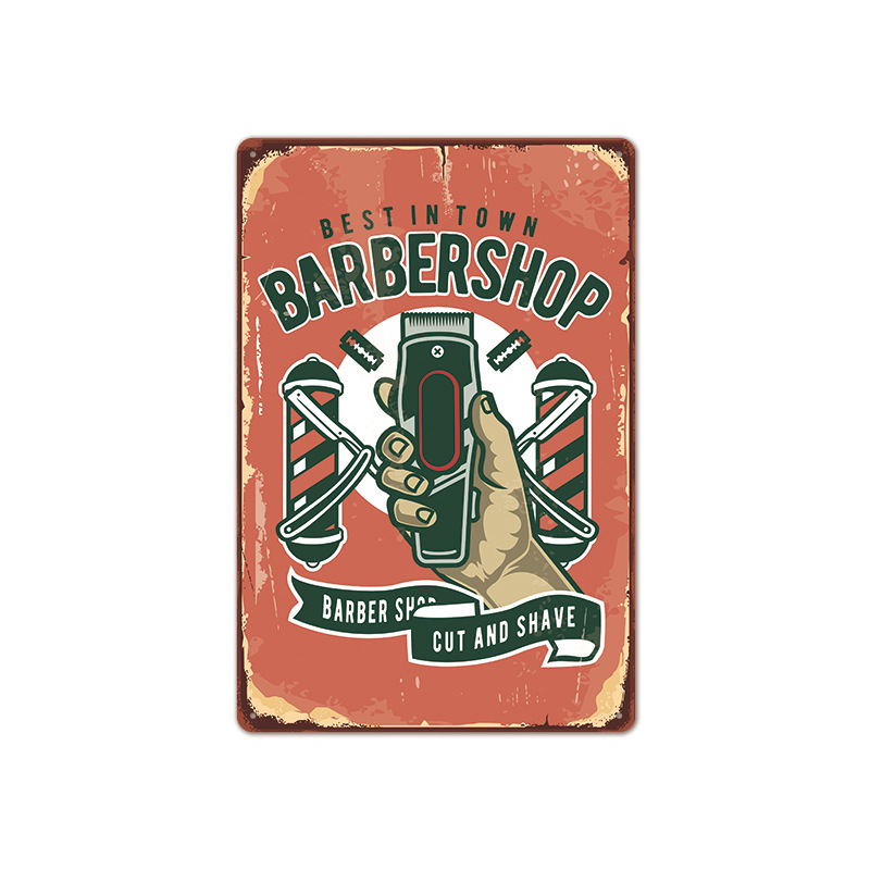 2024新款 barbershop海报复古铁皮画 理发店背景墙壁无框装饰挂画