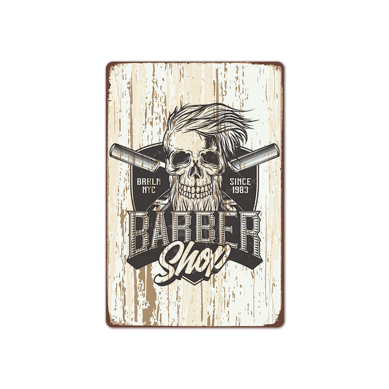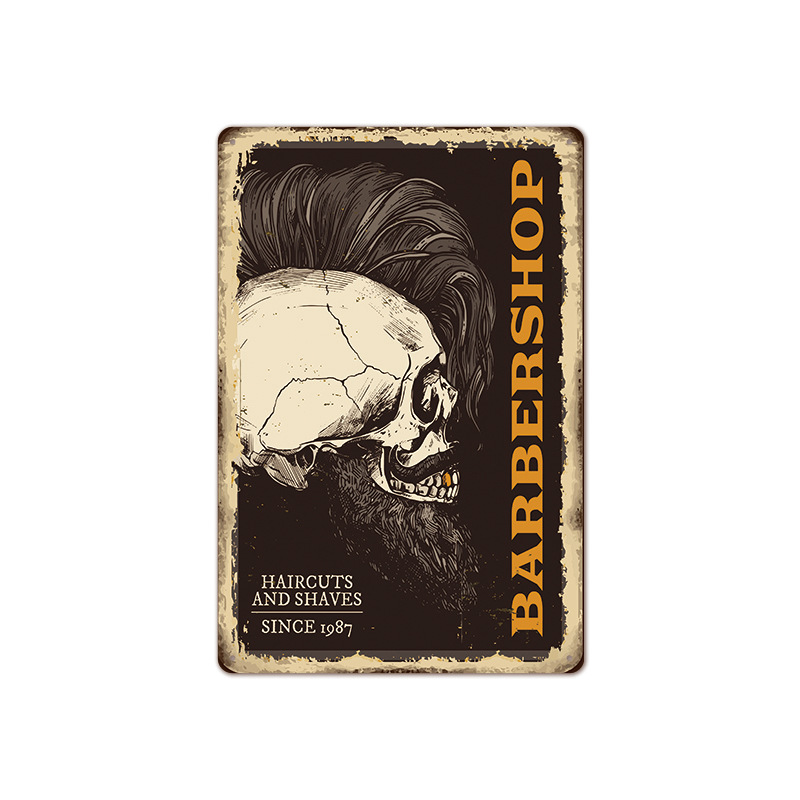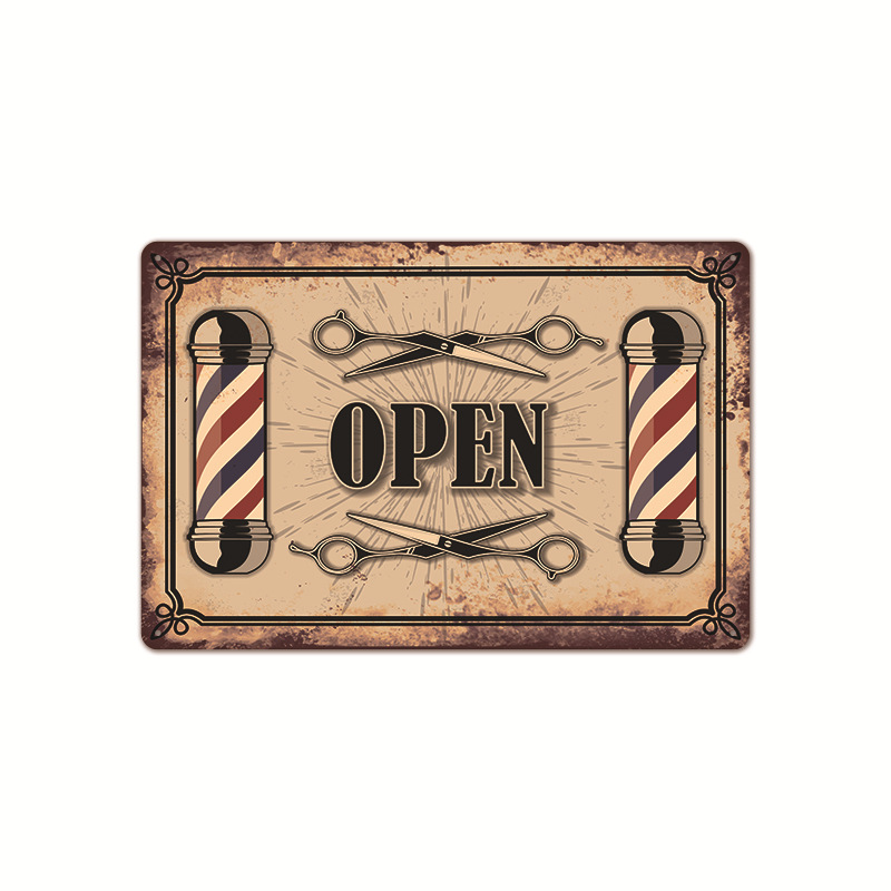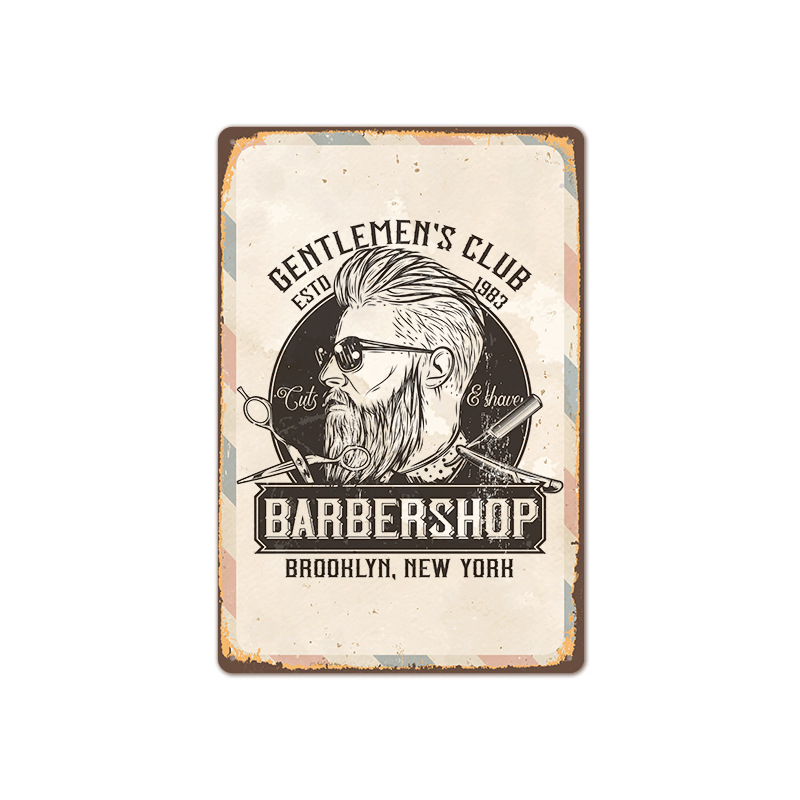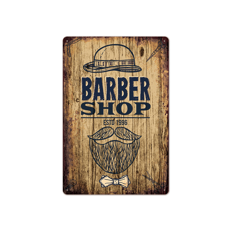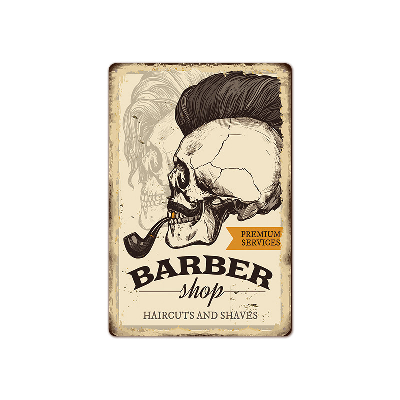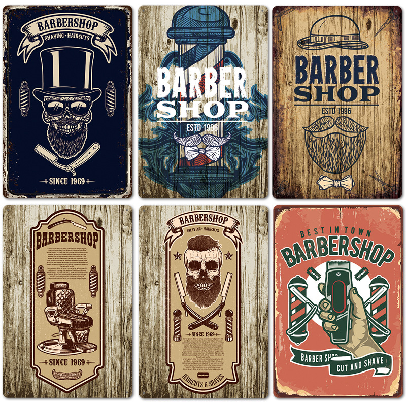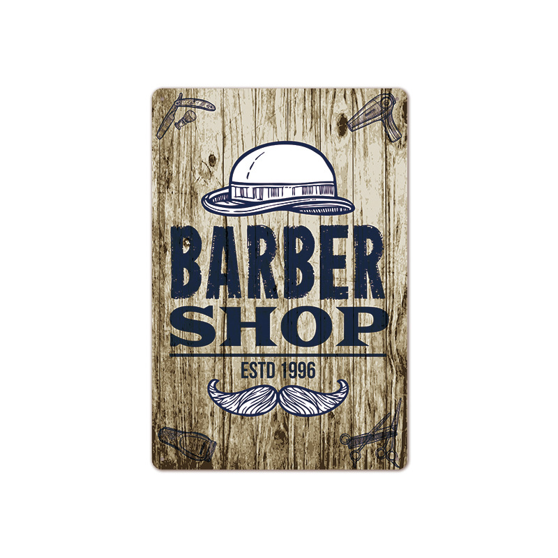 2024新款 barbershop海报复古铁皮画 理发店背景墙壁无框装饰挂画