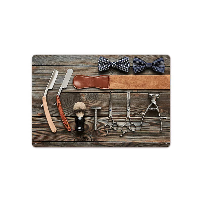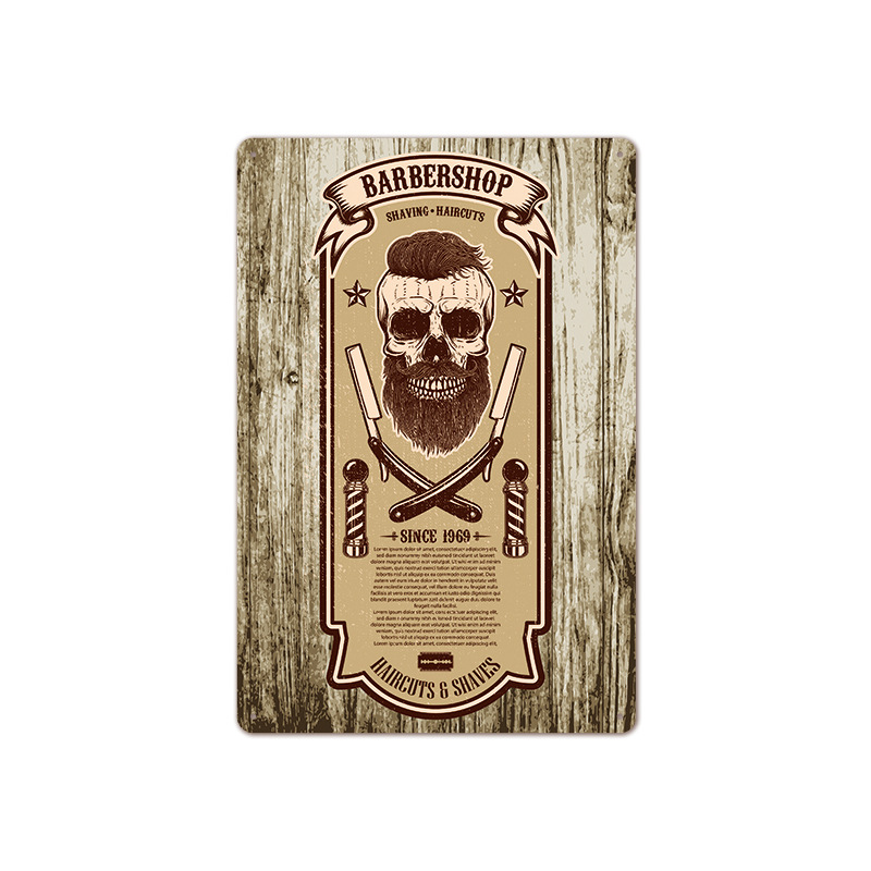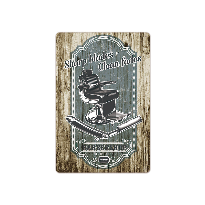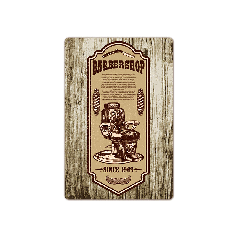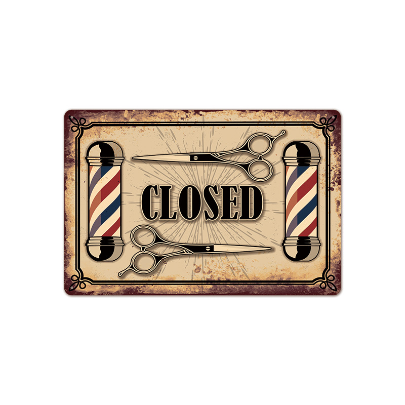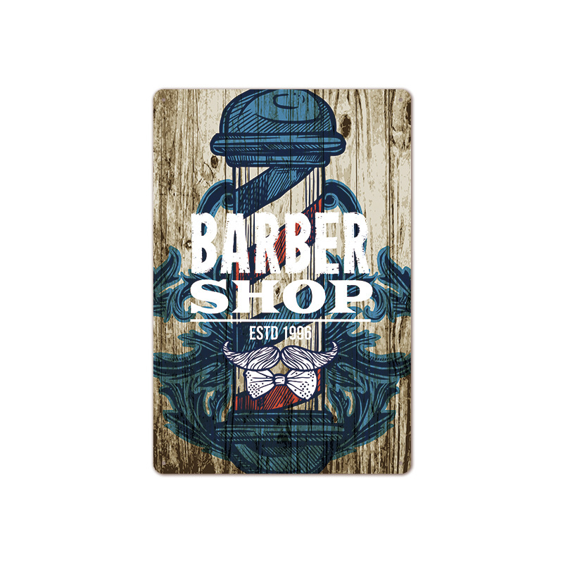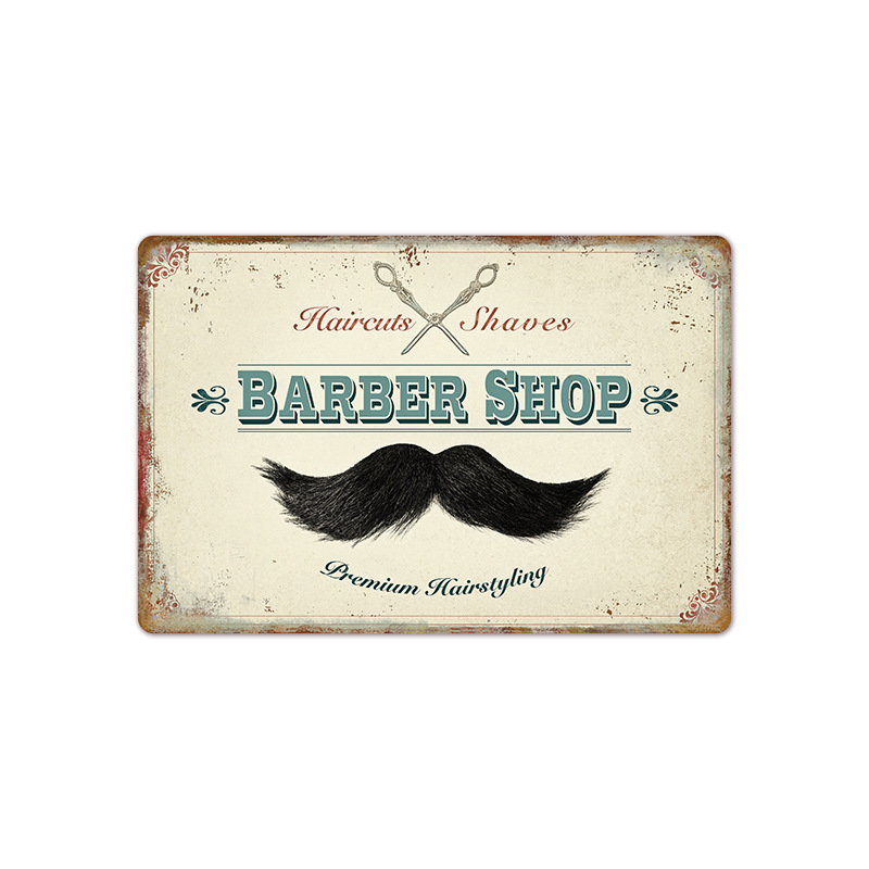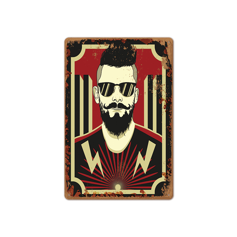 2024新款 barbershop海报复古铁皮画 理发店背景墙壁无框装饰挂画