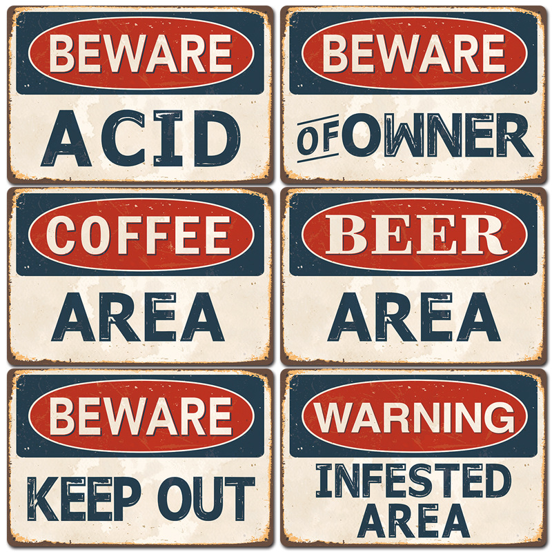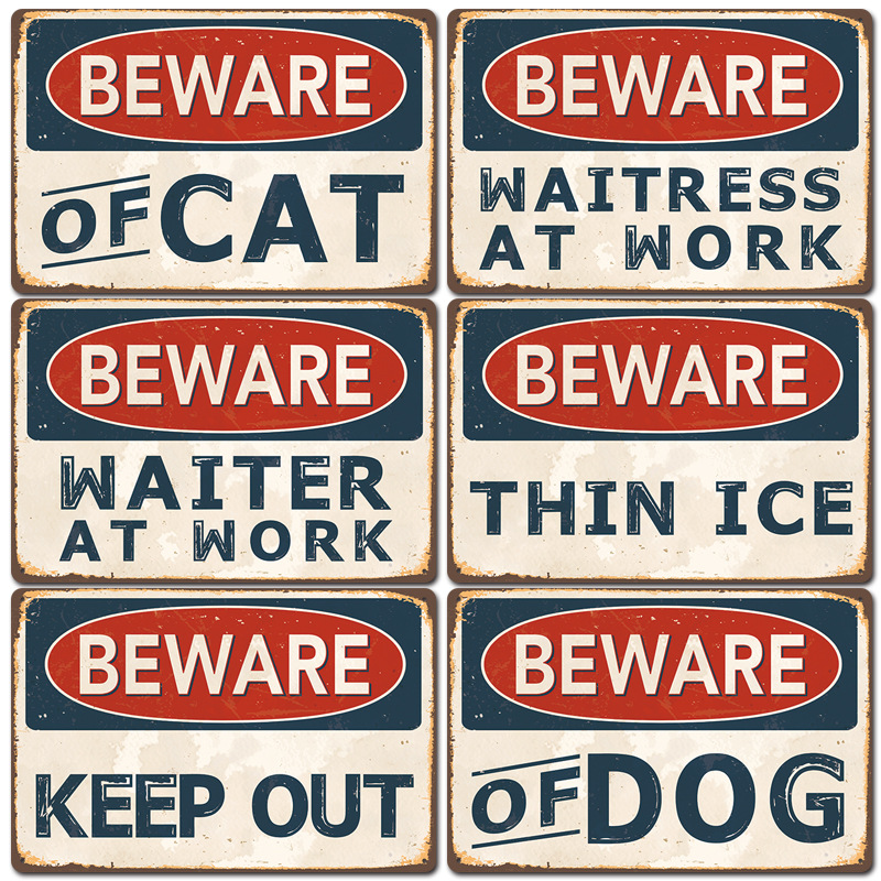 2024新款 beware复古铁皮画 公共警示牌室外警告标志无框装饰挂画