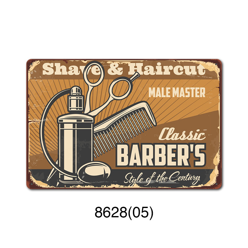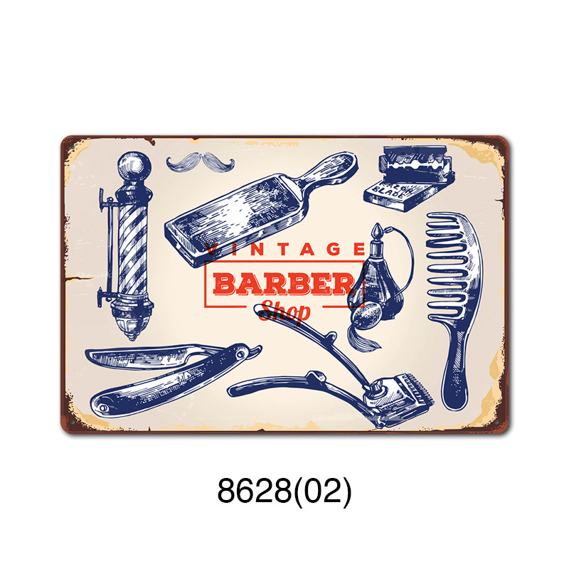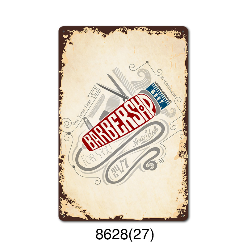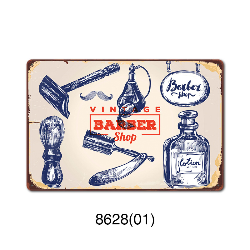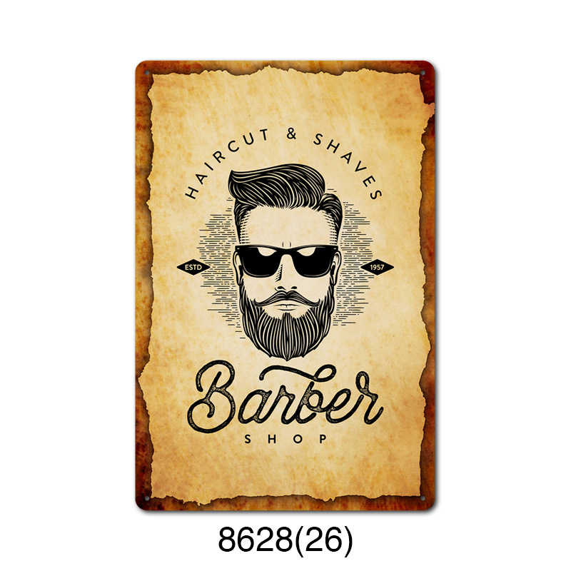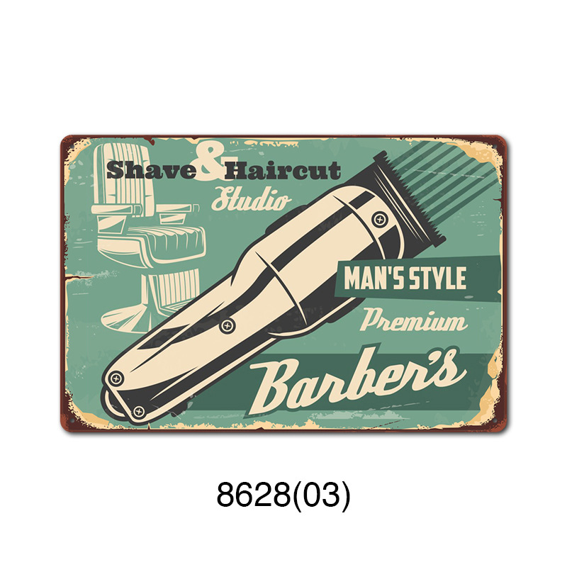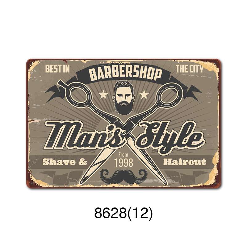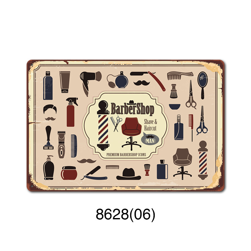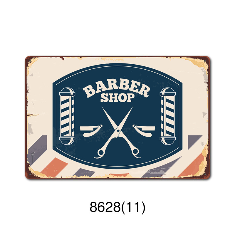 厂家直销 新款barbershop复古铁皮画 理发店背景墙壁无框装饰挂画