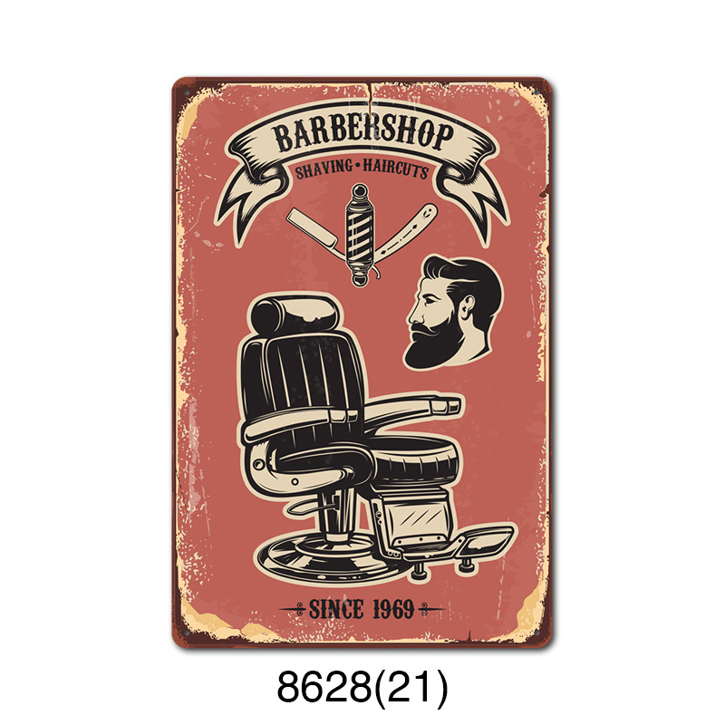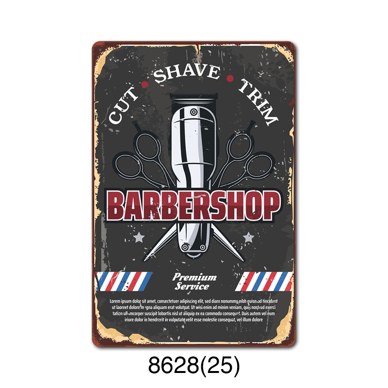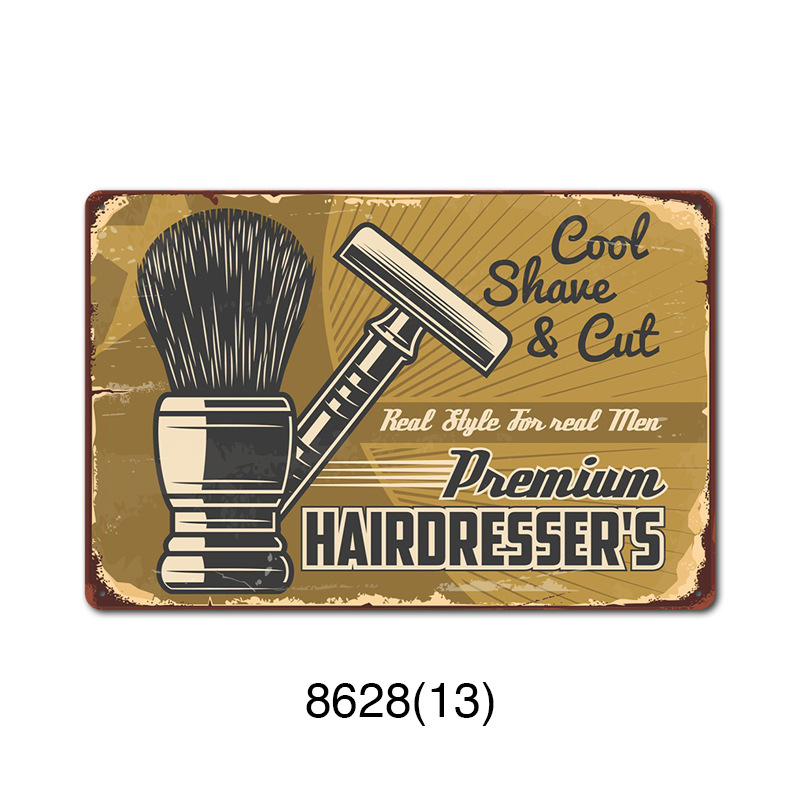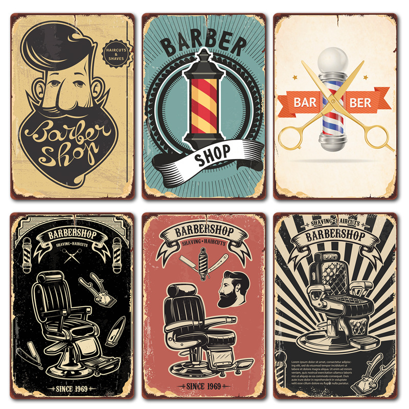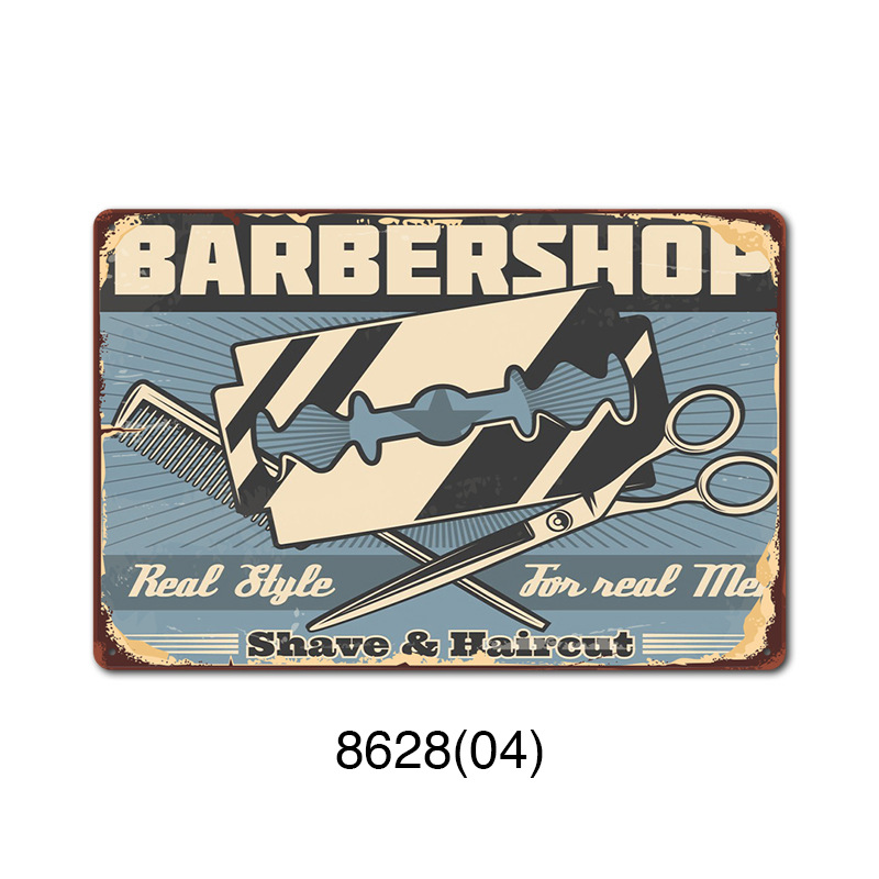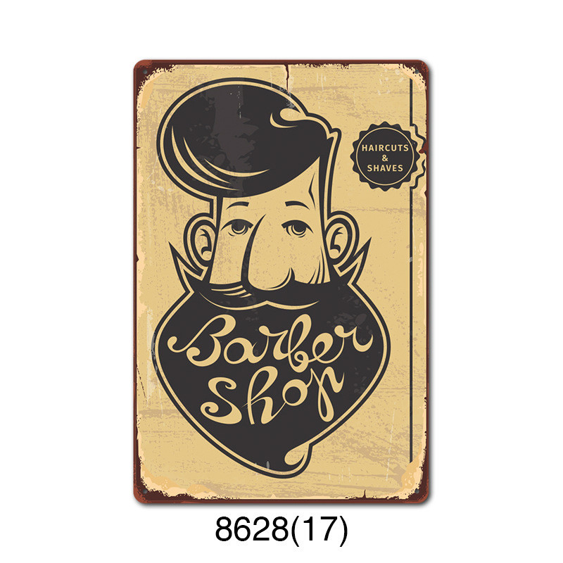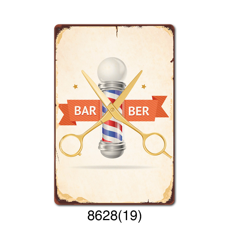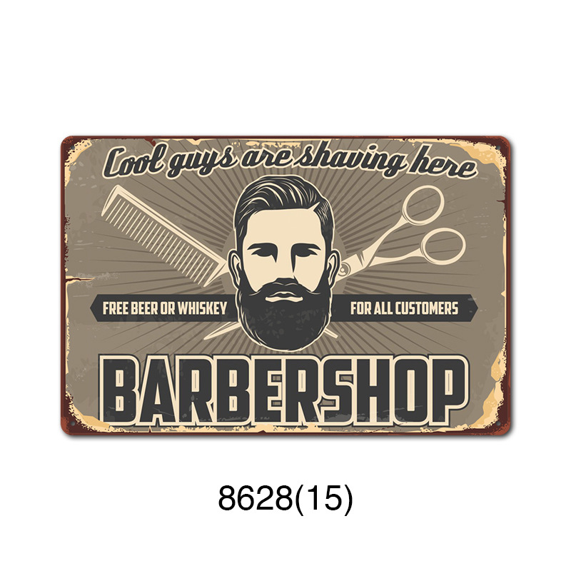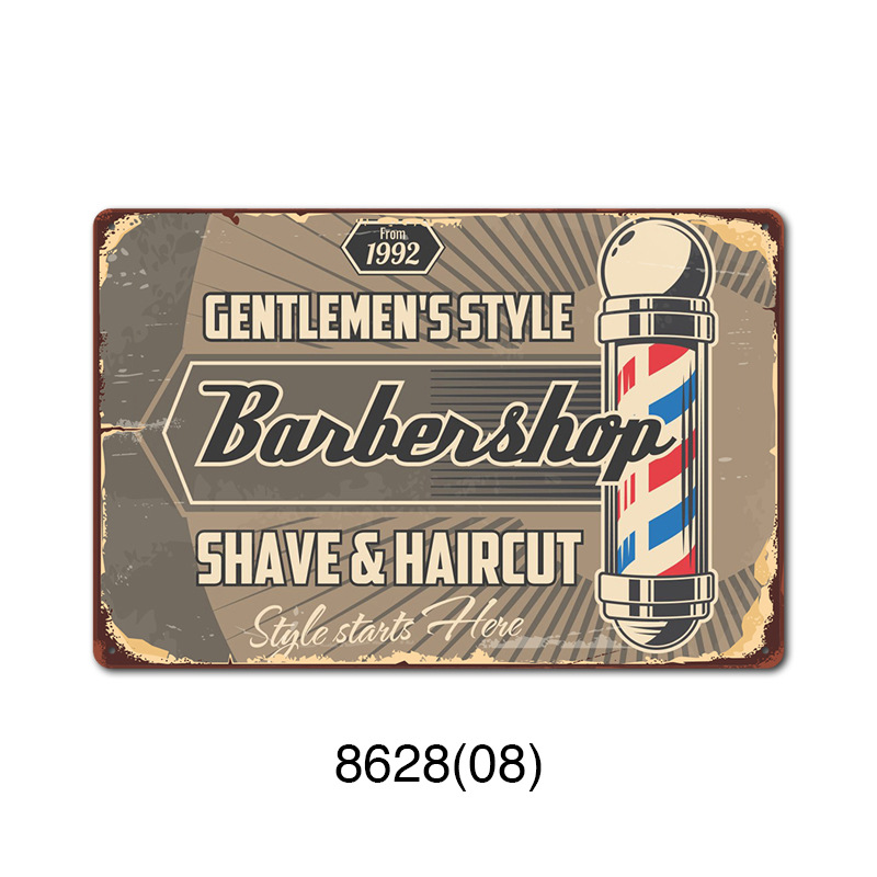 厂家直销 新款barbershop复古铁皮画 理发店背景墙壁无框装饰挂画