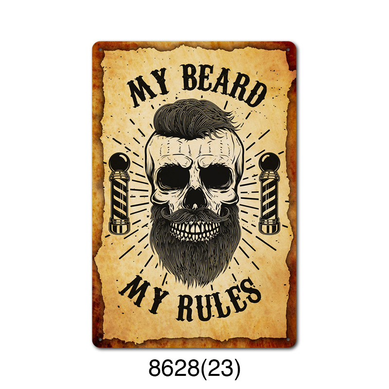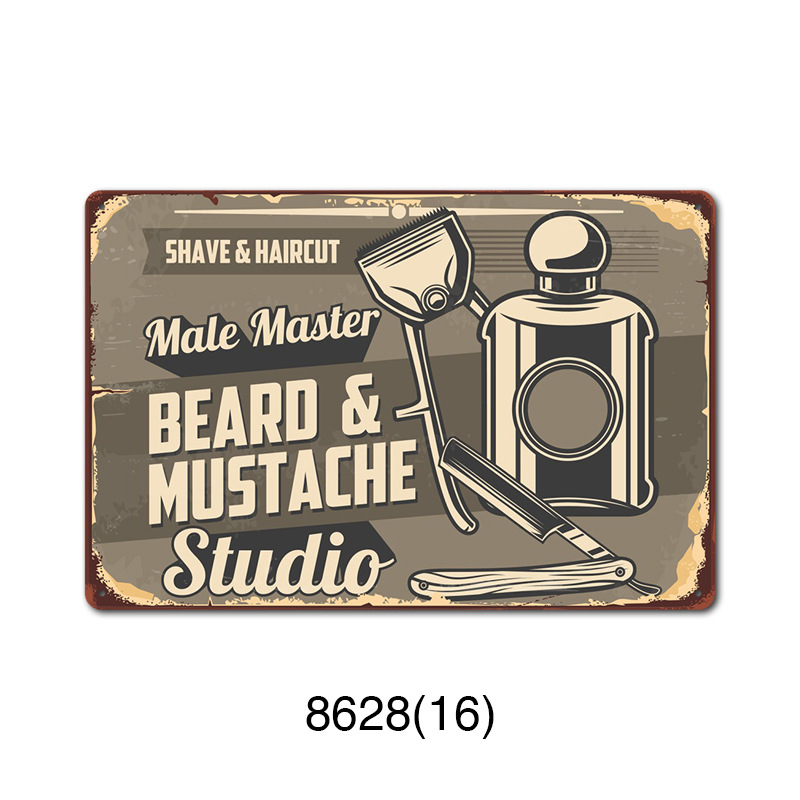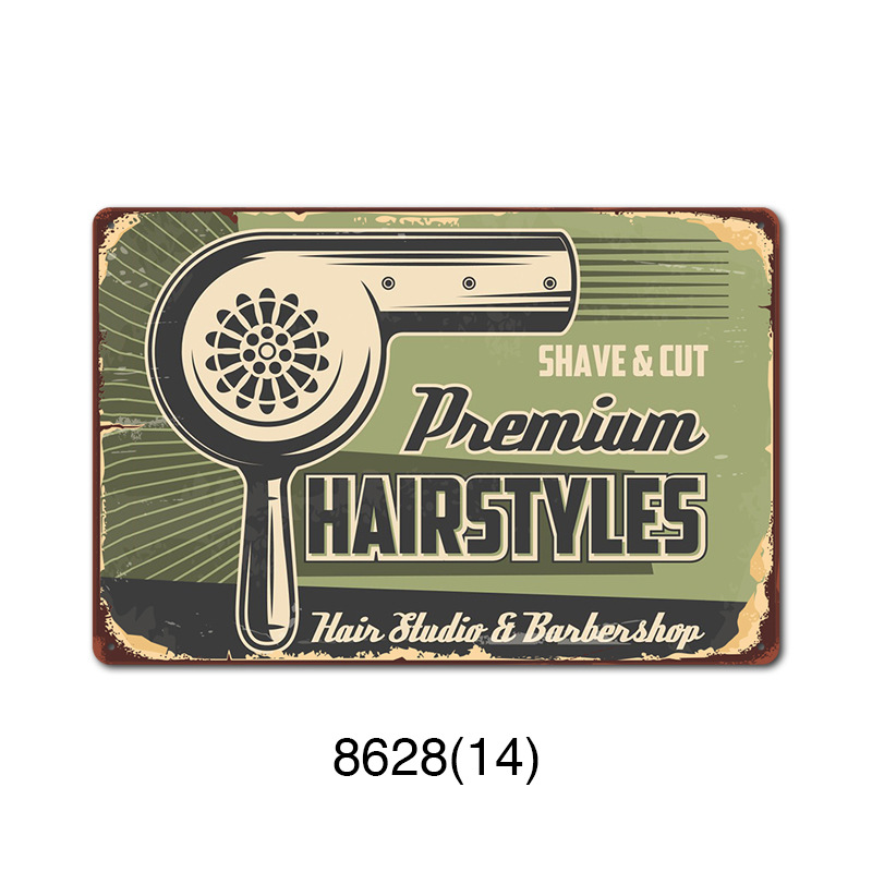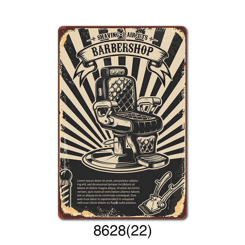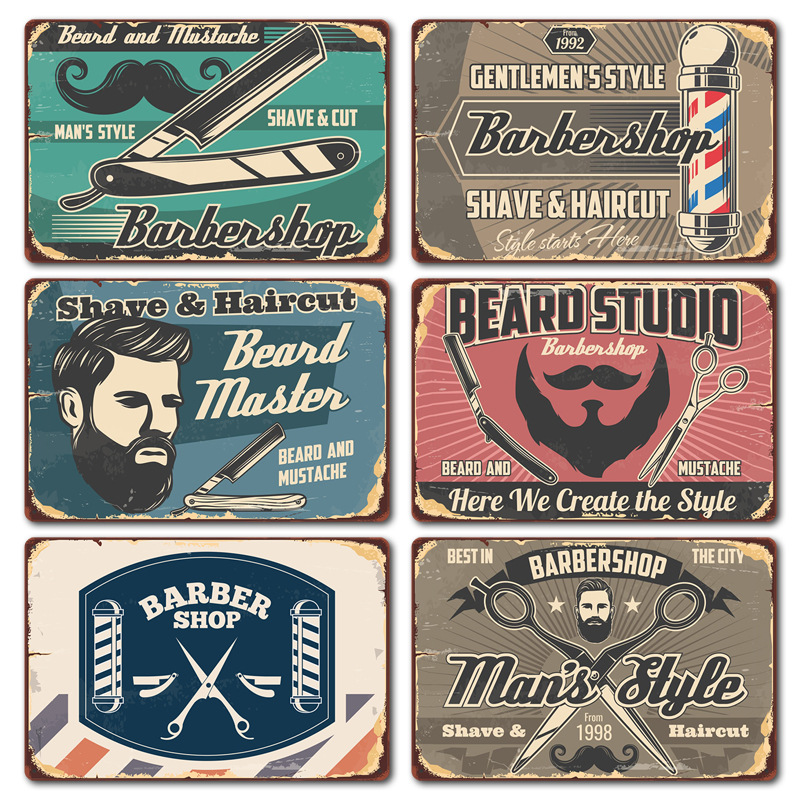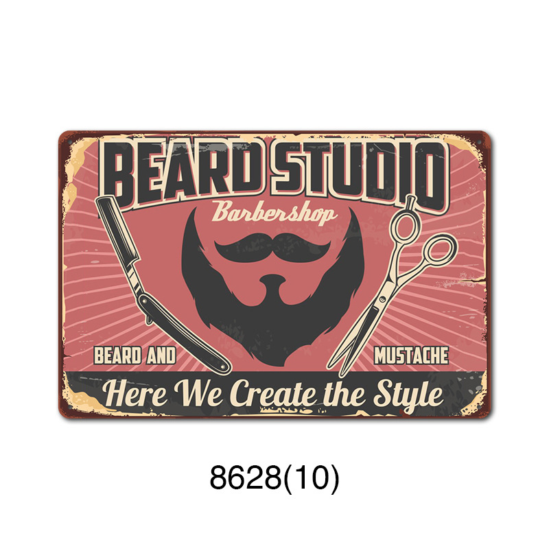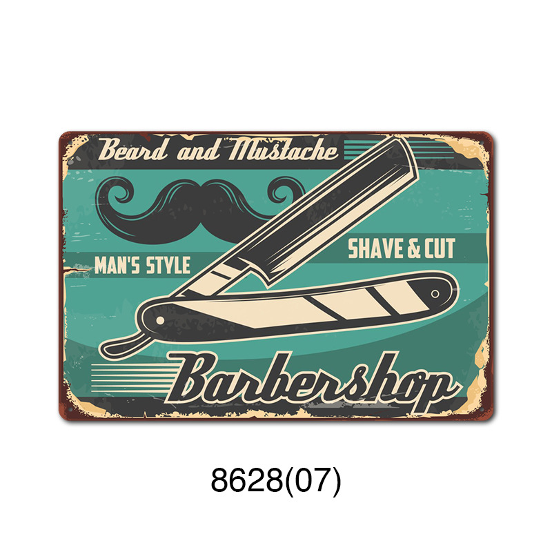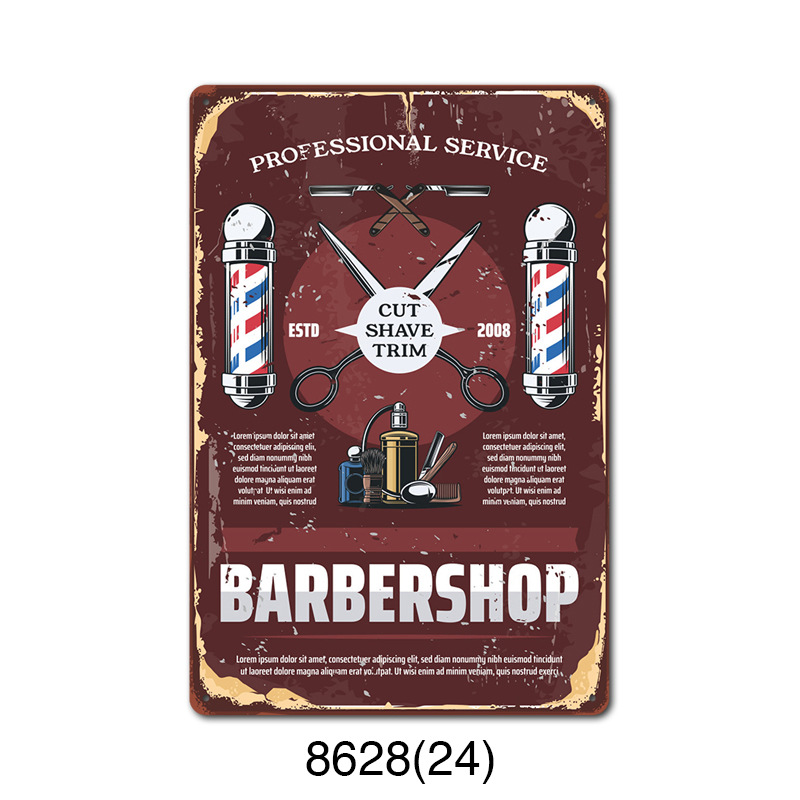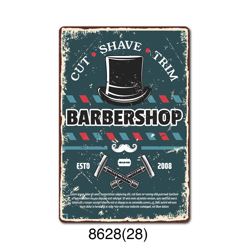 厂家直销 新款barbershop复古铁皮画 理发店背景墙壁无框装饰挂画