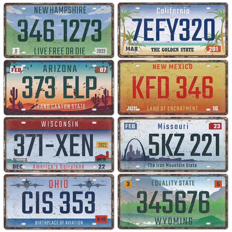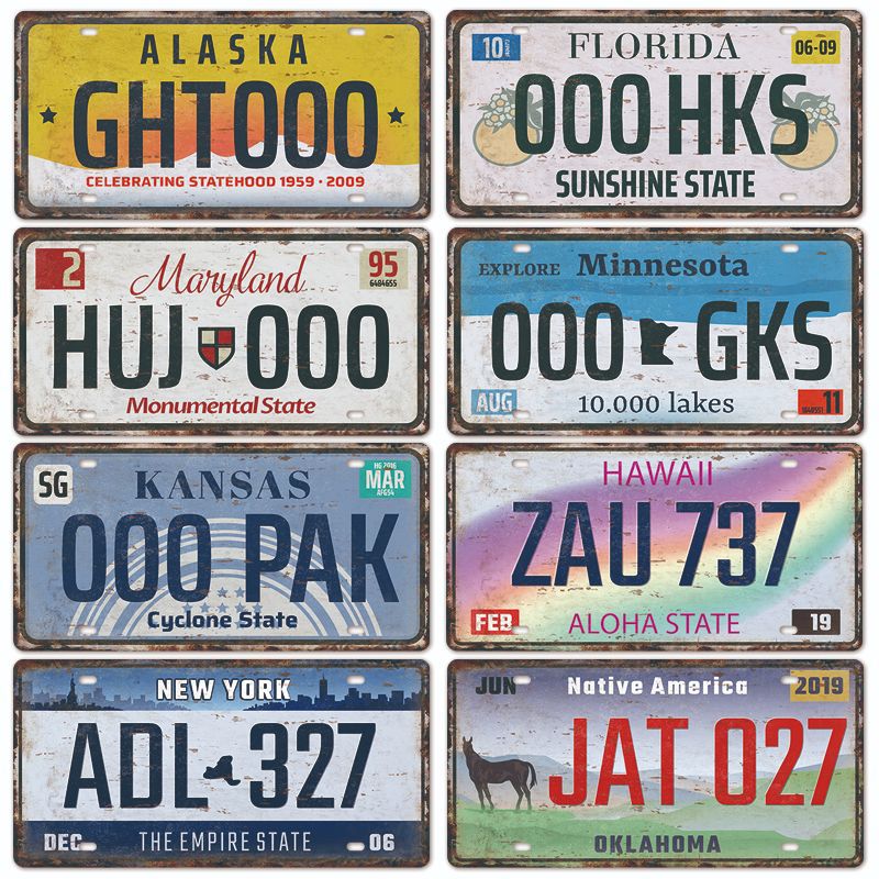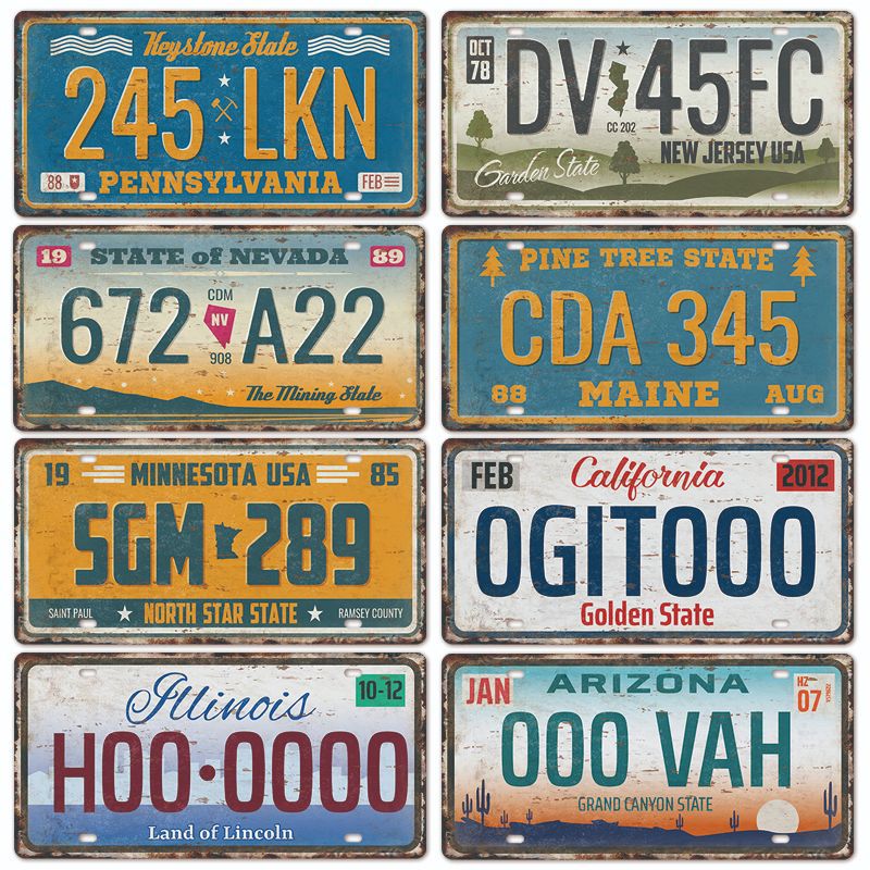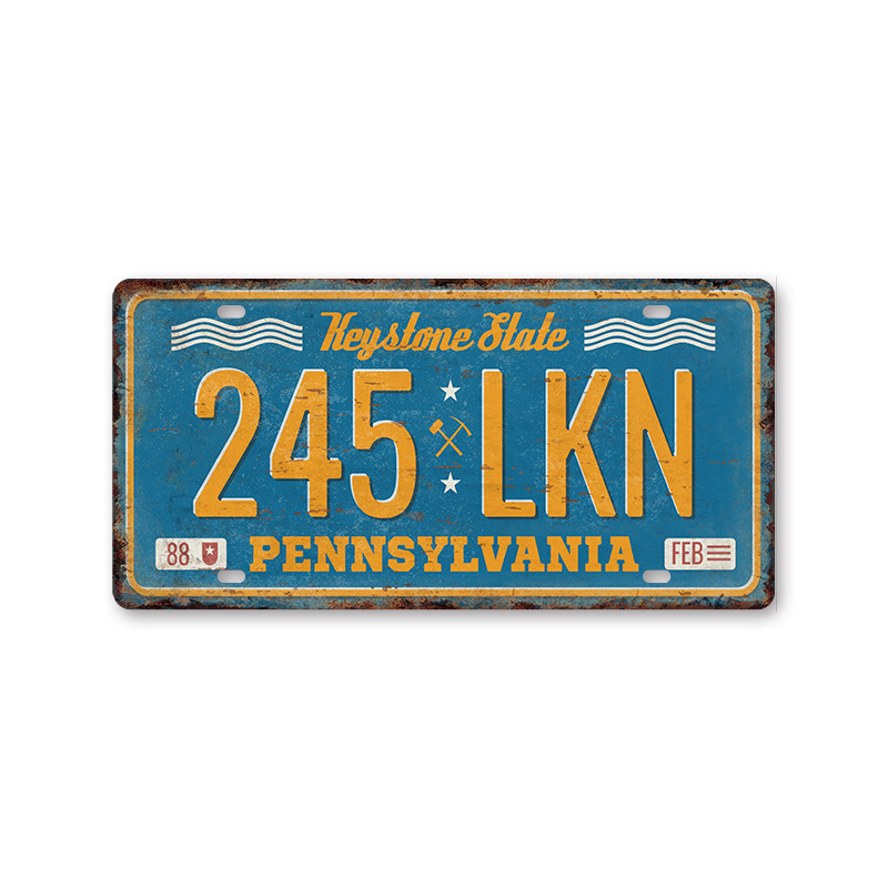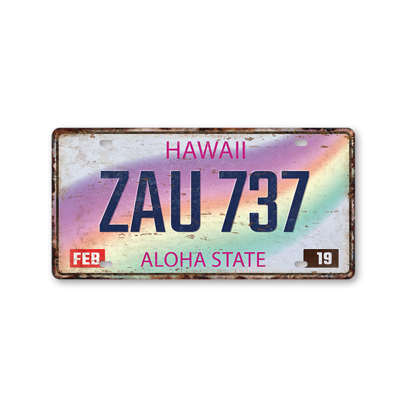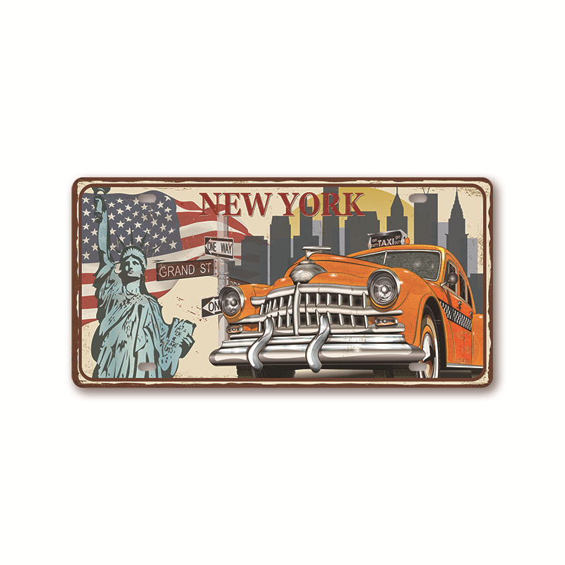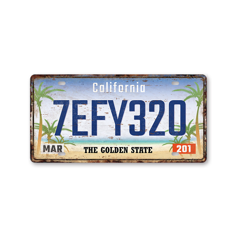 新款1530车牌license plate复古铁皮画 美式背景墙壁无框装饰挂画