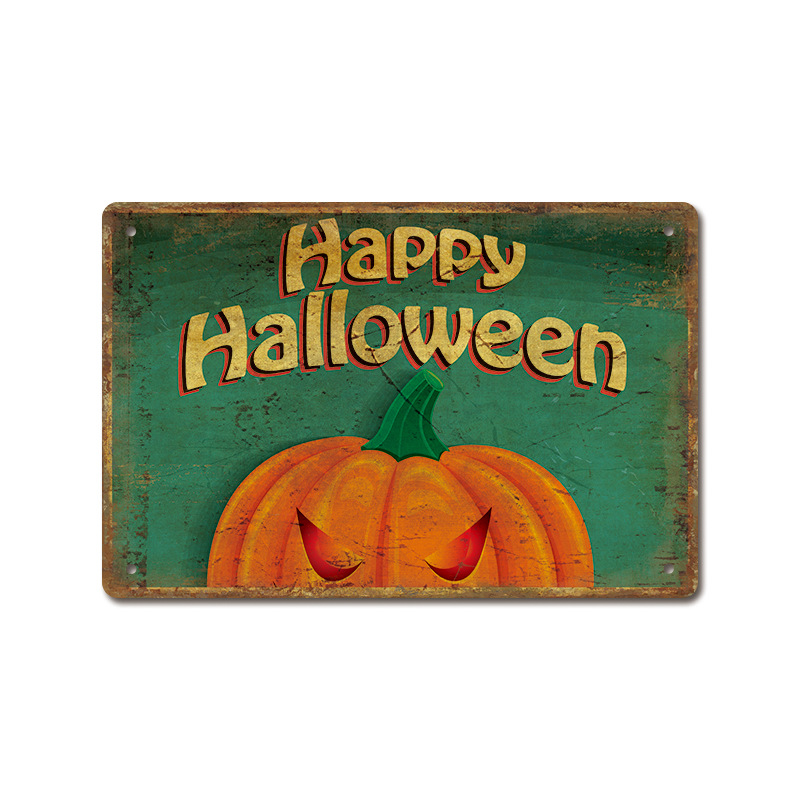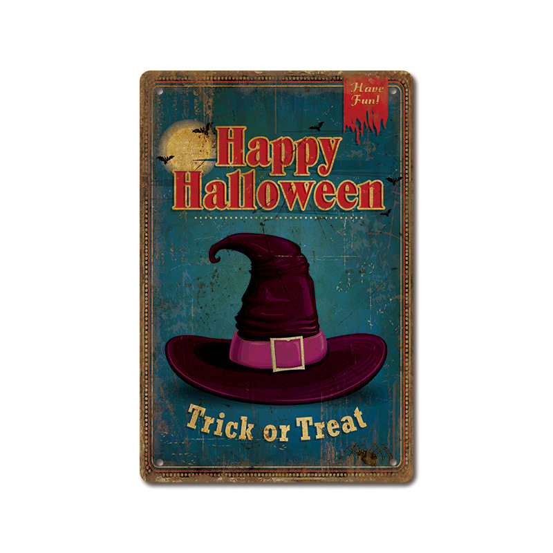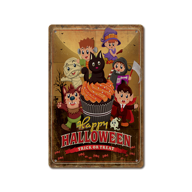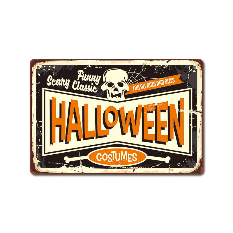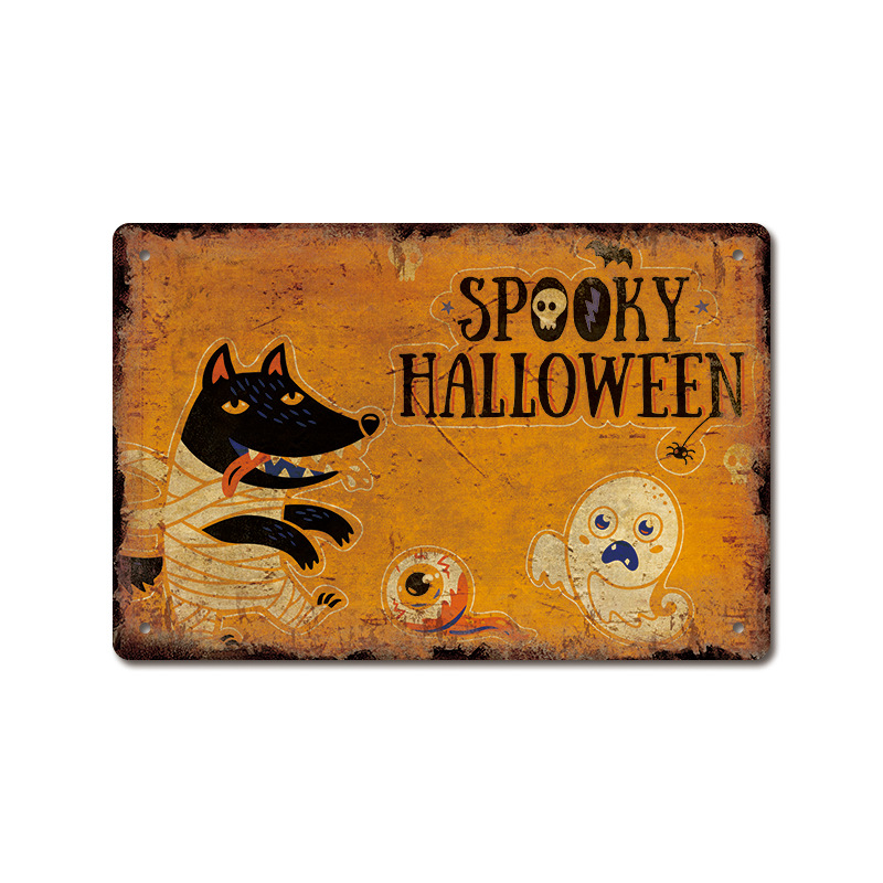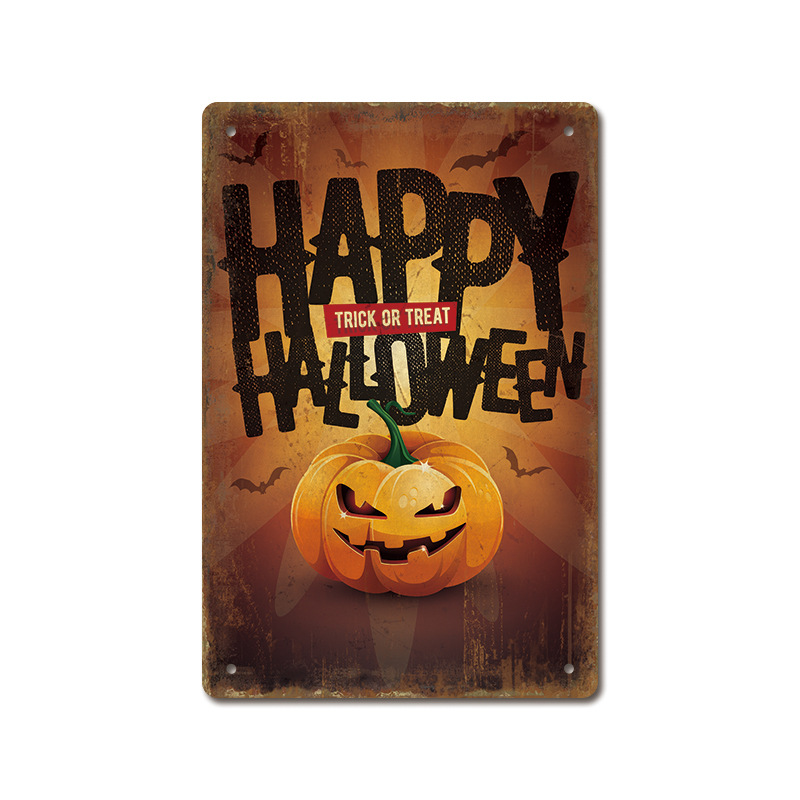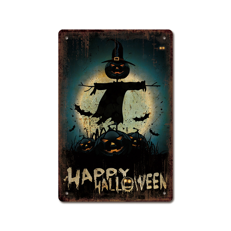2024新款万圣节复古美式家居铁皮画酒吧咖啡厅背景墙壁无框装饰画