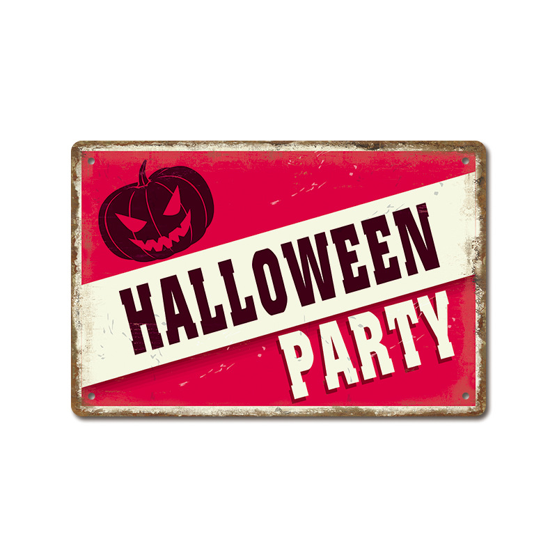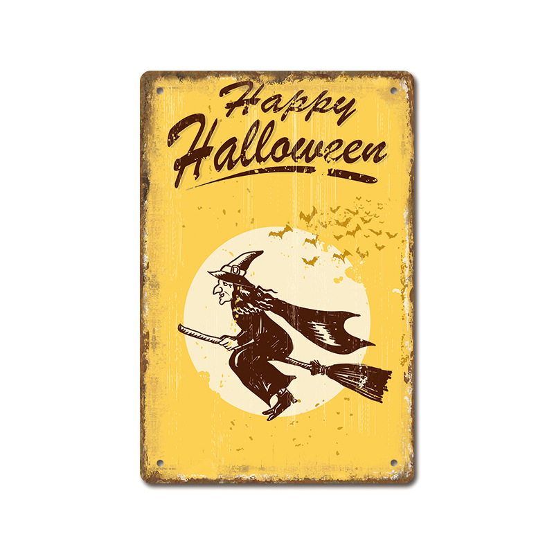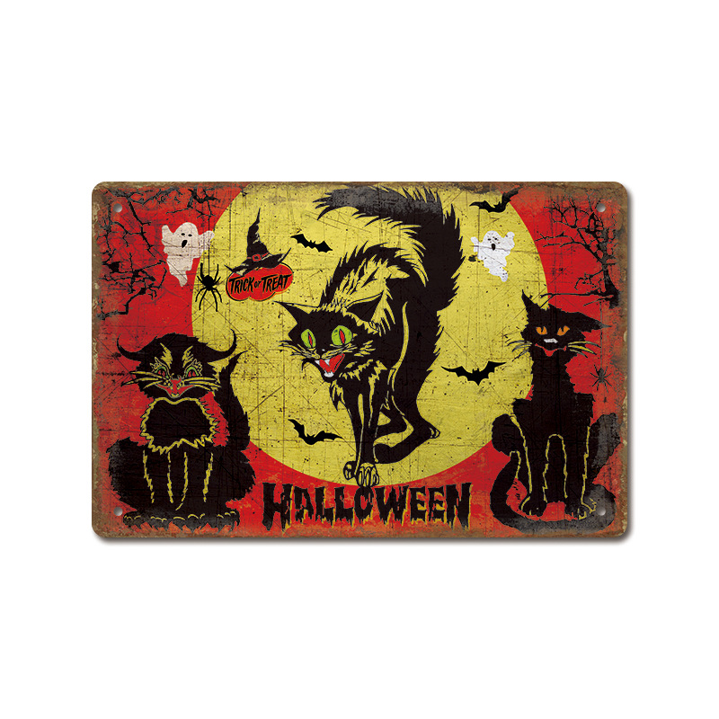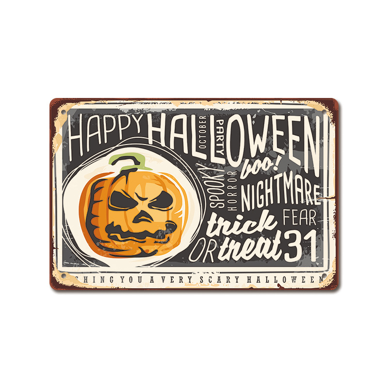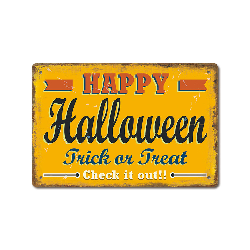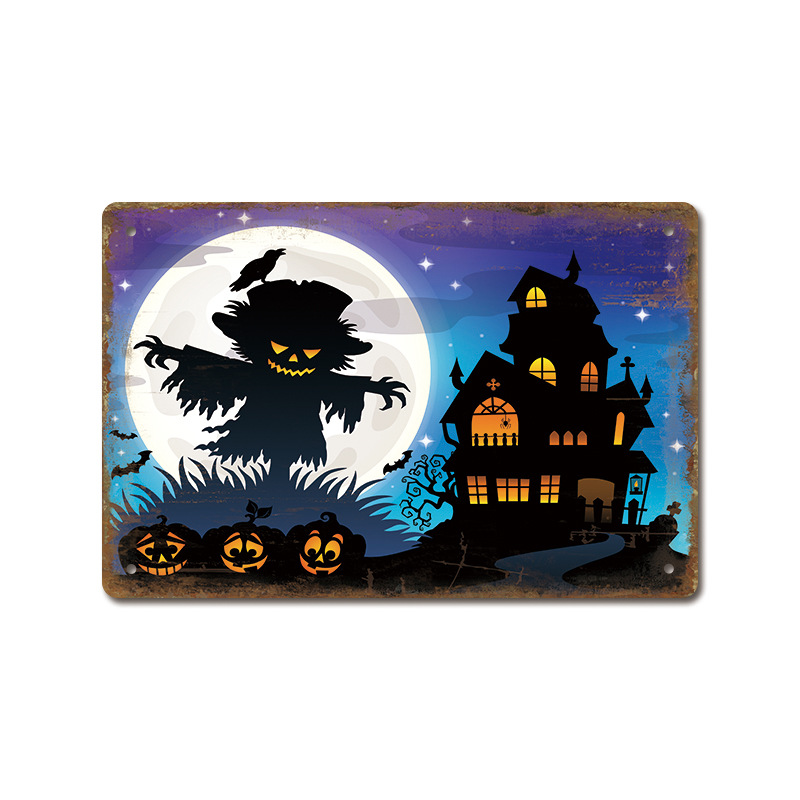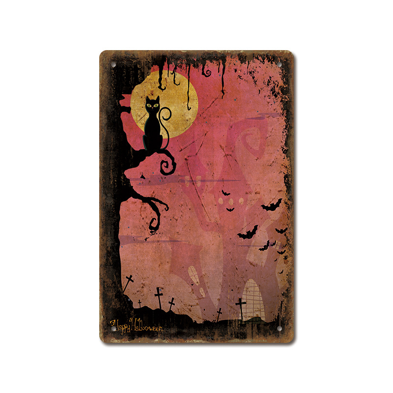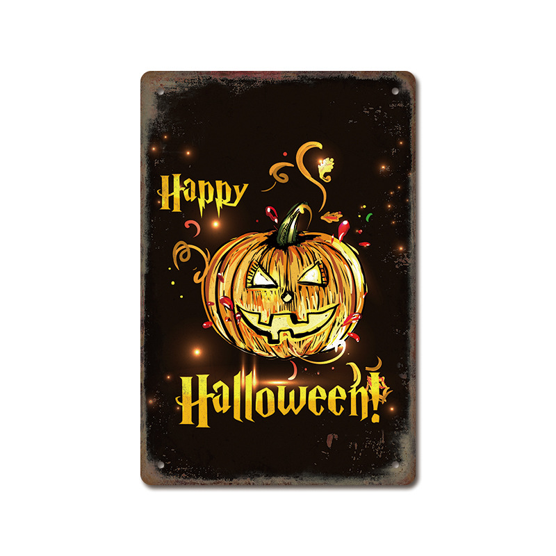 2024新款万圣节复古美式家居铁皮画酒吧咖啡厅背景墙壁无框装饰画