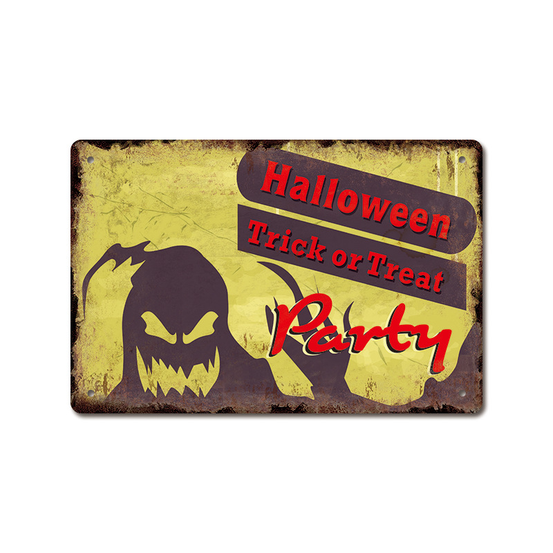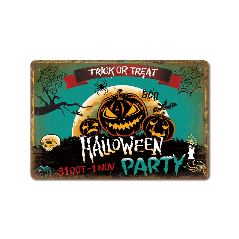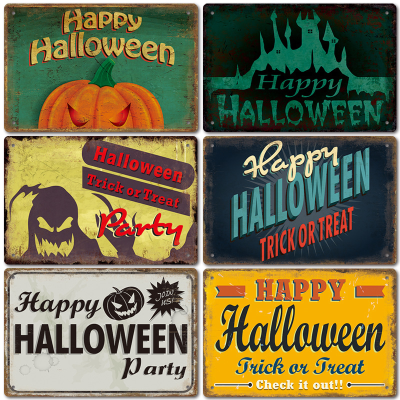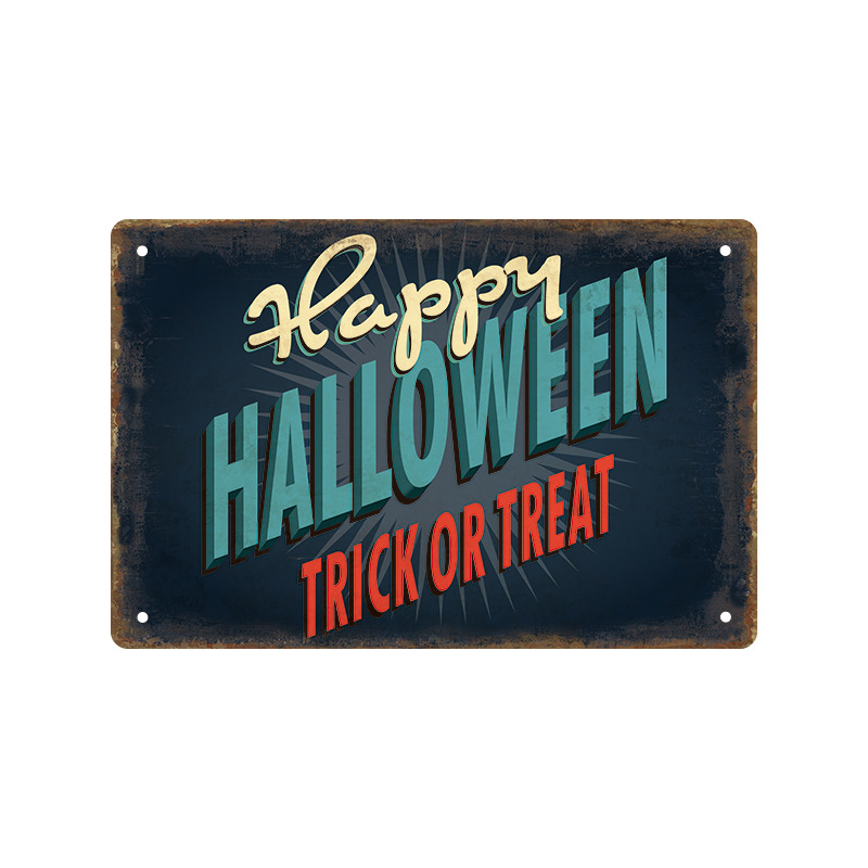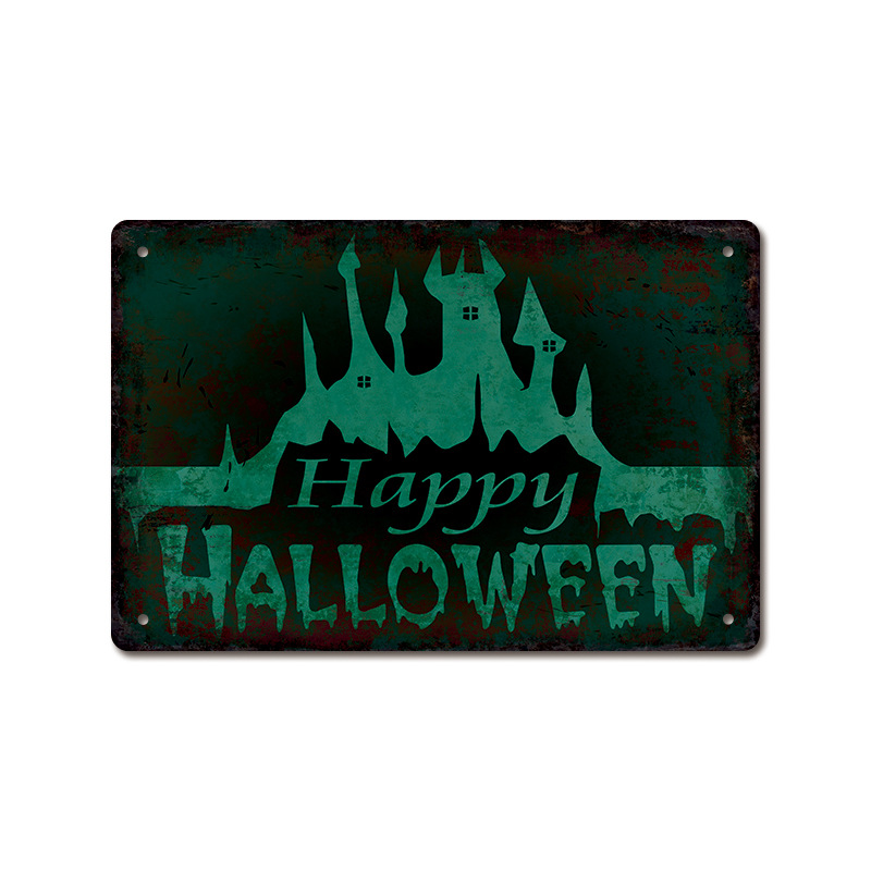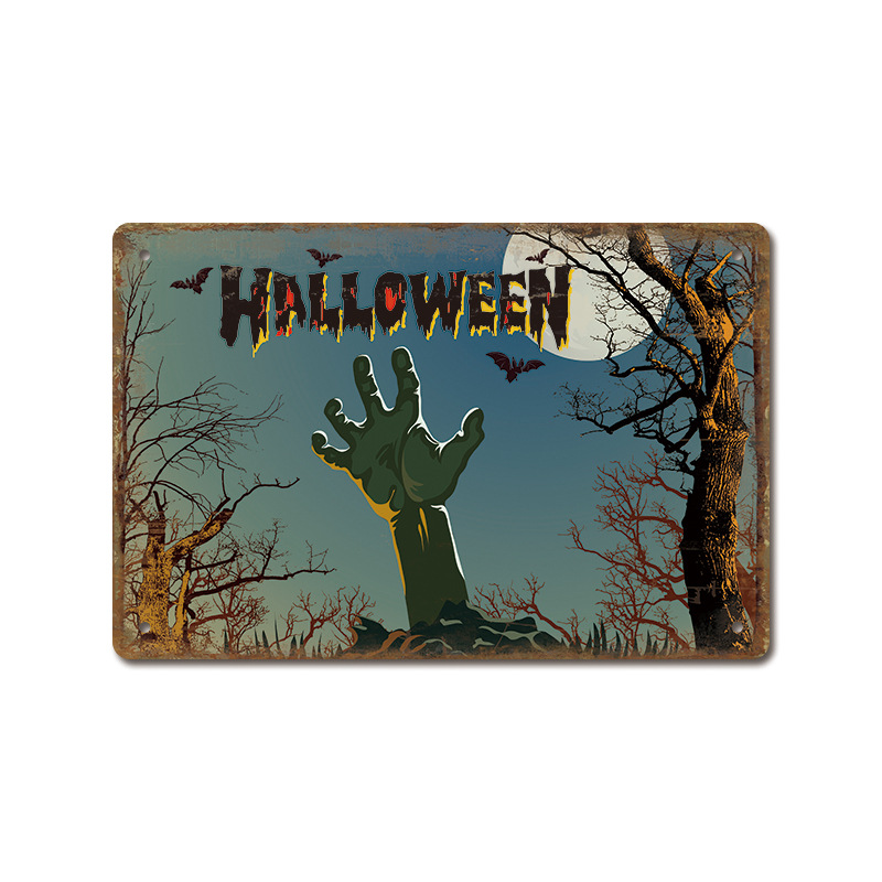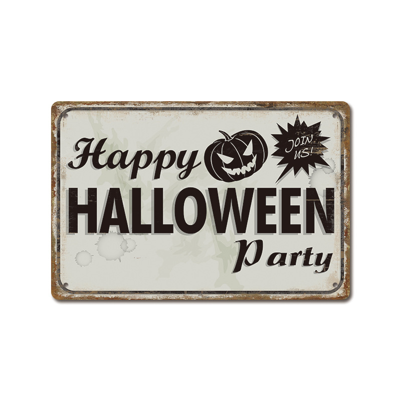 2024新款万圣节复古美式家居铁皮画酒吧咖啡厅背景墙壁无框装饰画