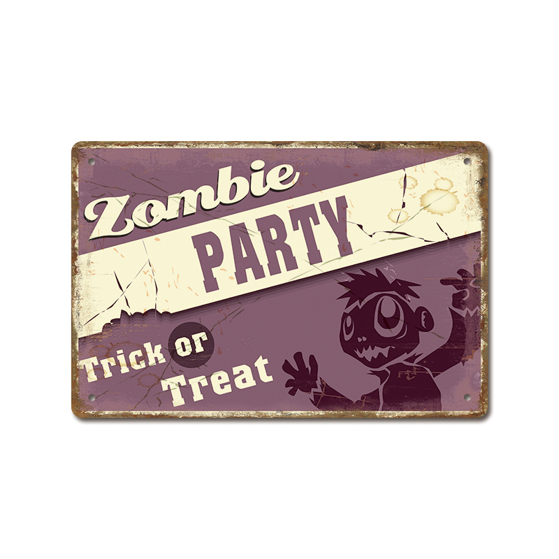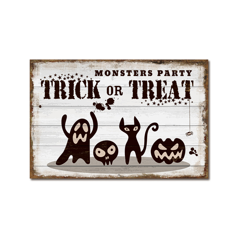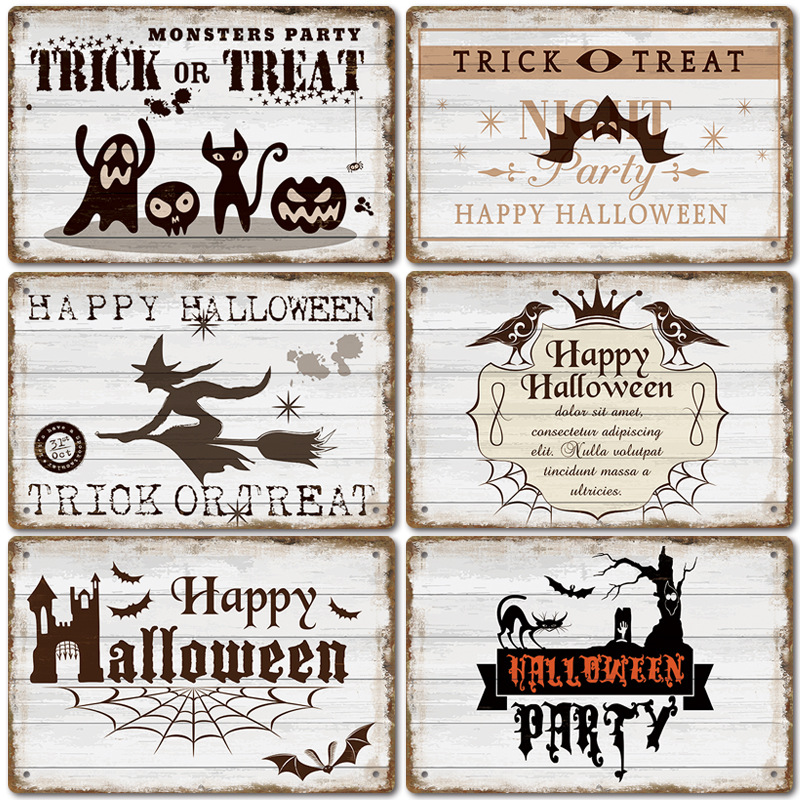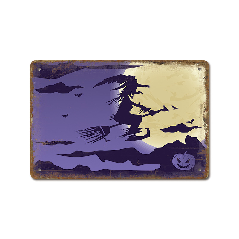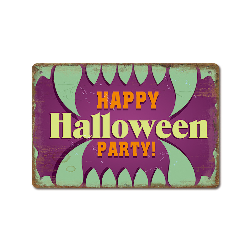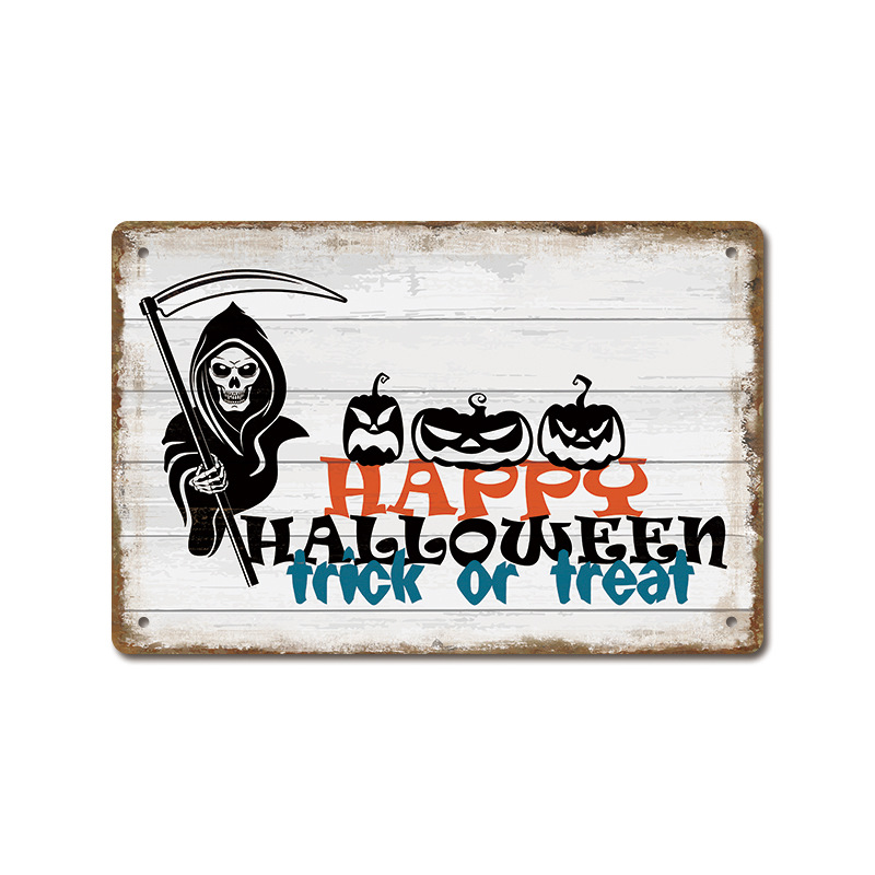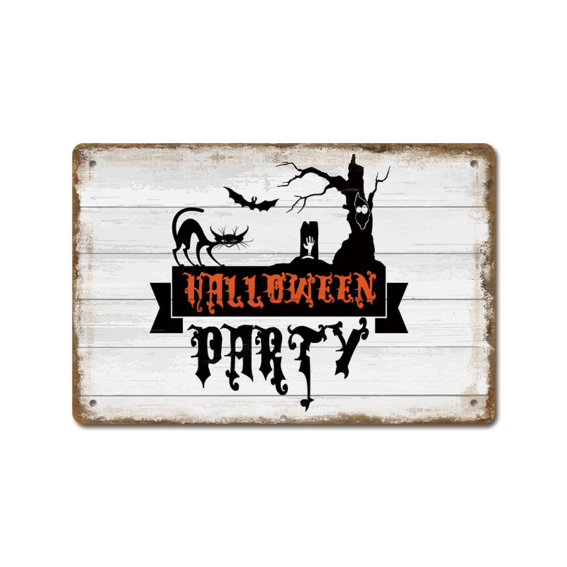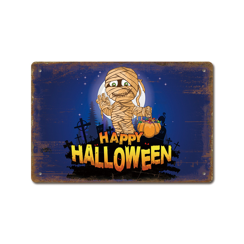 2024新款万圣节复古美式家居铁皮画酒吧咖啡厅背景墙壁无框装饰画