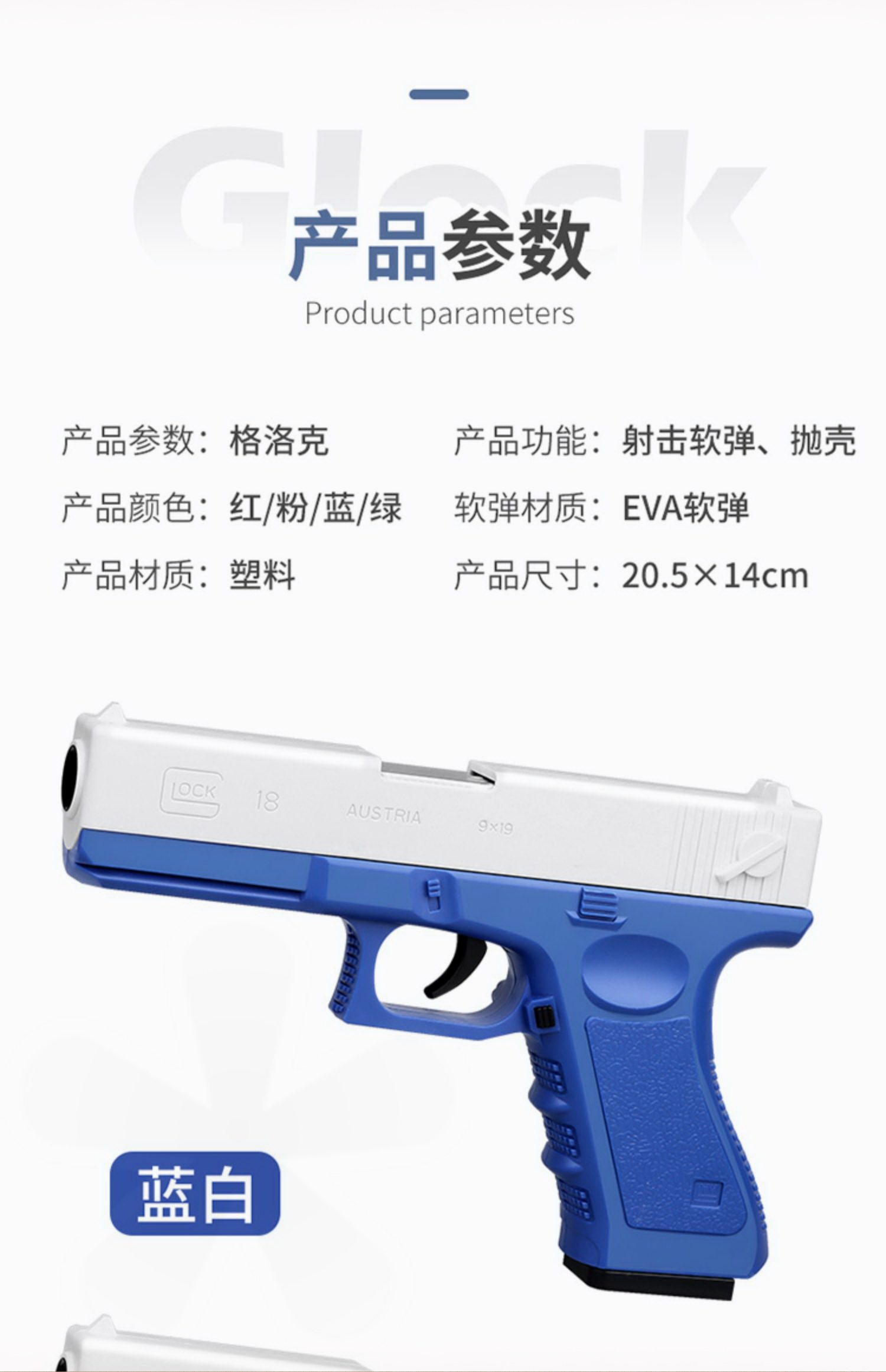 | 抛壳格洛克-蓝白 8弹壳+10软弹+1弹闸 | USD $0.0 | 99968 box available |
