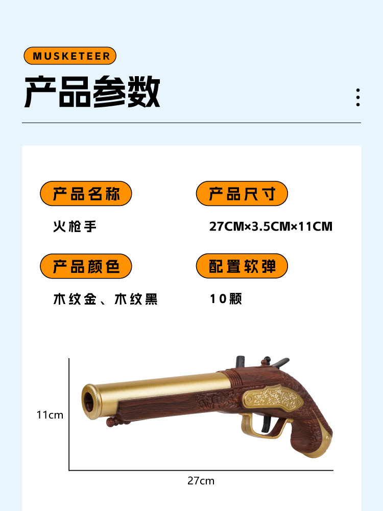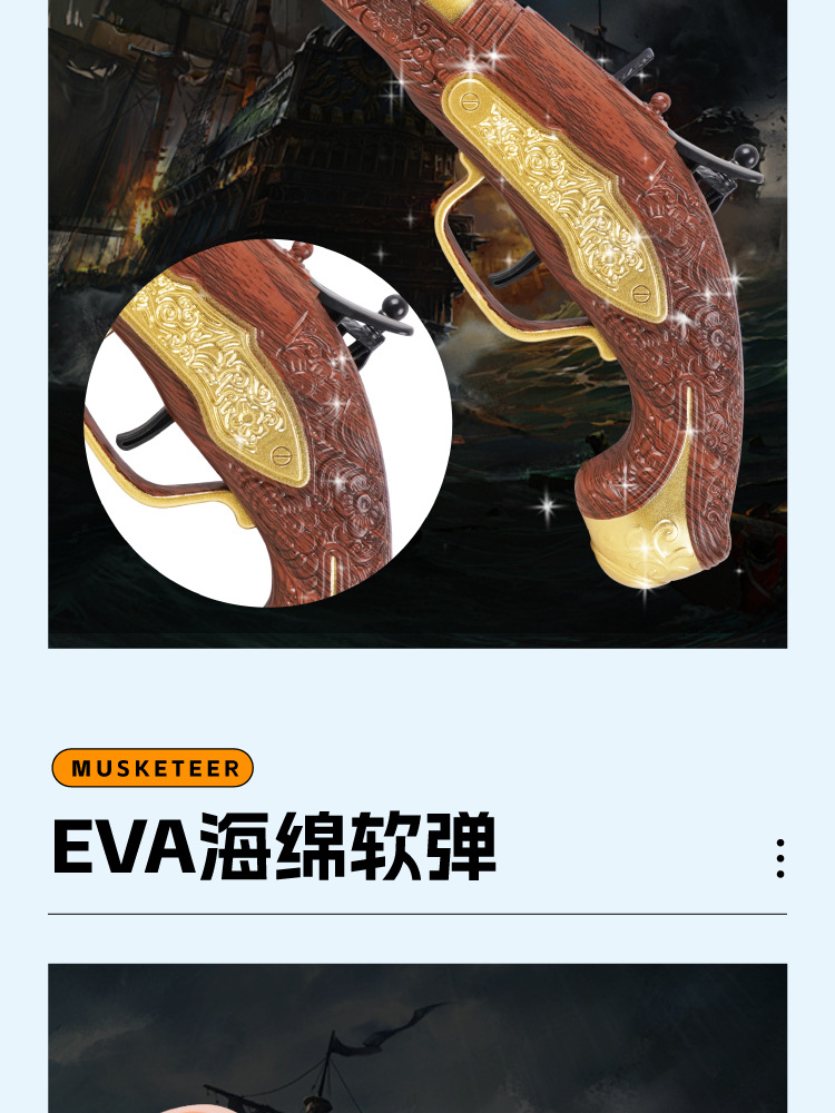 跨境热销海盗软弹枪仿真加勒比可发射吸盘软弹火铳儿童玩具小手枪
