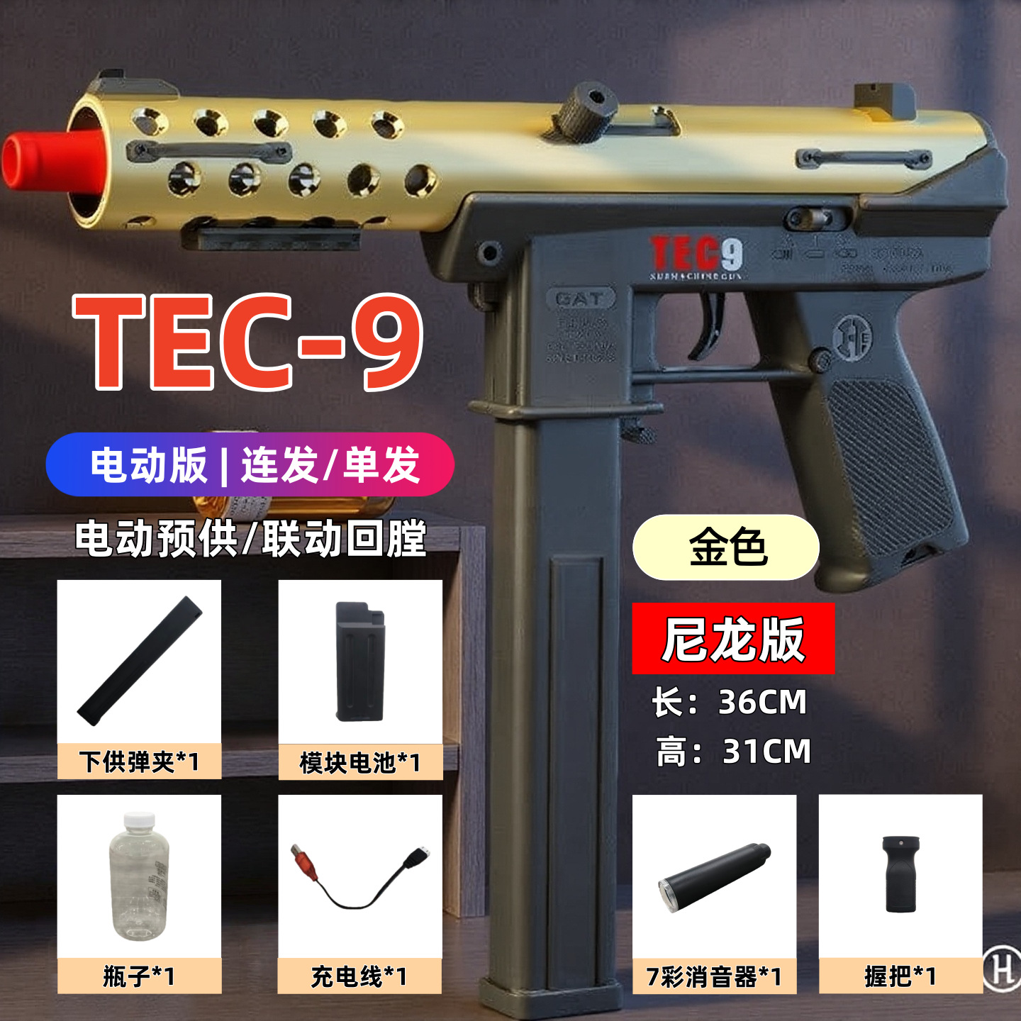 爆款现货正版高级玩具枪超高速连发尼龙TEC9电动男孩儿童玩具枪