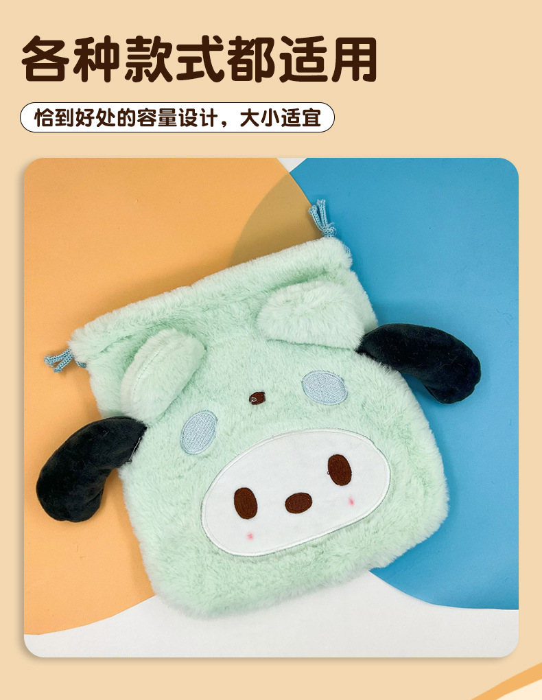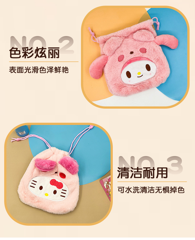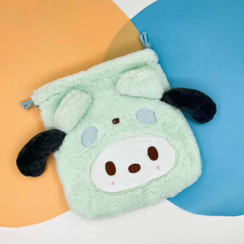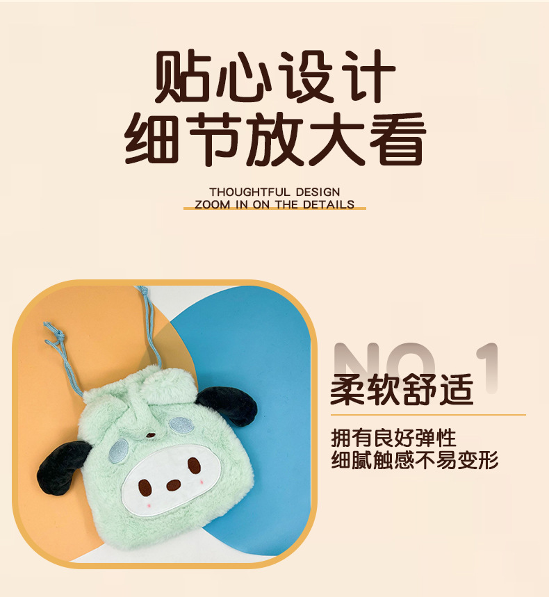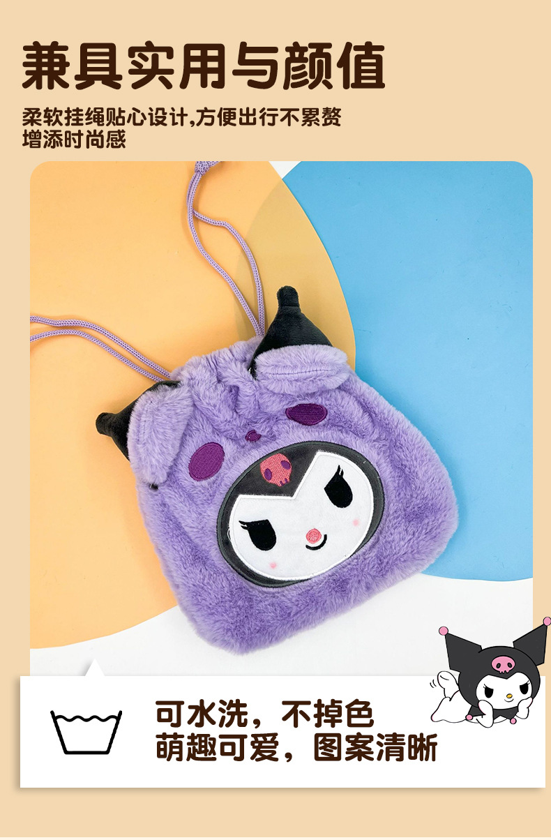 日系毛绒可爱零钱包束口袋便携卫生巾收纳包Jk配饰简约小号斜挎包